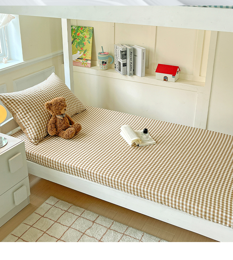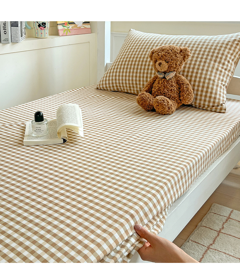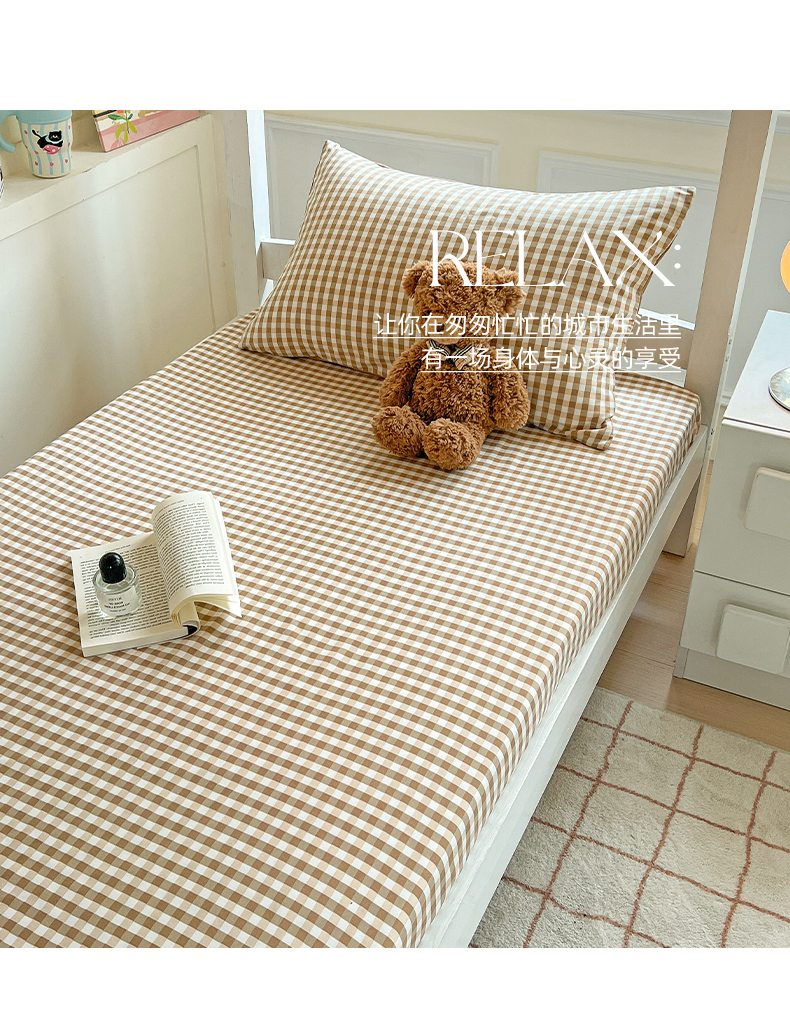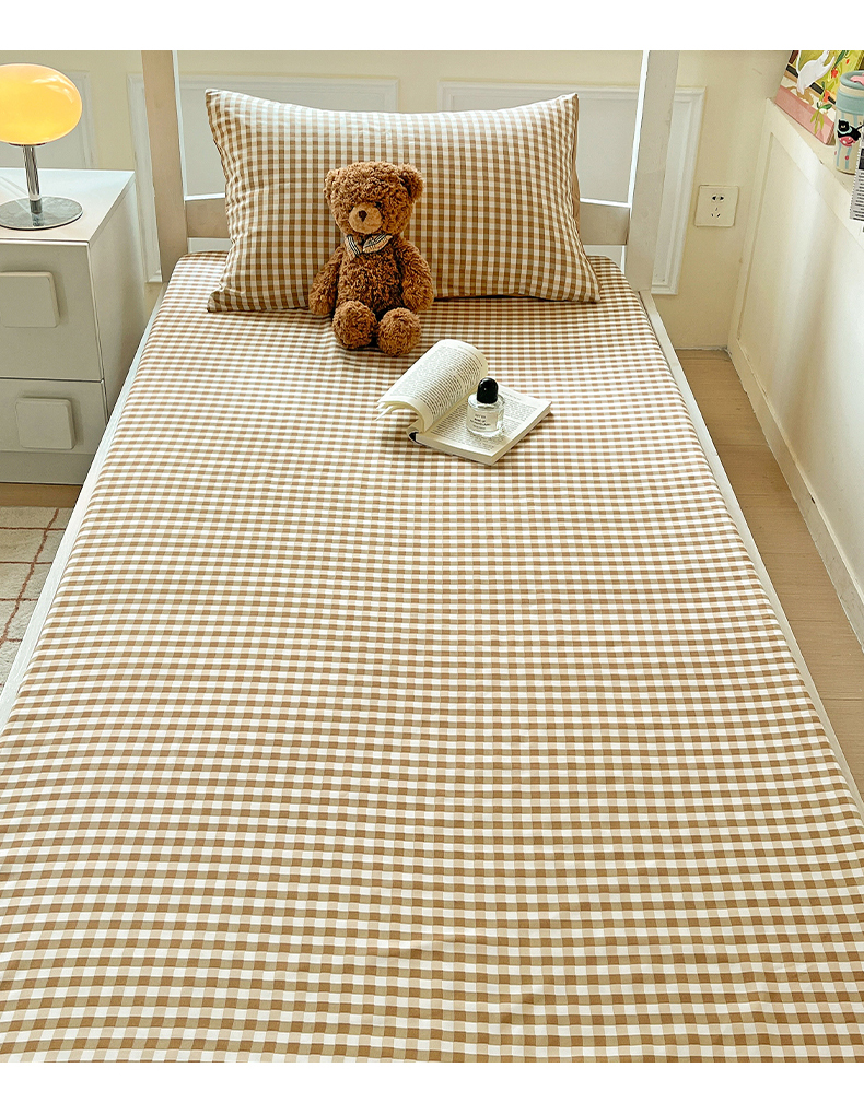妖妖家纺 2025新款软糯格子学生床笠 栗子布丁