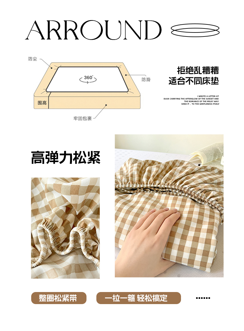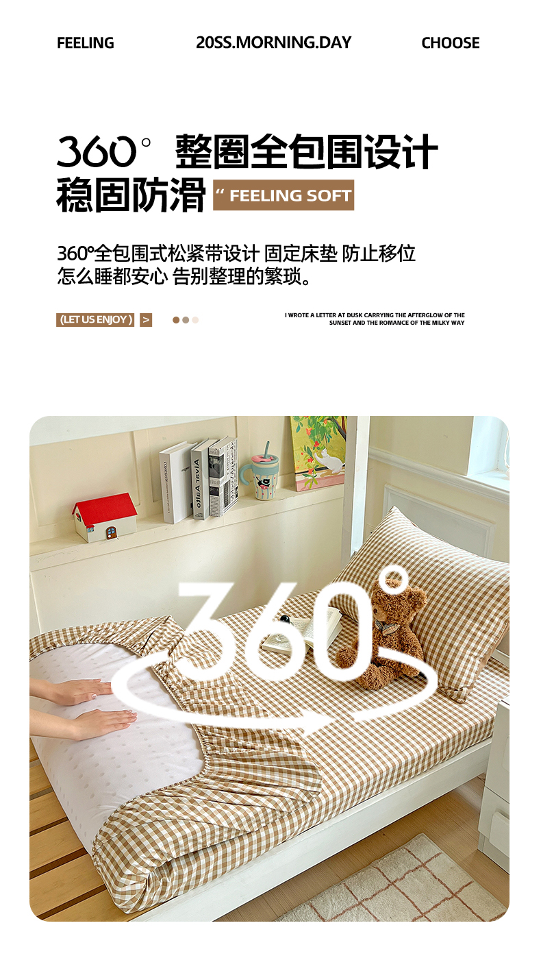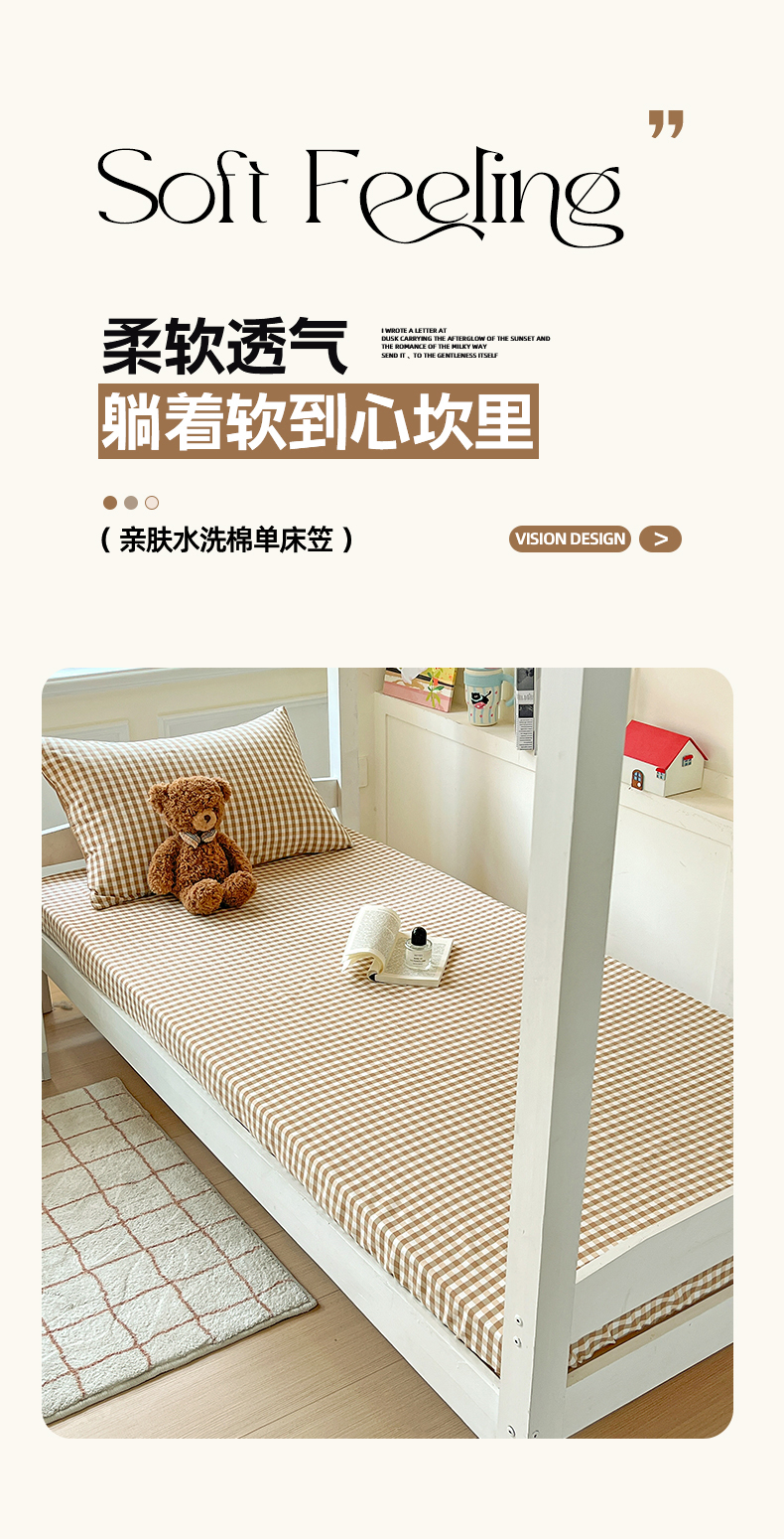 妖妖家纺 2025新款软糯格子学生床笠 栗子布丁