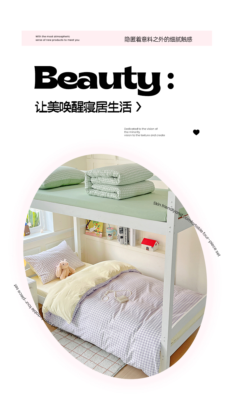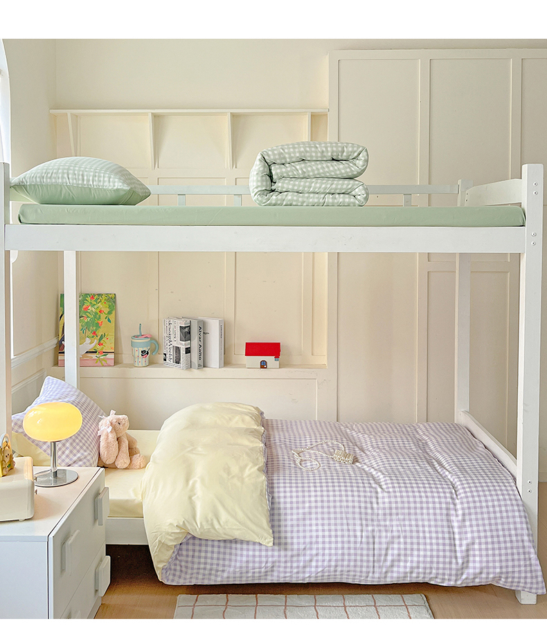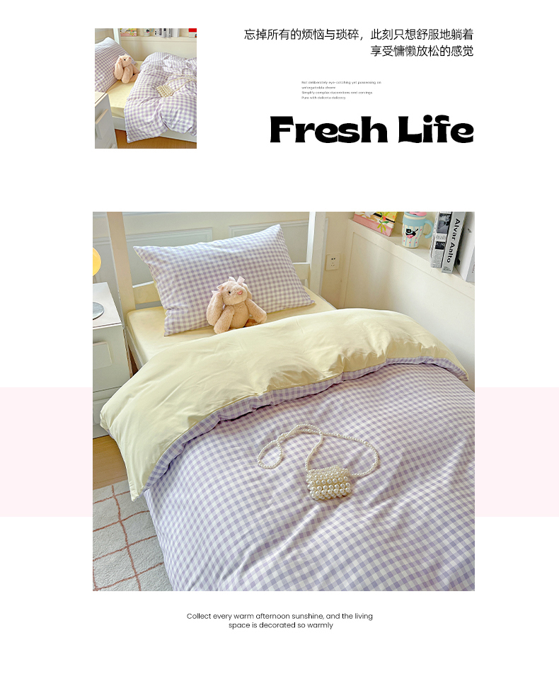 商品名称:妖妖家纺 2025新款软糯水洗棉格子学生三件套 奶黄芋泥