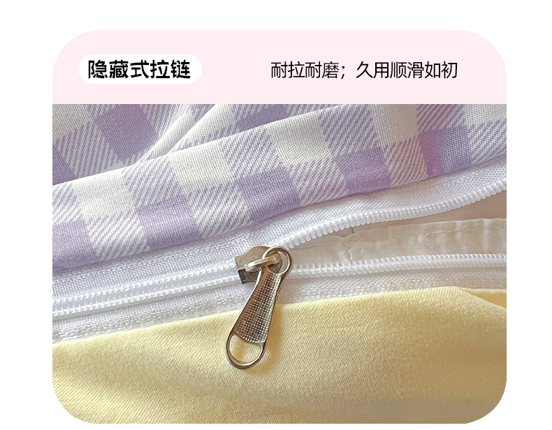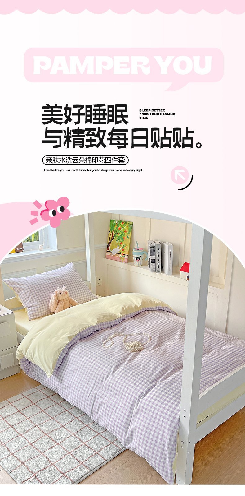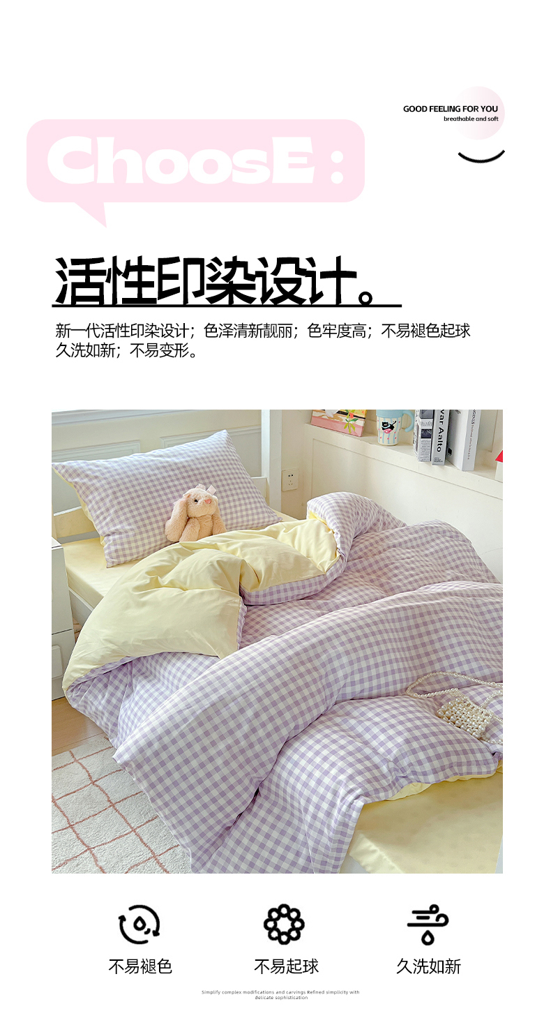 妖妖家纺 2025新款软糯水洗棉格子学生三件套 奶黄芋泥