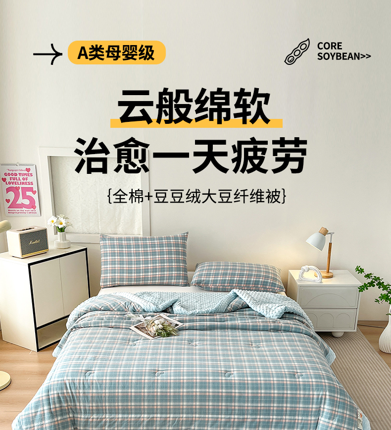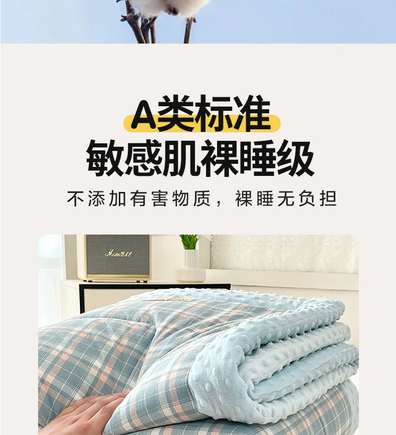 • 91家纺网 家纺一手货源 找家纺 鸣升家纺 2025新款全棉豆豆被被子被芯 南国兰