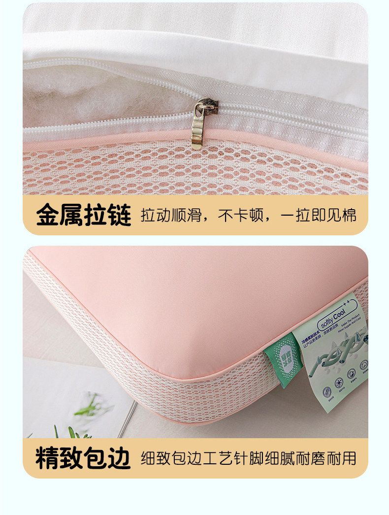冰丝乳胶护颈枕-浅粉48*74cm中枕一对