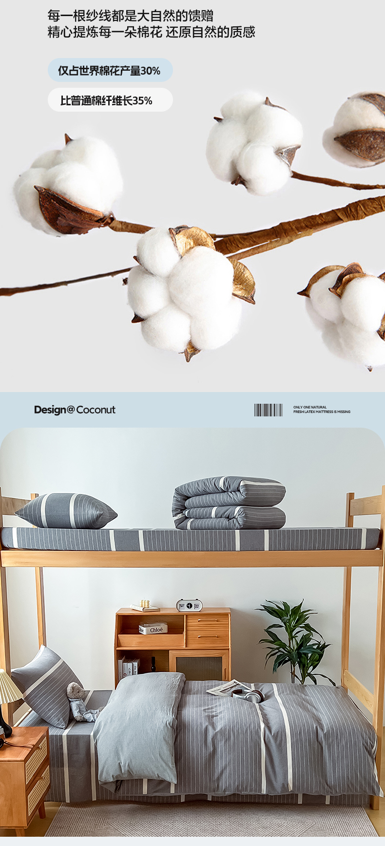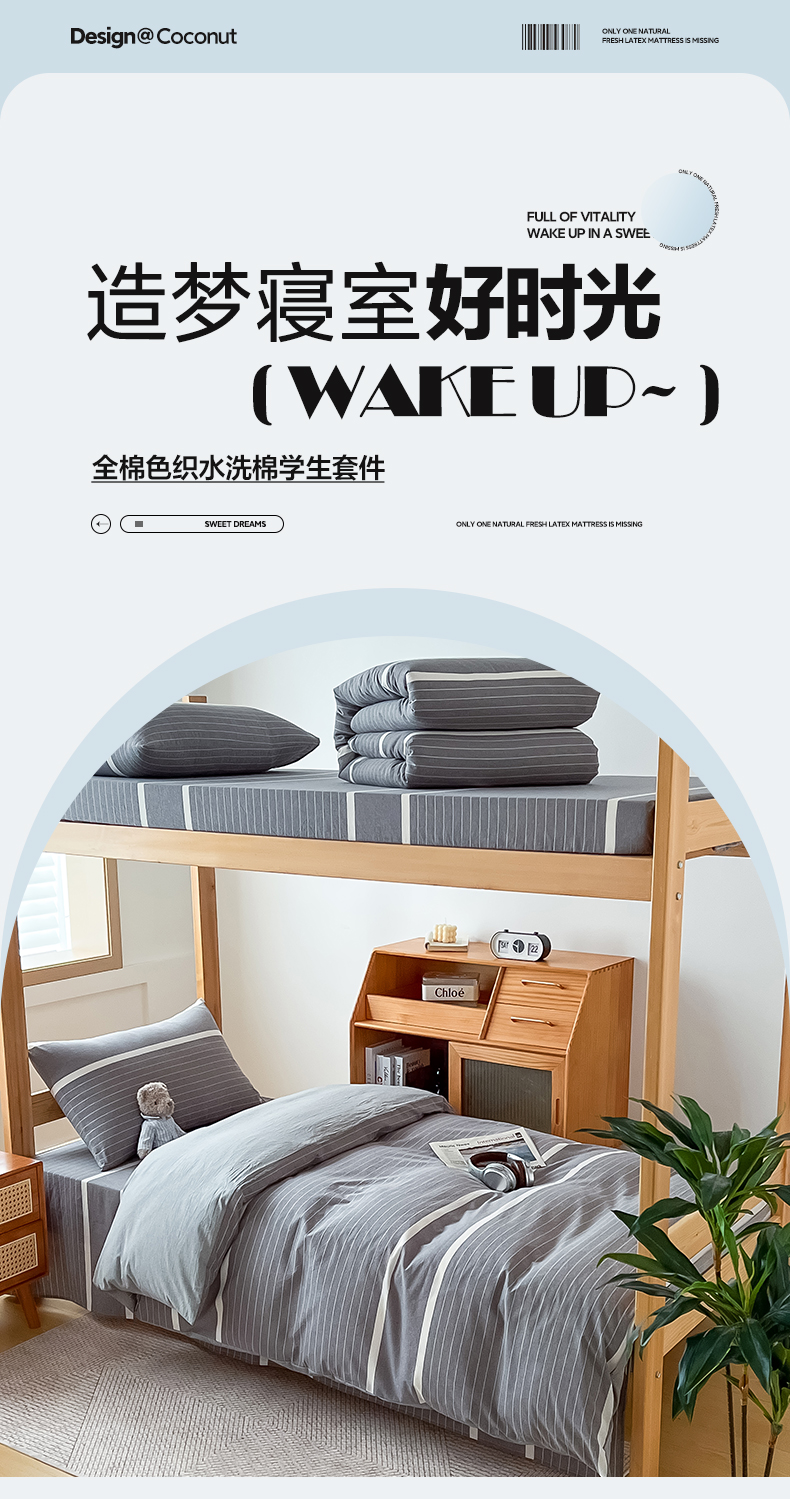 九沐良品 2025新款全棉纯棉色织水洗棉学生三件套宿舍三件套上下铺三件套 灰条