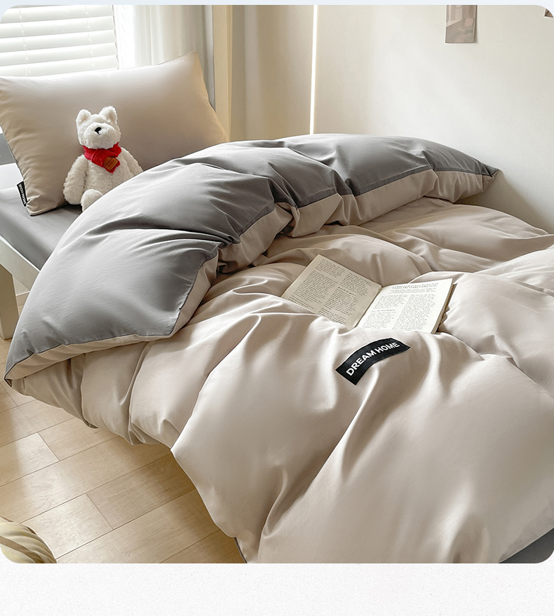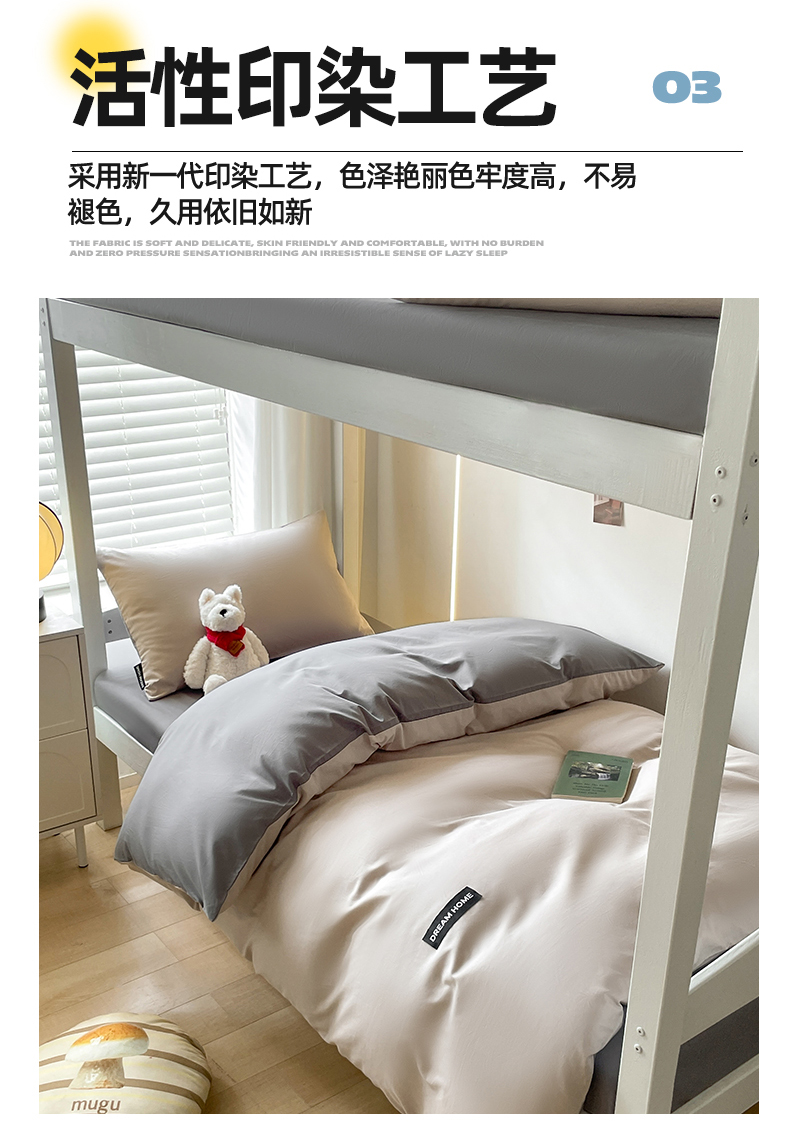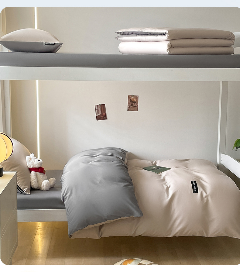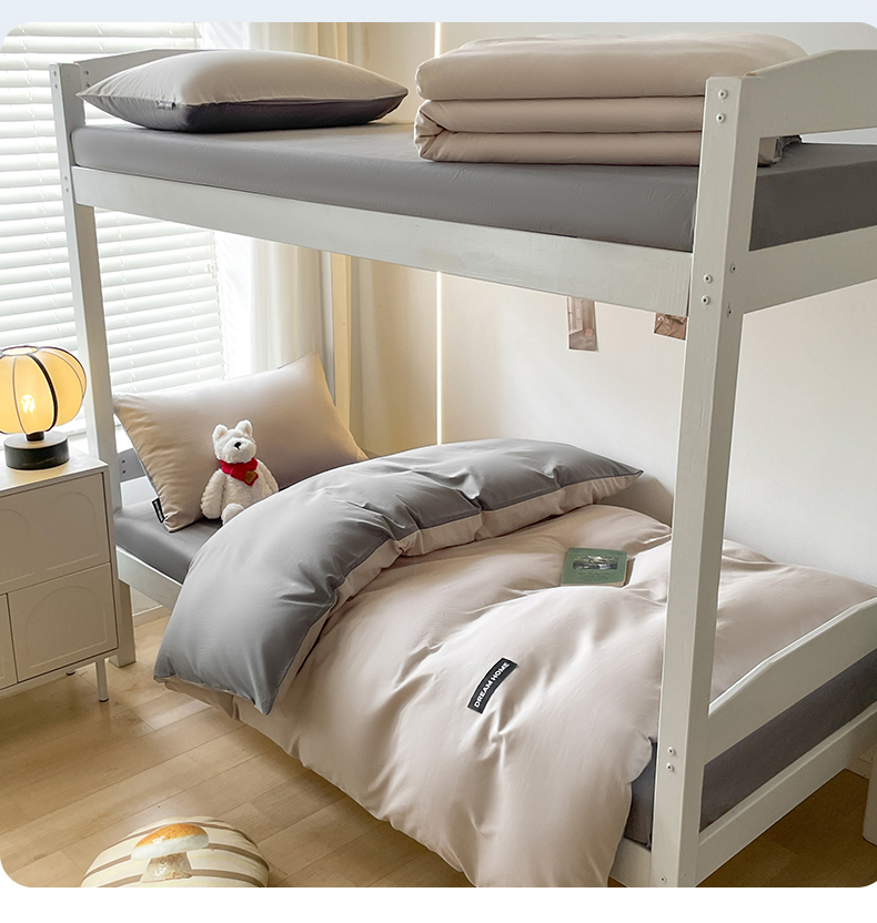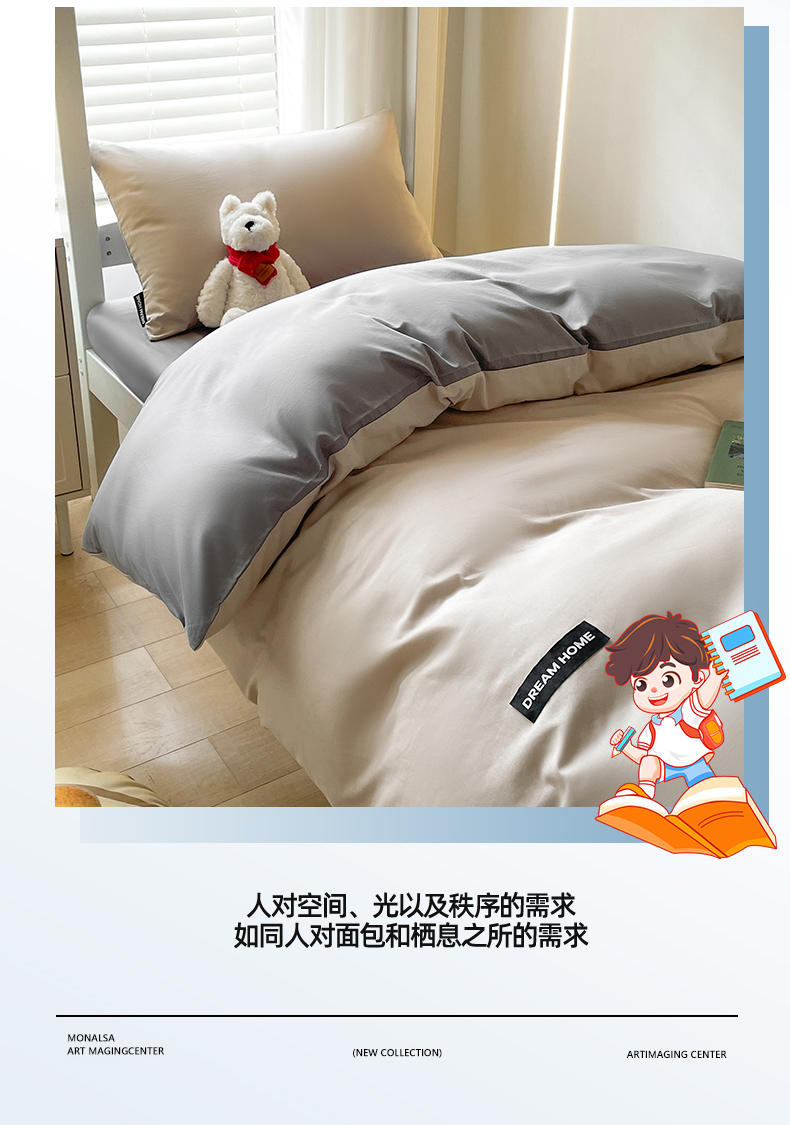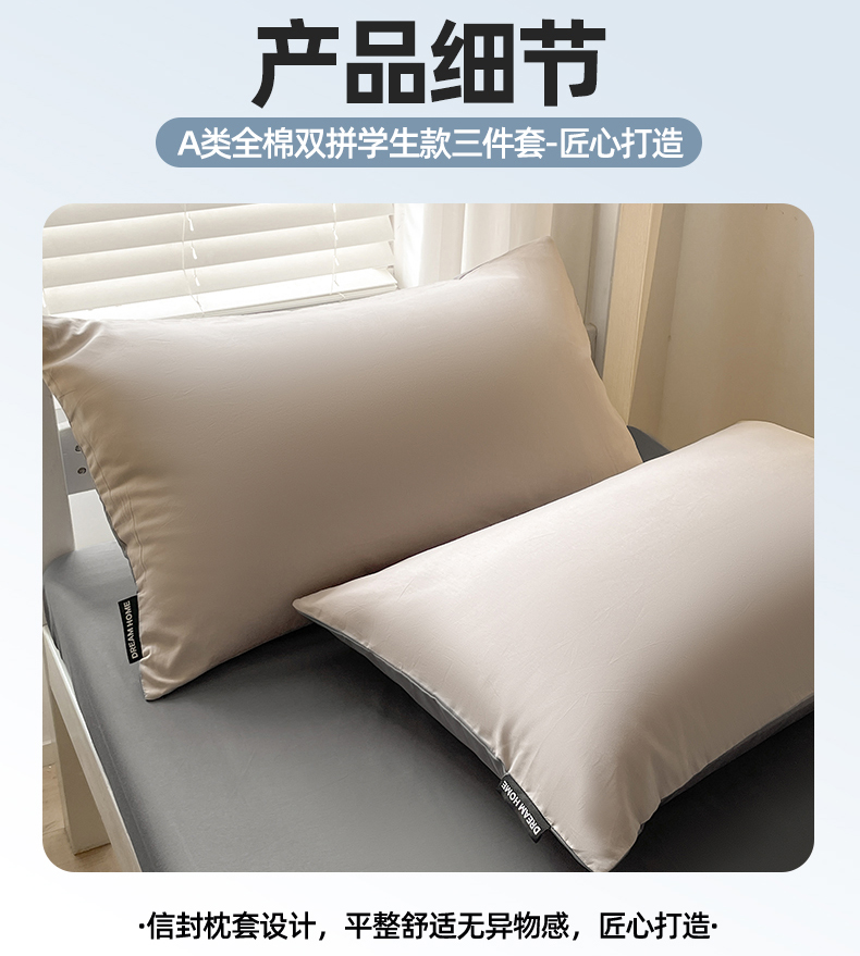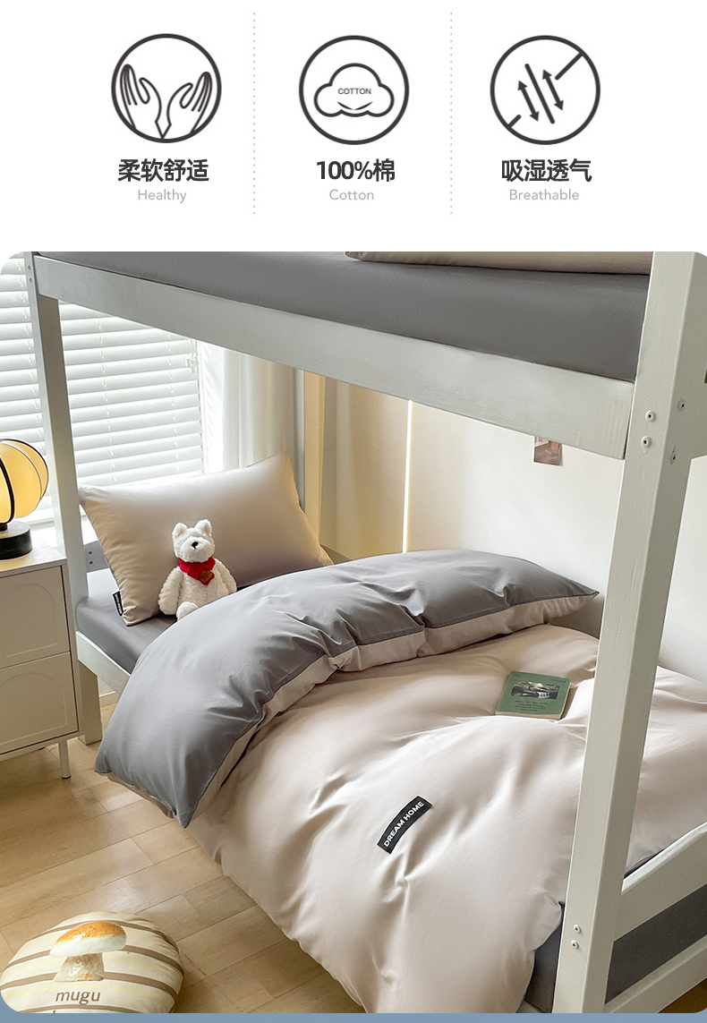 笙意家纺 2025新款全棉纯棉简约黑标学生三件套 黑标款-山灰+中灰