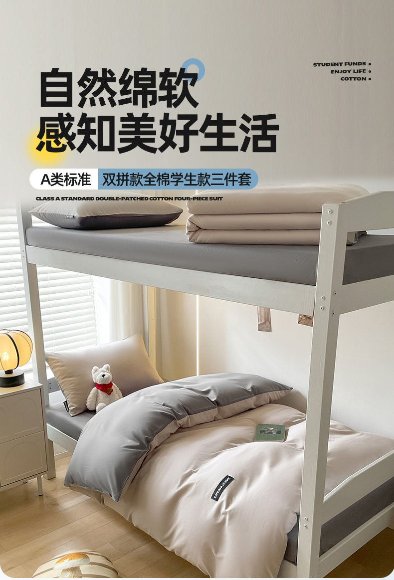 商品名称:笙意家纺 2025新款全棉纯棉简约黑标学生三件套 黑标款-山灰+中灰