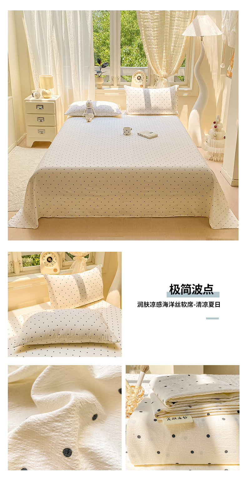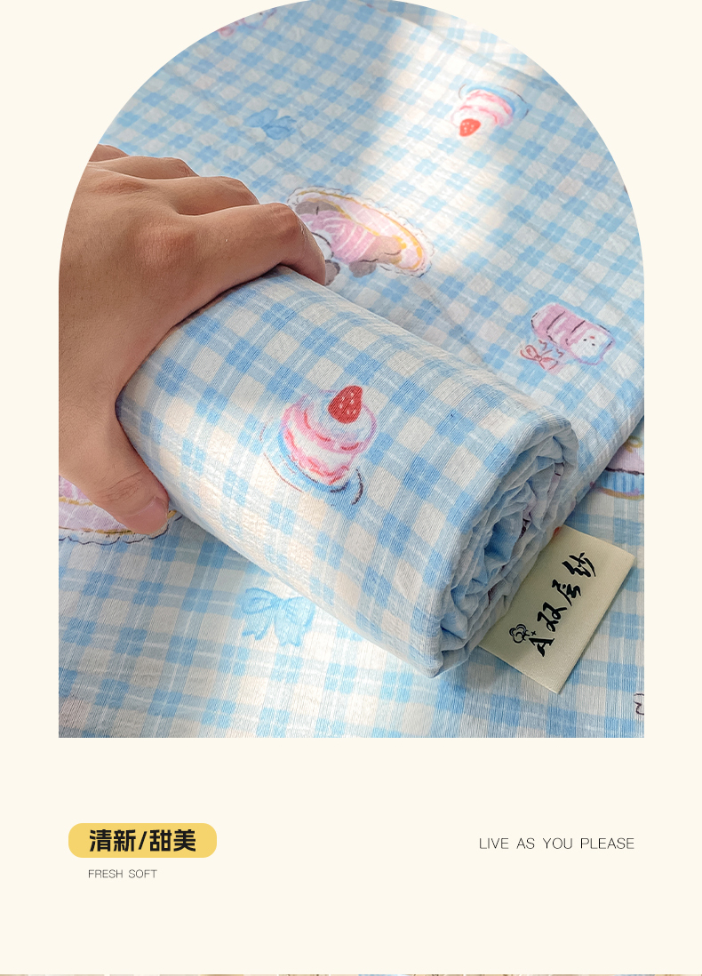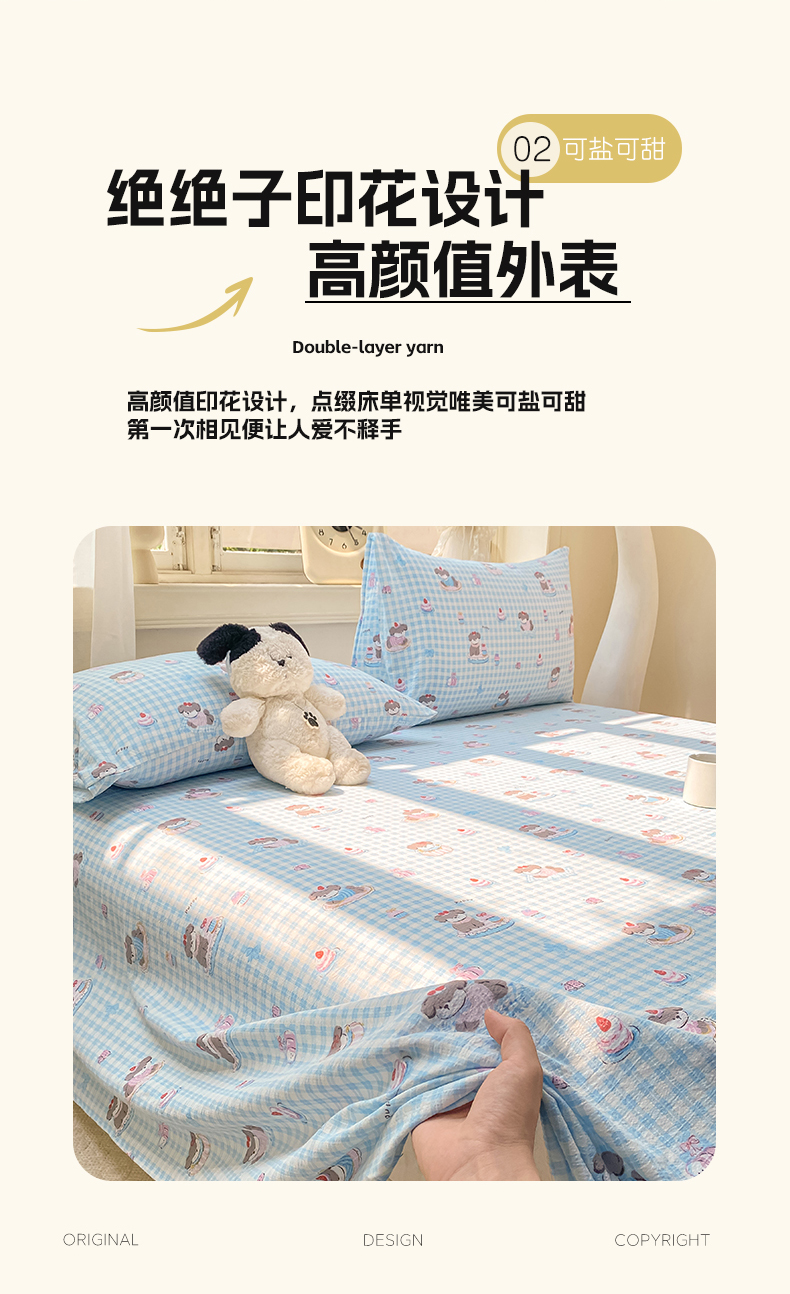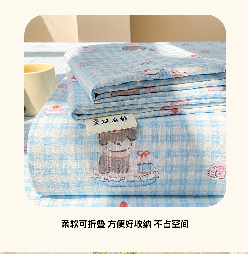 • 91家纺网 家纺一手货源 找家纺 眠势力 2025新款云感双层纱床单三件套ins奶油风学生宿舍床单四季通用 淘气狗