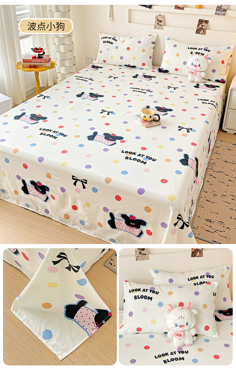 纽缦家纺 2025新款水洗双层纱床单 波点小狗