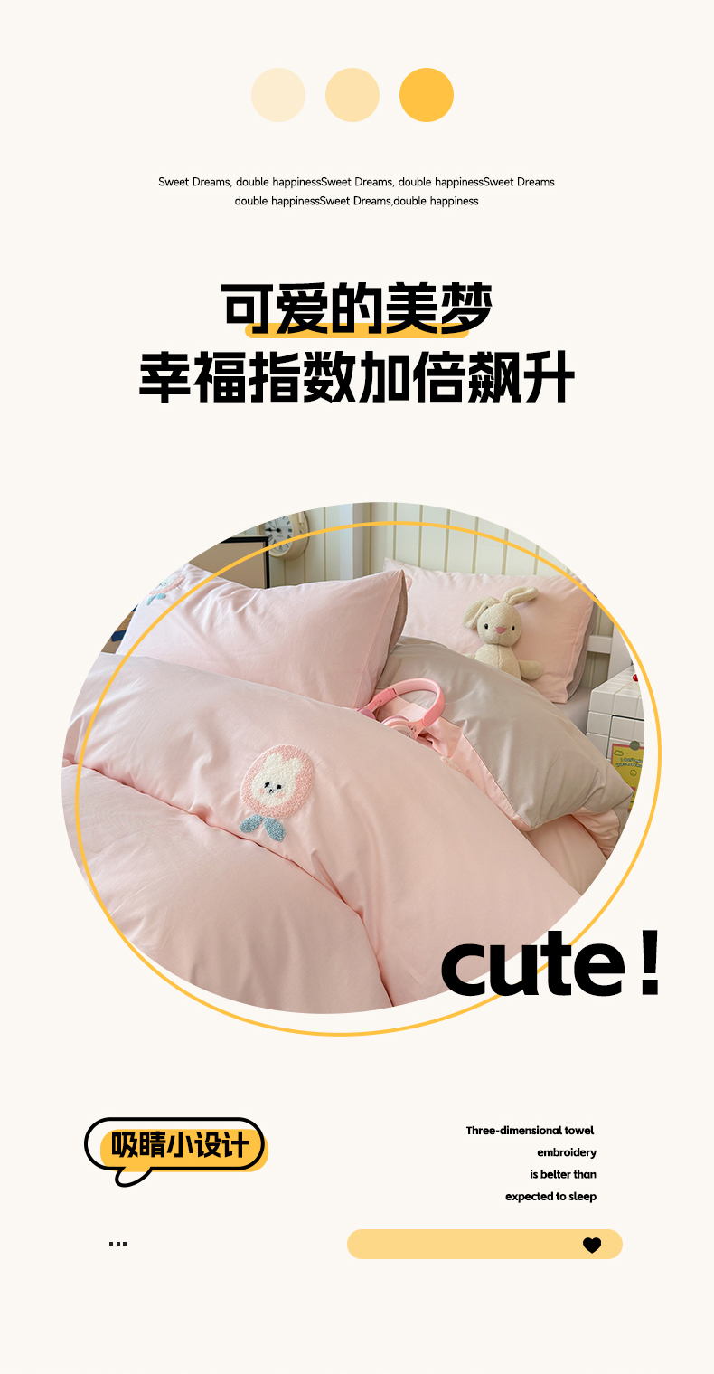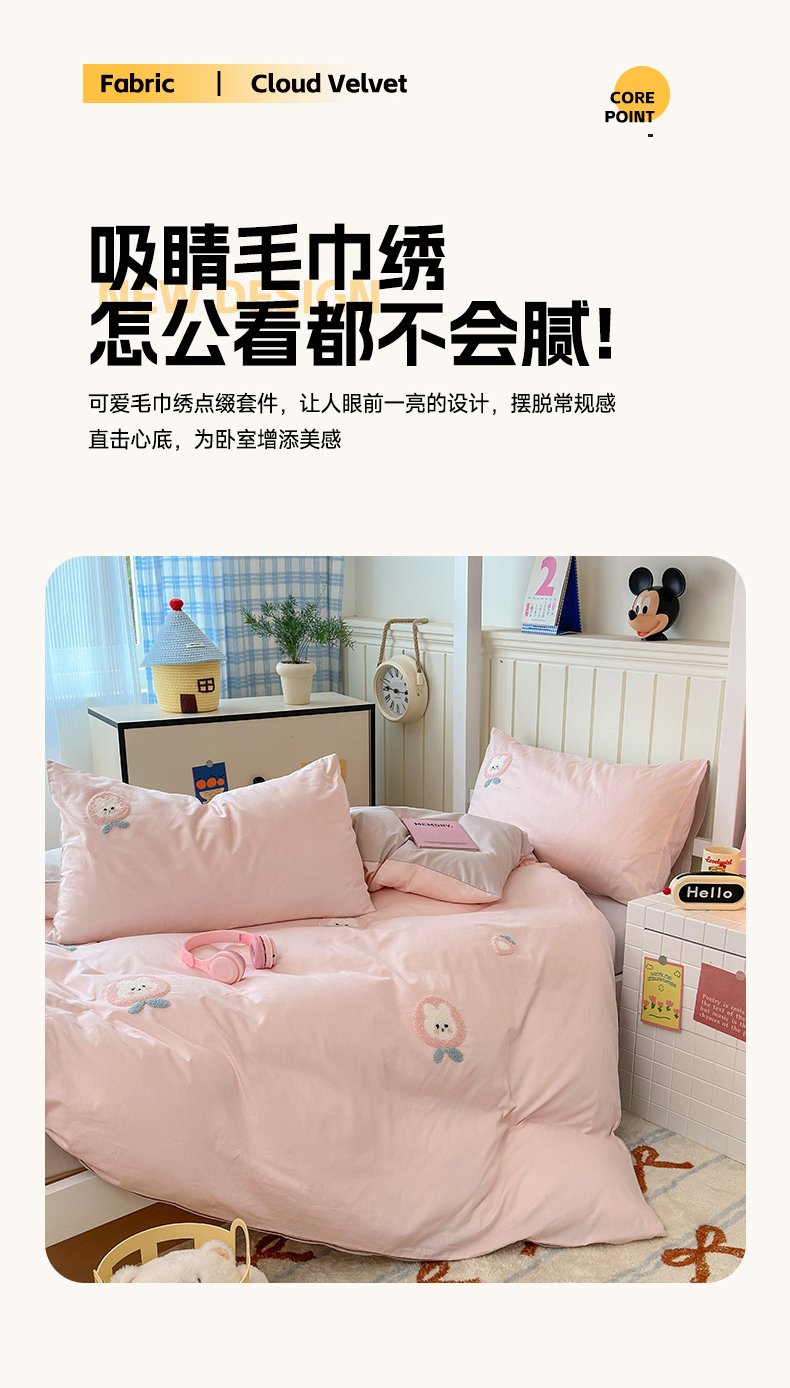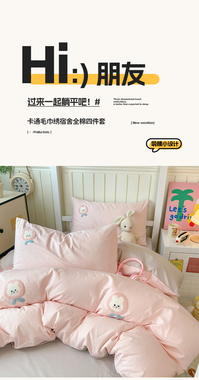 当前位置: 91家纺网 > 商品网购 > 床品套件 > 三件套 > 锦觅 2025新款学生季全棉纯棉毛巾绣三件套奶油小清新刺绣四件套(全文件大图以及买家秀) 草莓兔兔