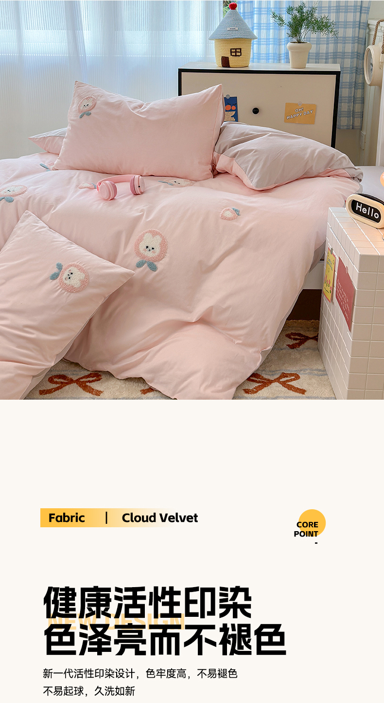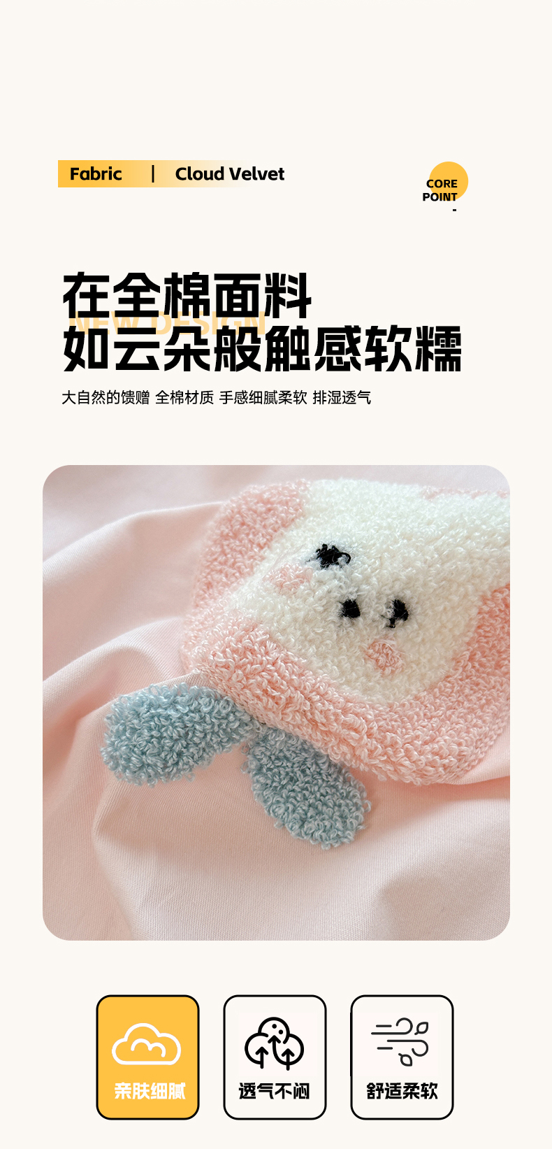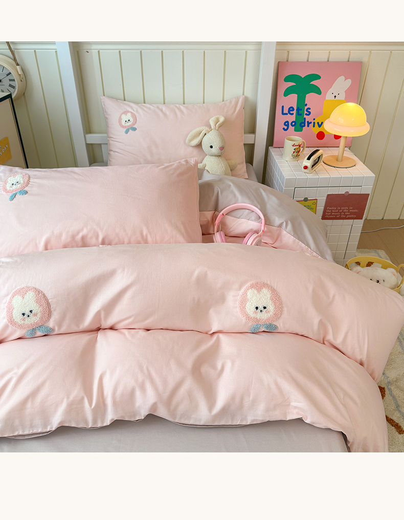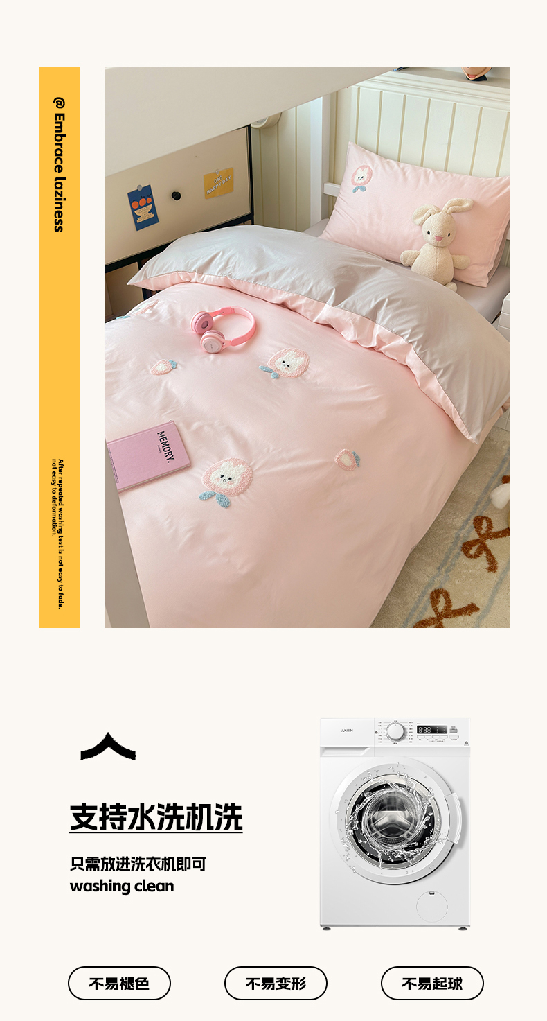 当前位置: 91家纺网 > 商品网购 > 床品套件 > 三件套 > 锦觅 2025新款学生季全棉纯棉毛巾绣三件套奶油小清新刺绣四件套(全文件大图以及买家秀) 草莓兔兔