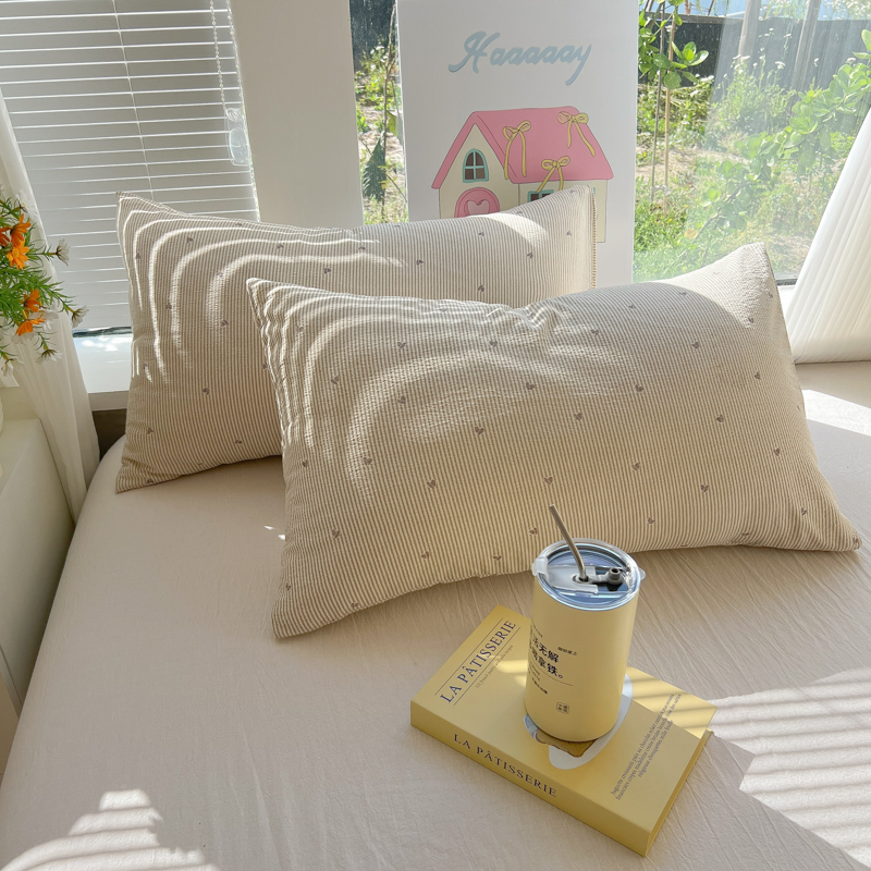 商品名称:韩巢家纺 2025新款云感提花双层纱枕套头套枕芯套 米倾心