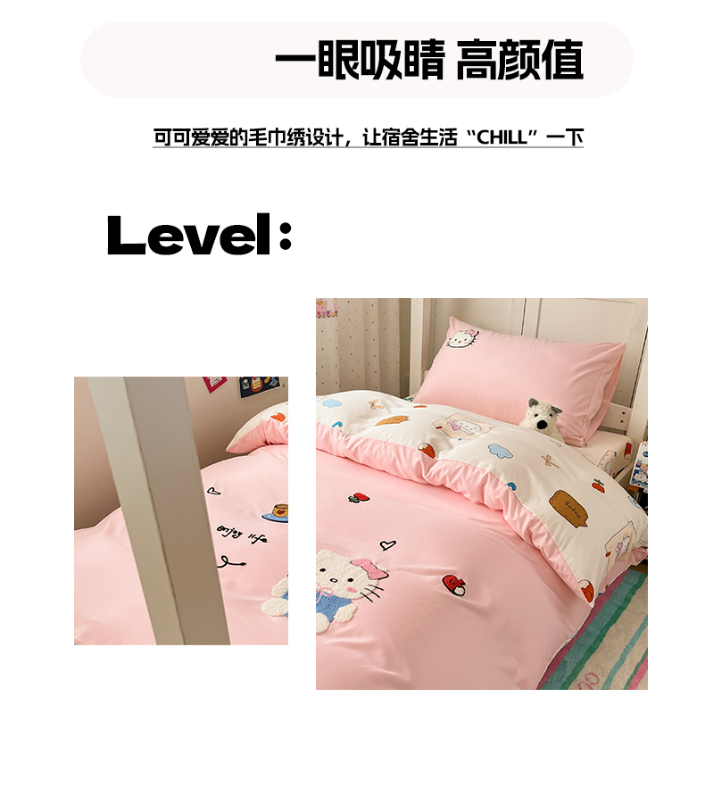 (总)如一 2025新款A类卡通毛巾绣水洗云朵棉学生宿舍床三件套