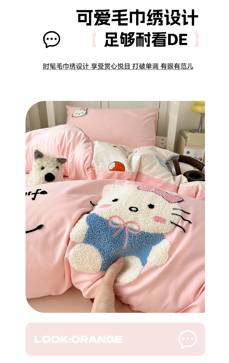 (总)如一 2025新款卡通毛巾绣系列牛奶绒四件套,卡皮柿子,爱心天使,豹纹黑皮,草莓灰猫,蛋糕小狗,粉格小猫,海绵宝宝,快乐企鹅,拉布饼干,蓝格黑猫,领结粉兔,苹果拉布,竖条西高,晚安小象,星星宝贝,星星木马,星星派对,星星苹果,星月猫咪,樱桃黑猫