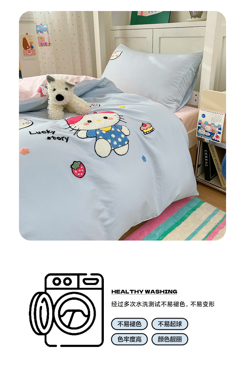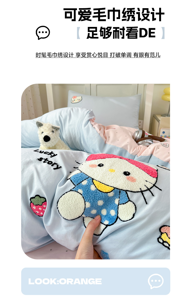 当前位置: 91家纺网 > 商品网购 > 床品套件 > 三件套 > 如一 2025新款A类卡通毛巾绣水洗云朵棉学生宿舍床三件套 淘气猫