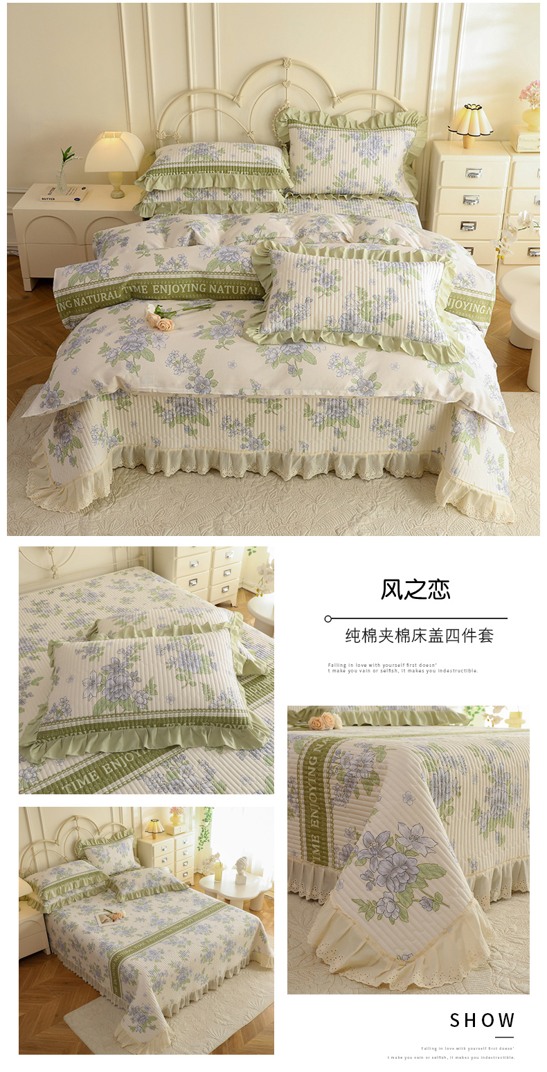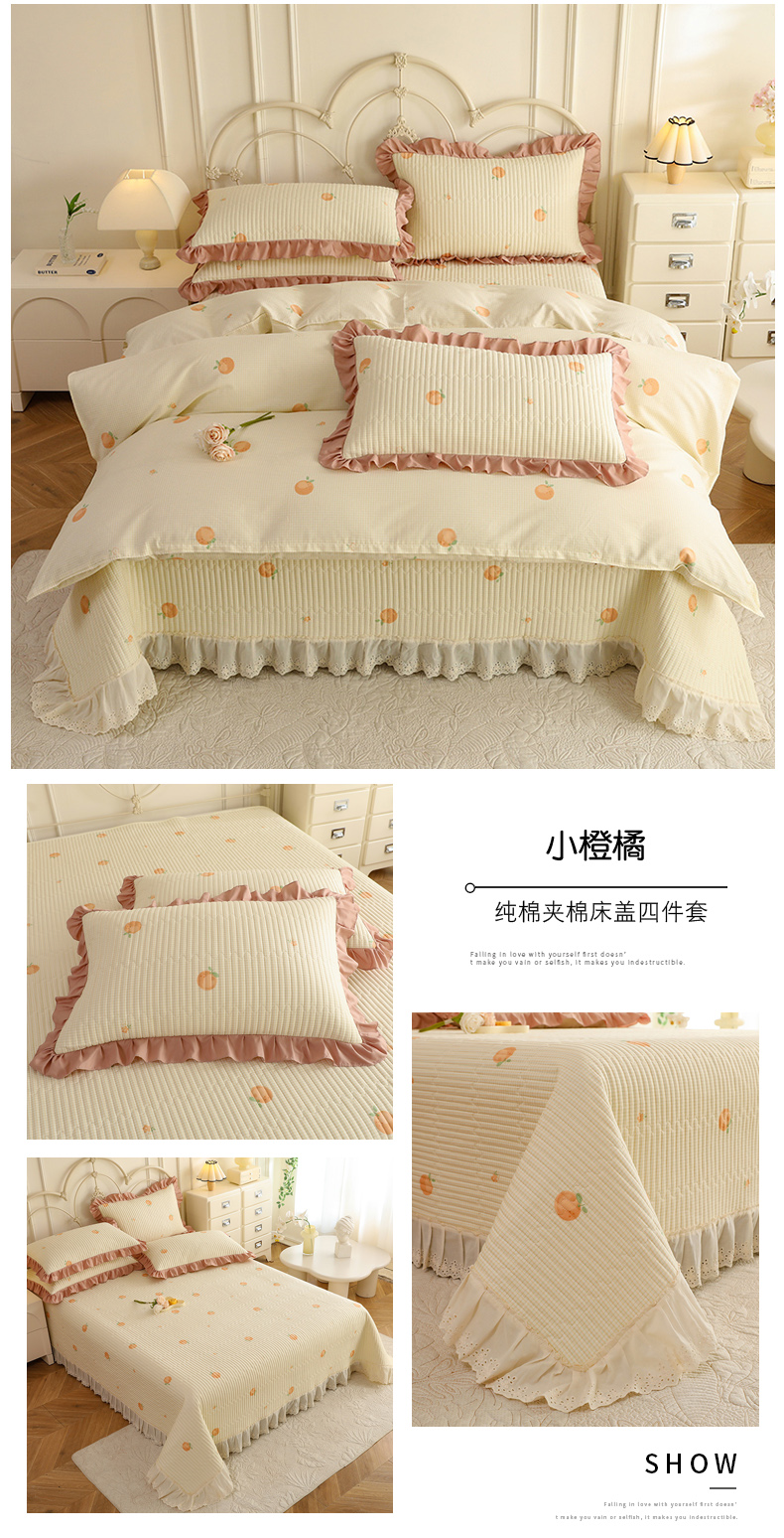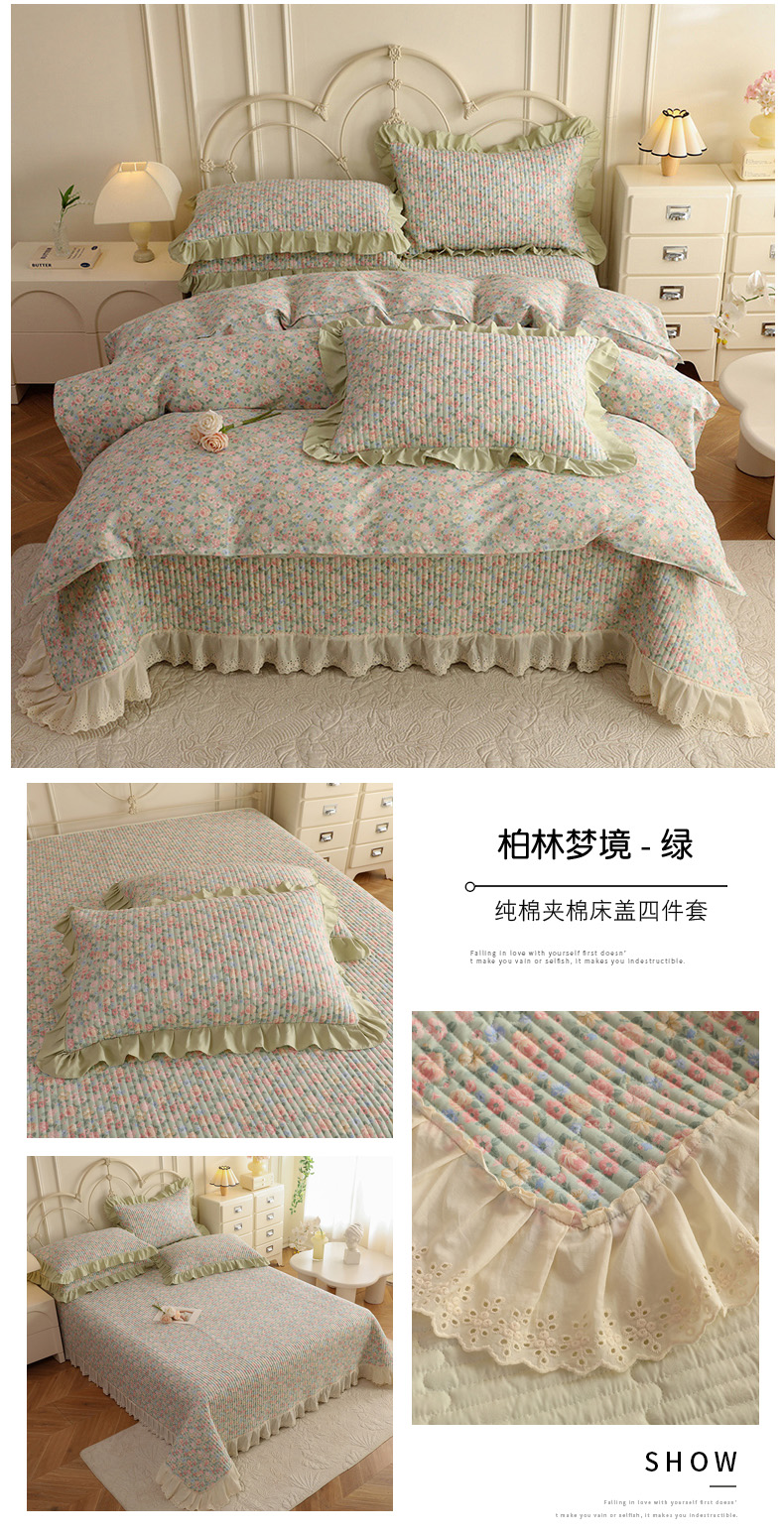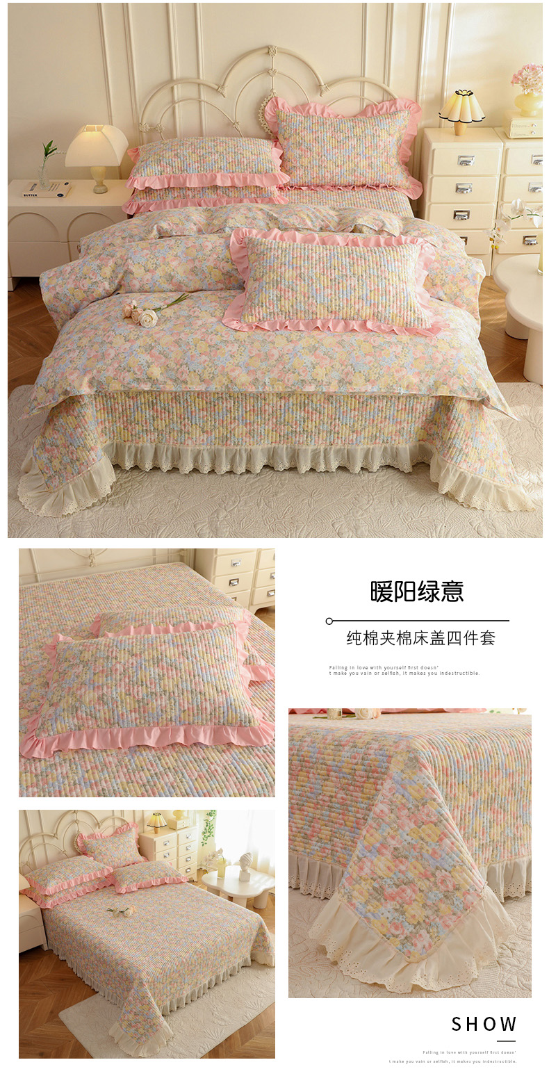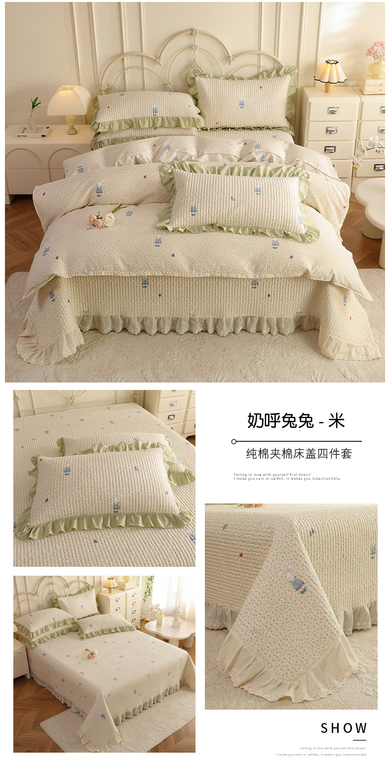 (总)美达家纺 2025新款全棉夹棉密道款床盖四件套(可定制),柏林梦境-绿,贝贝南瓜,风之恋,花枝摇曳,加州甜心-粉,暮风寻蝶,奶呼兔兔-米,暖阳绿意,小橙橘