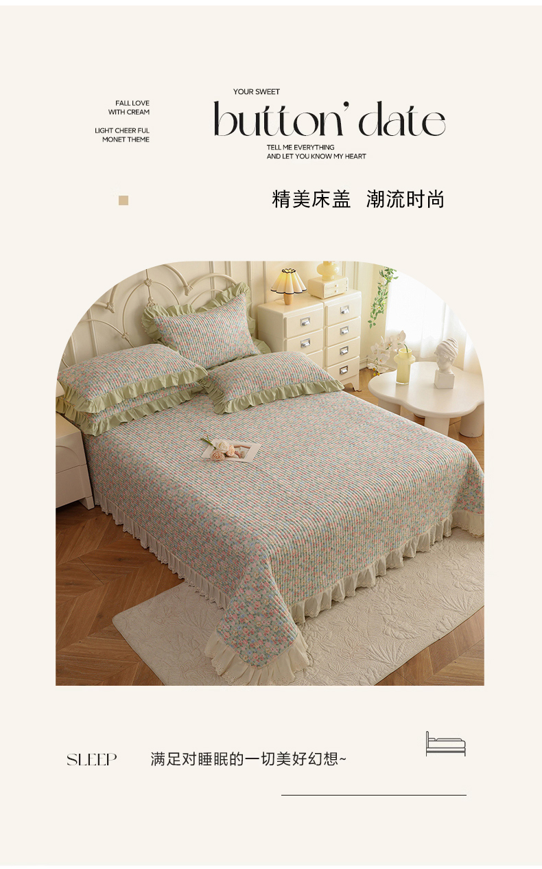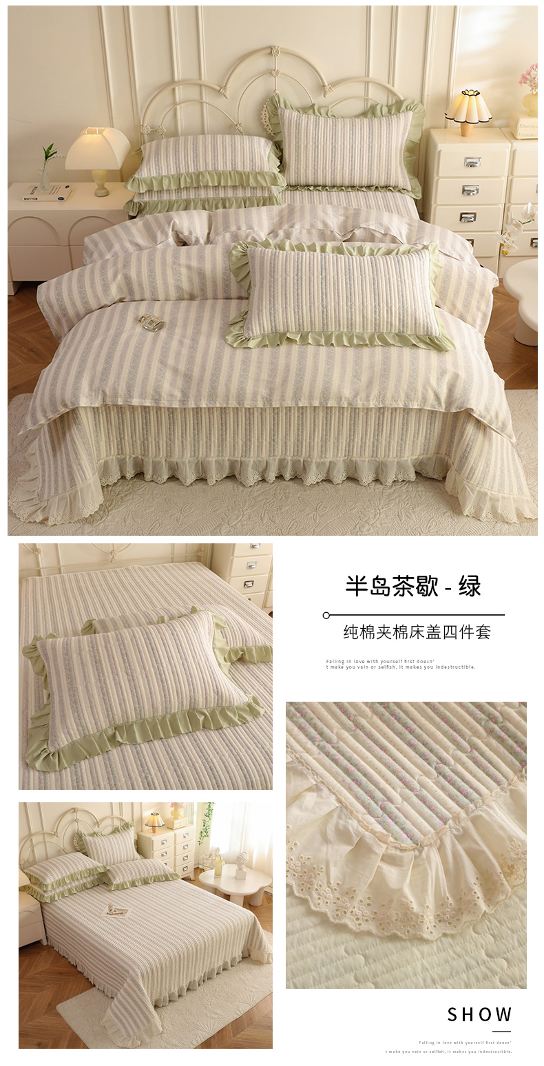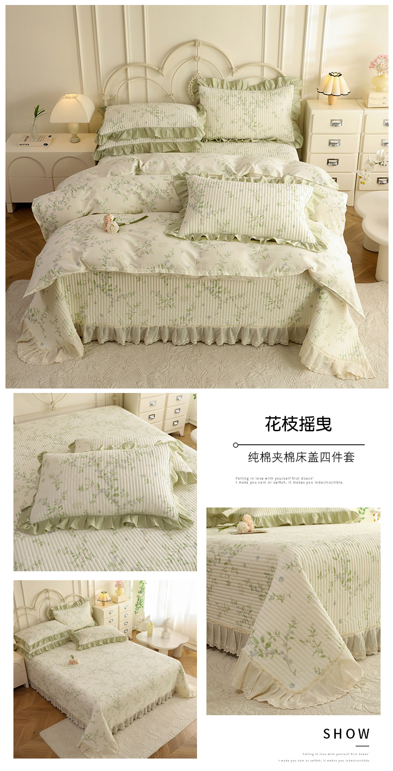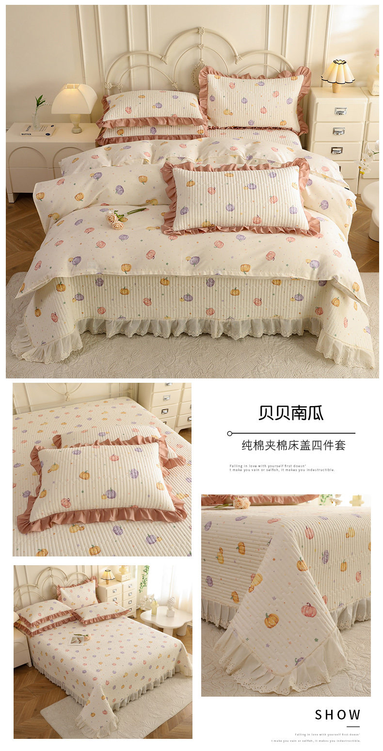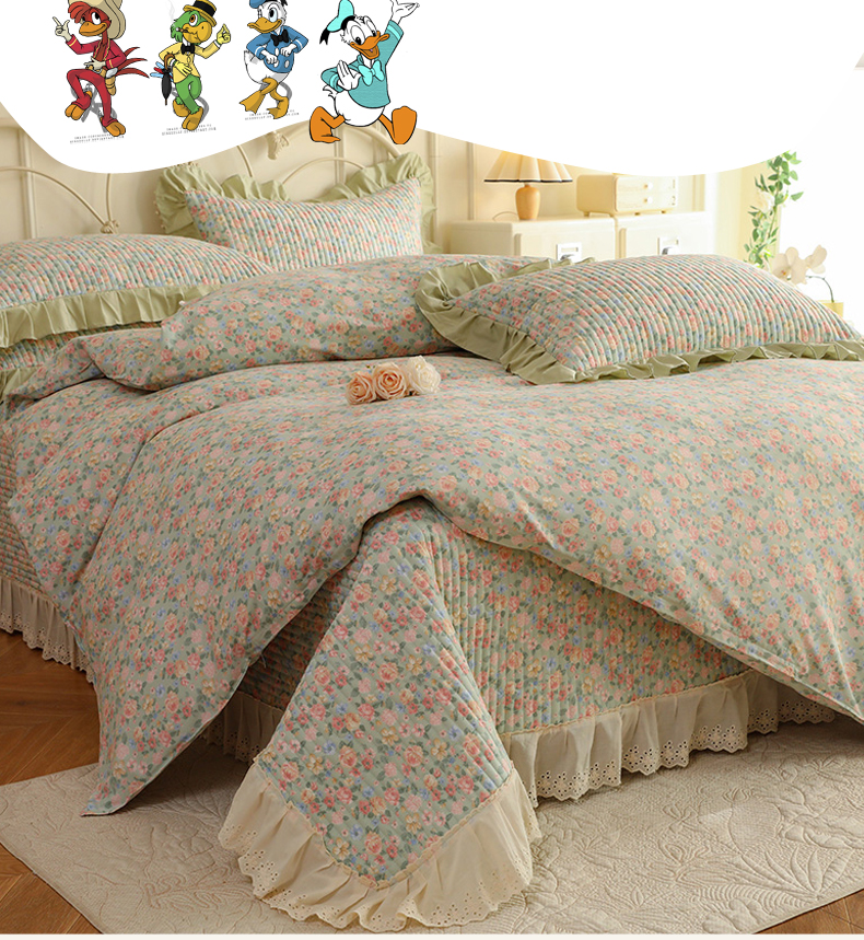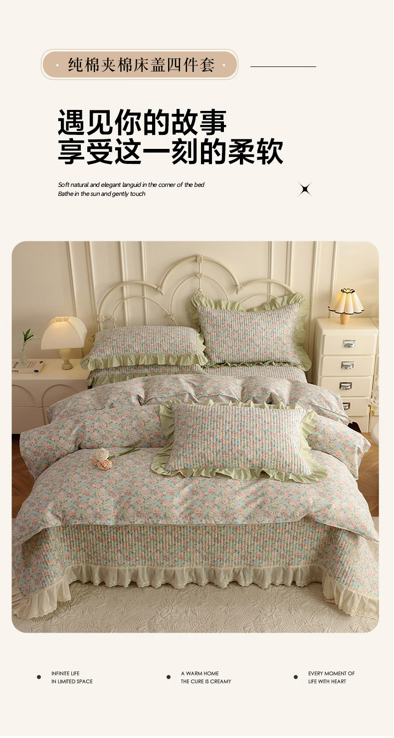 (总)美达家纺 2025新款全棉夹棉密道款床盖四件套(可定制),柏林梦境-绿,贝贝南瓜,风之恋,花枝摇曳,加州甜心-粉,暮风寻蝶,奶呼兔兔-米,暖阳绿意,小橙橘