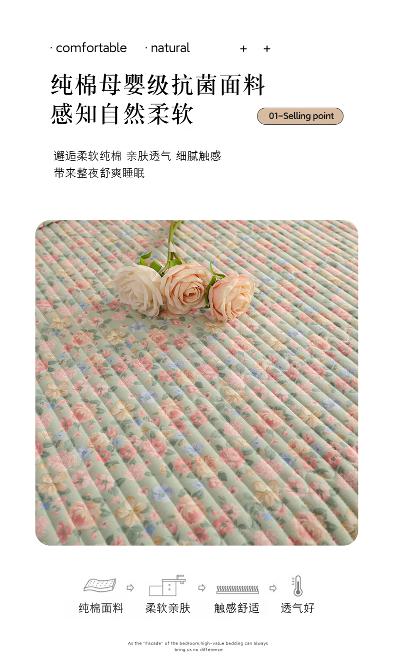 (总)美达家纺 2025新款玫瑰系列全棉夹棉床裙,玫瑰-米咖,玫瑰-浅玉,玫瑰-浅灰,玫瑰-紫色,玫瑰-米白,玫瑰-嫩绿