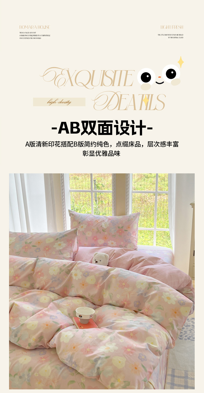 当前位置: 91家纺网 > 商品网购 > 床品套件 > 四件套 > 全棉普通四件套 > 寻米 2025新款全棉纯棉印花学生季四件套 春日暖阳-粉