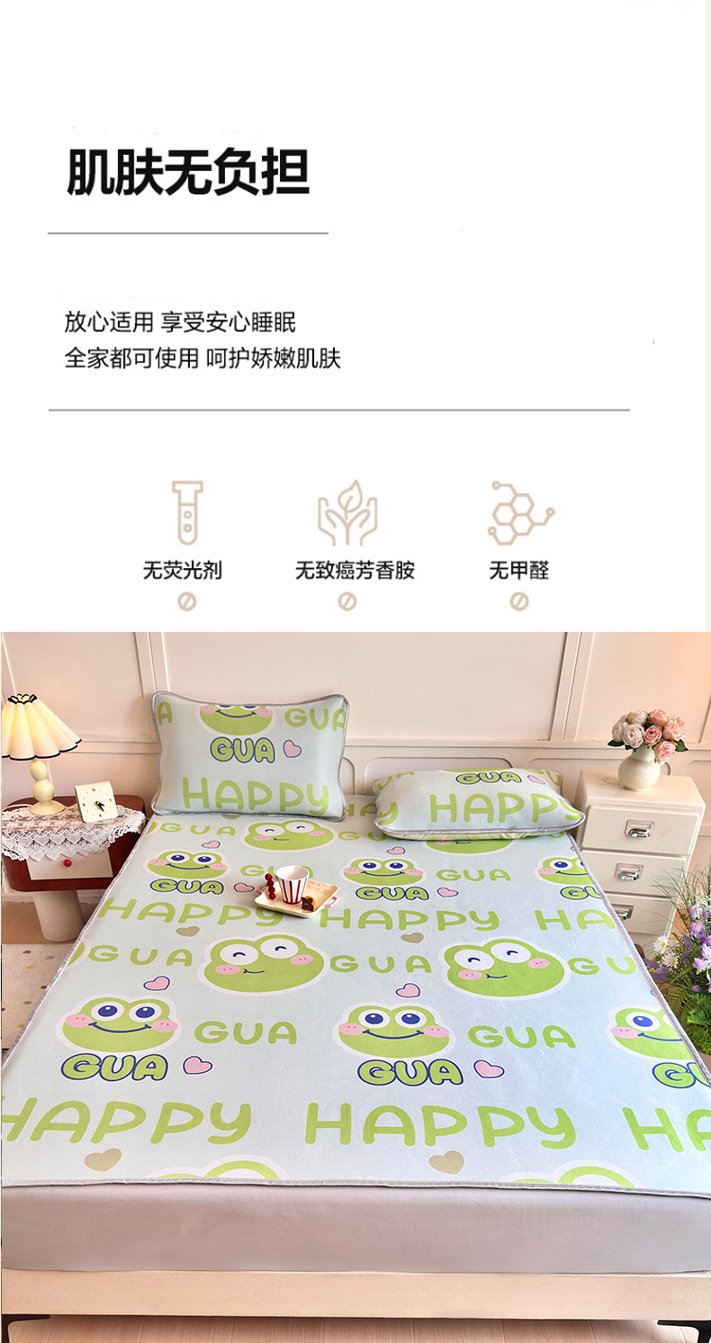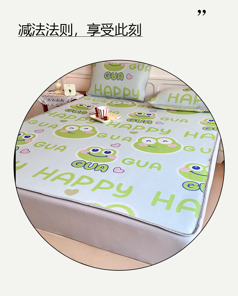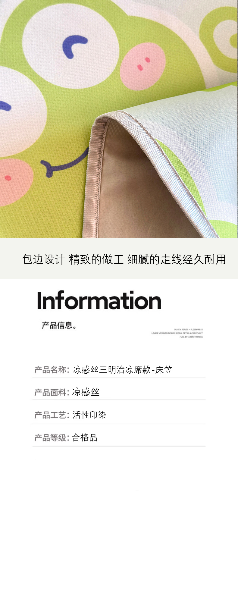 商品名称:乐居家纺 2025新款凉感丝三明治床笠款凉席席子 卡通青蛙