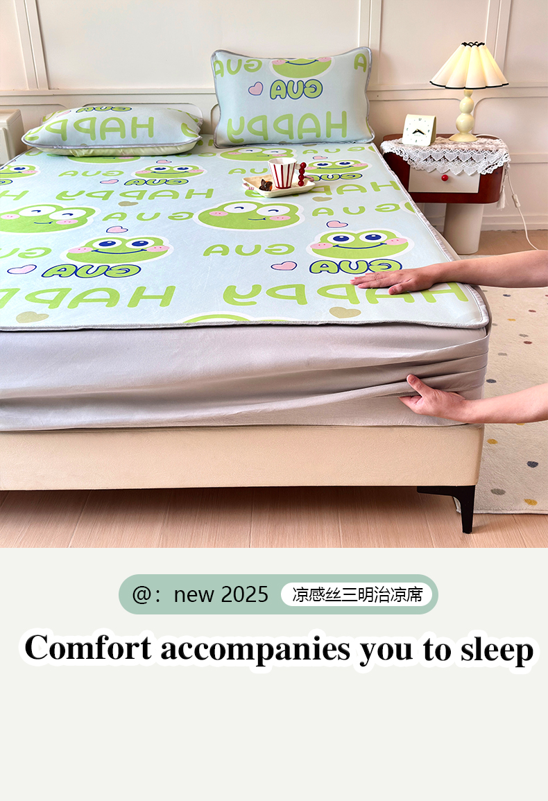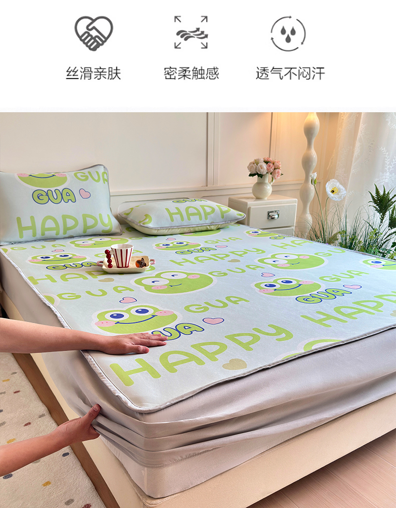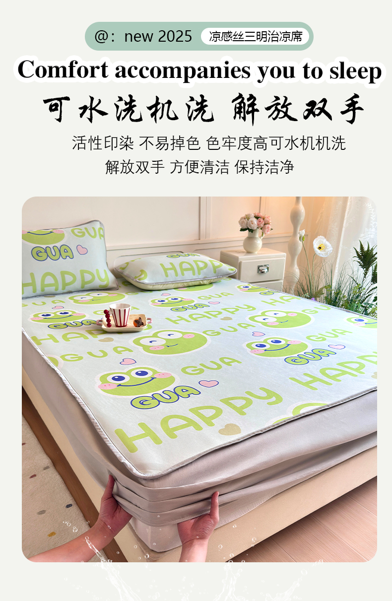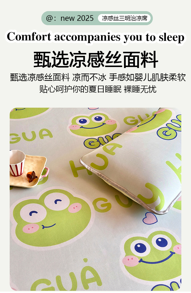 乐居家纺 2025新款凉感丝三明治床笠款凉席席子 卡通青蛙