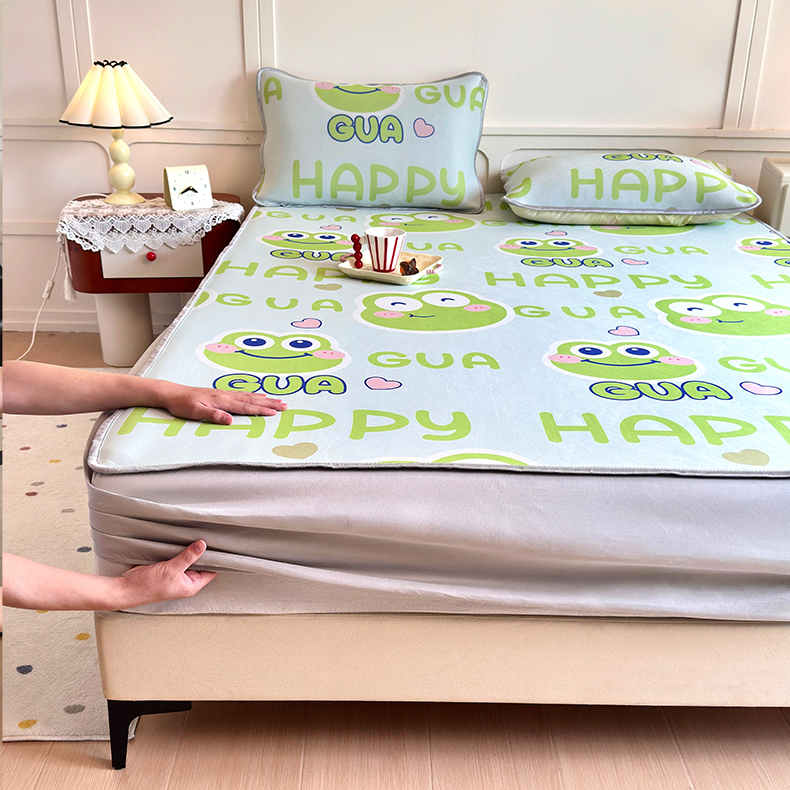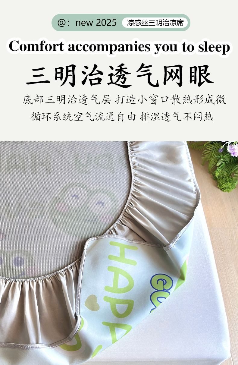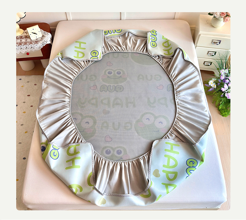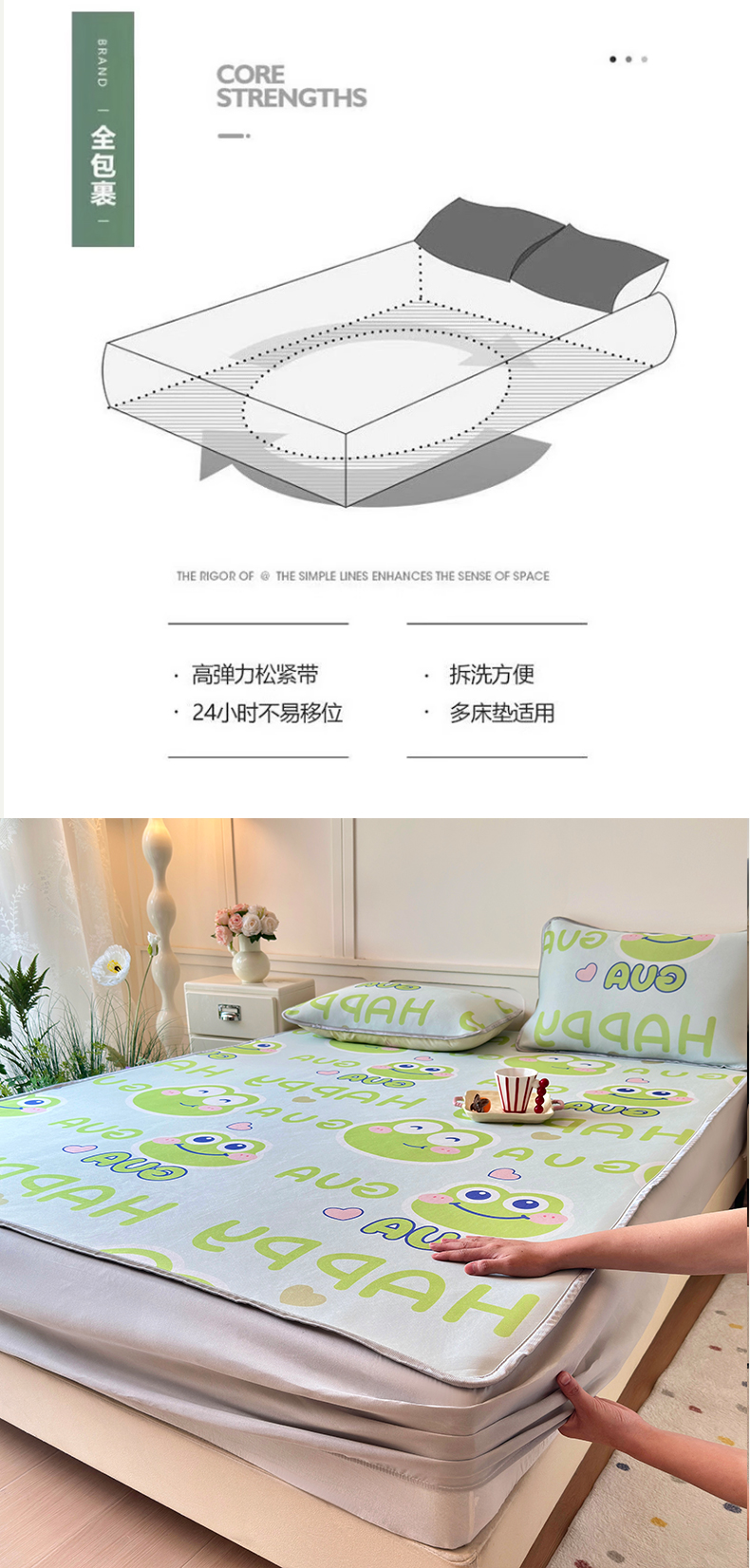 乐居家纺 2025新款凉感丝三明治床笠款凉席席子 卡通青蛙