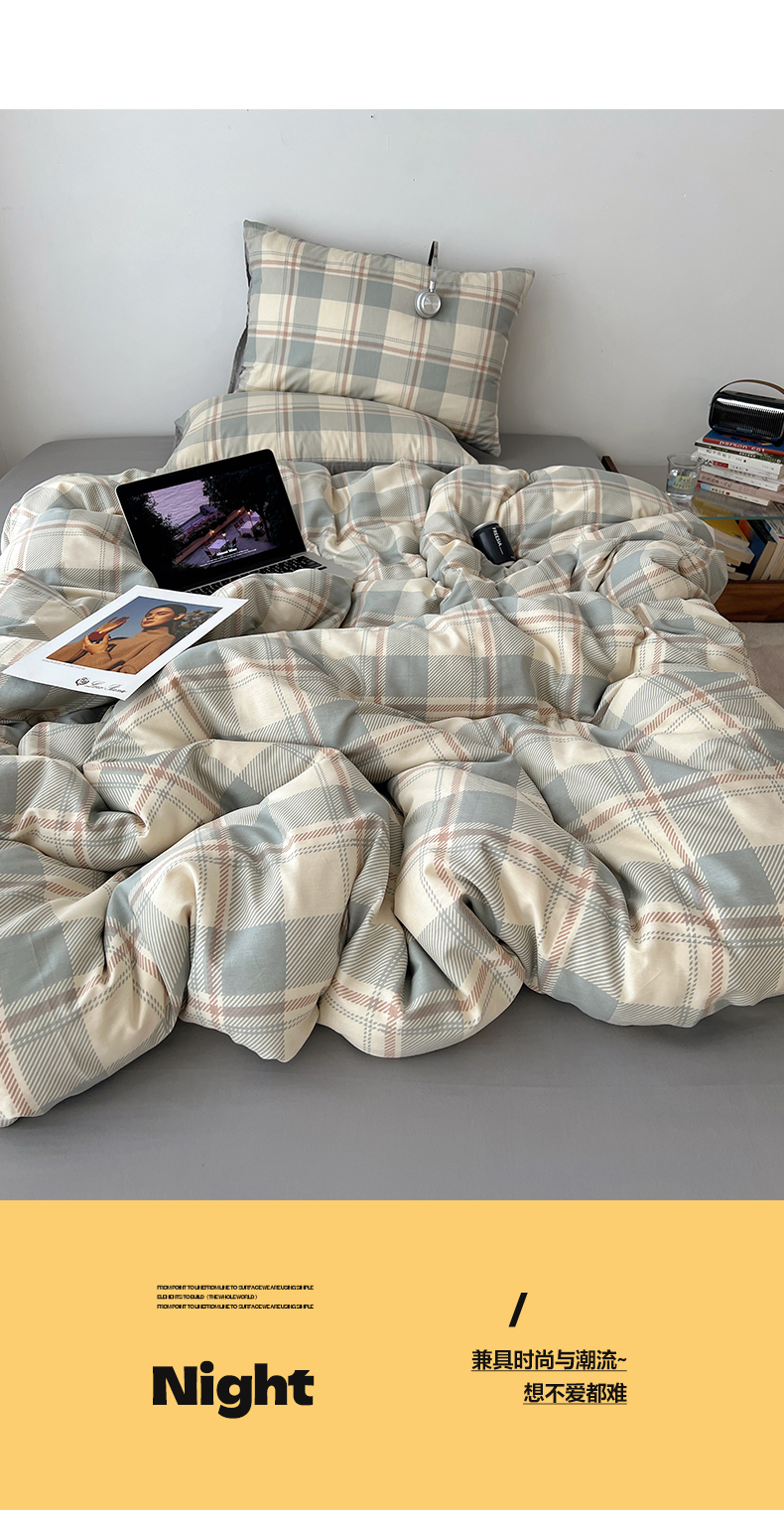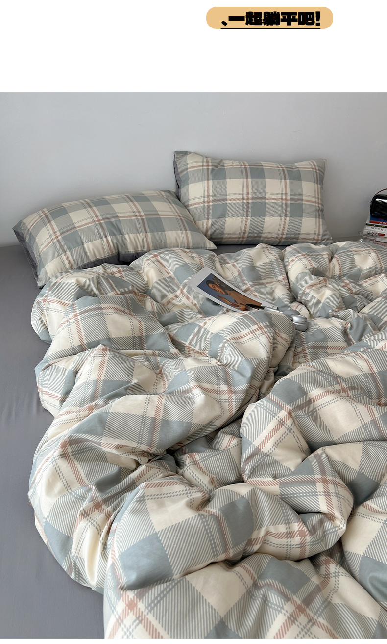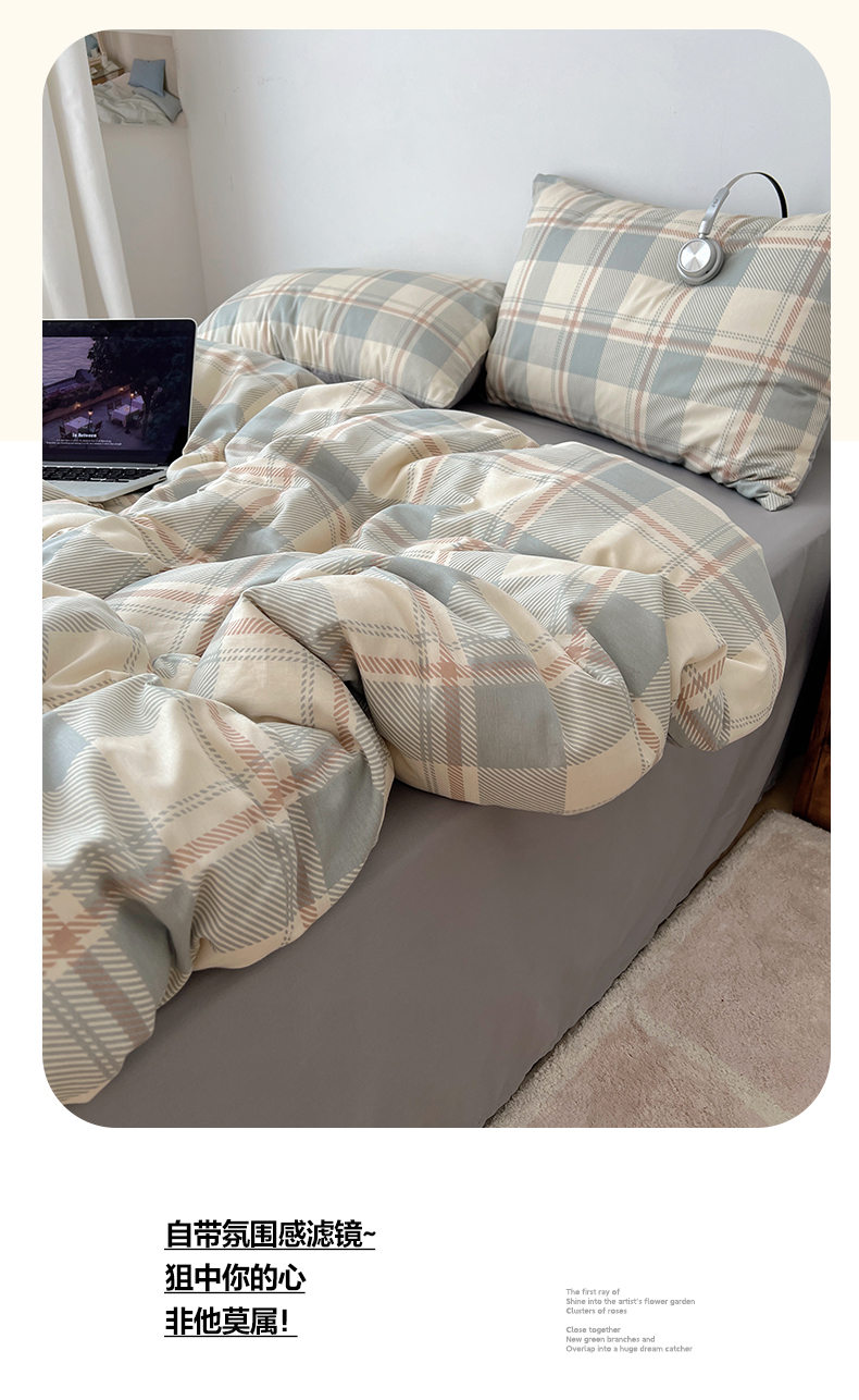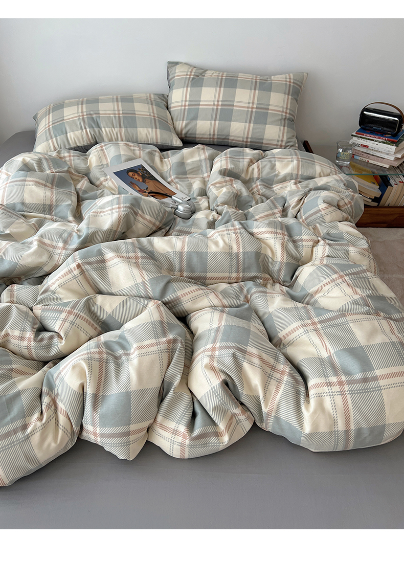 当前位置: 91家纺网 > 商品网购 > 床品套件 > 四件套 > 全棉普通四件套 > 雅居纺家纺 2025春夏新款全棉纯棉印花四件套 复古蓝灰格