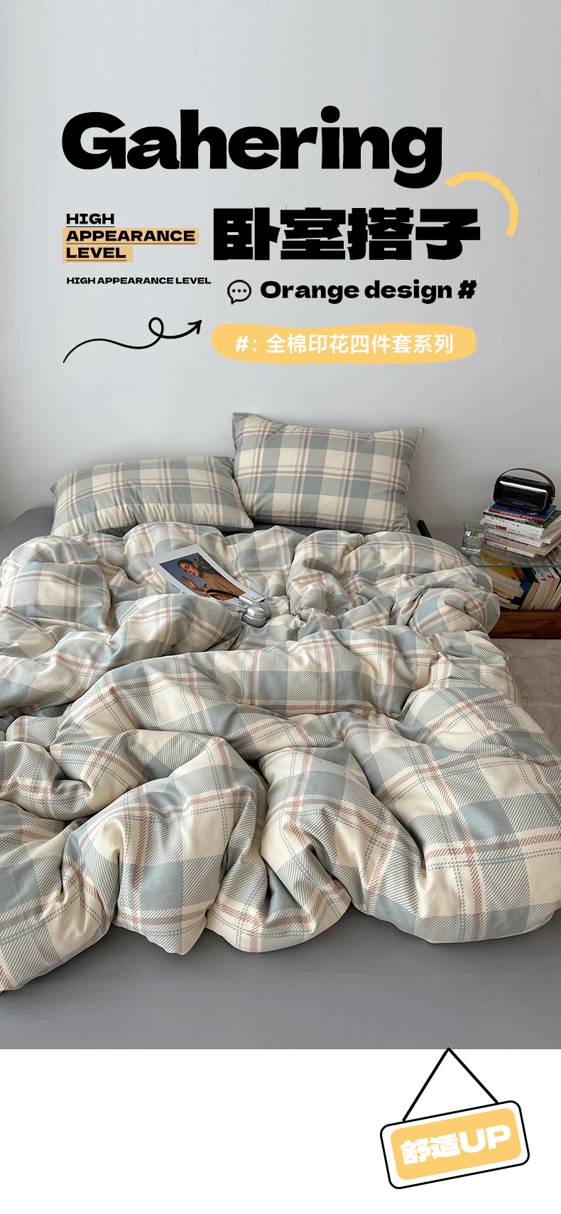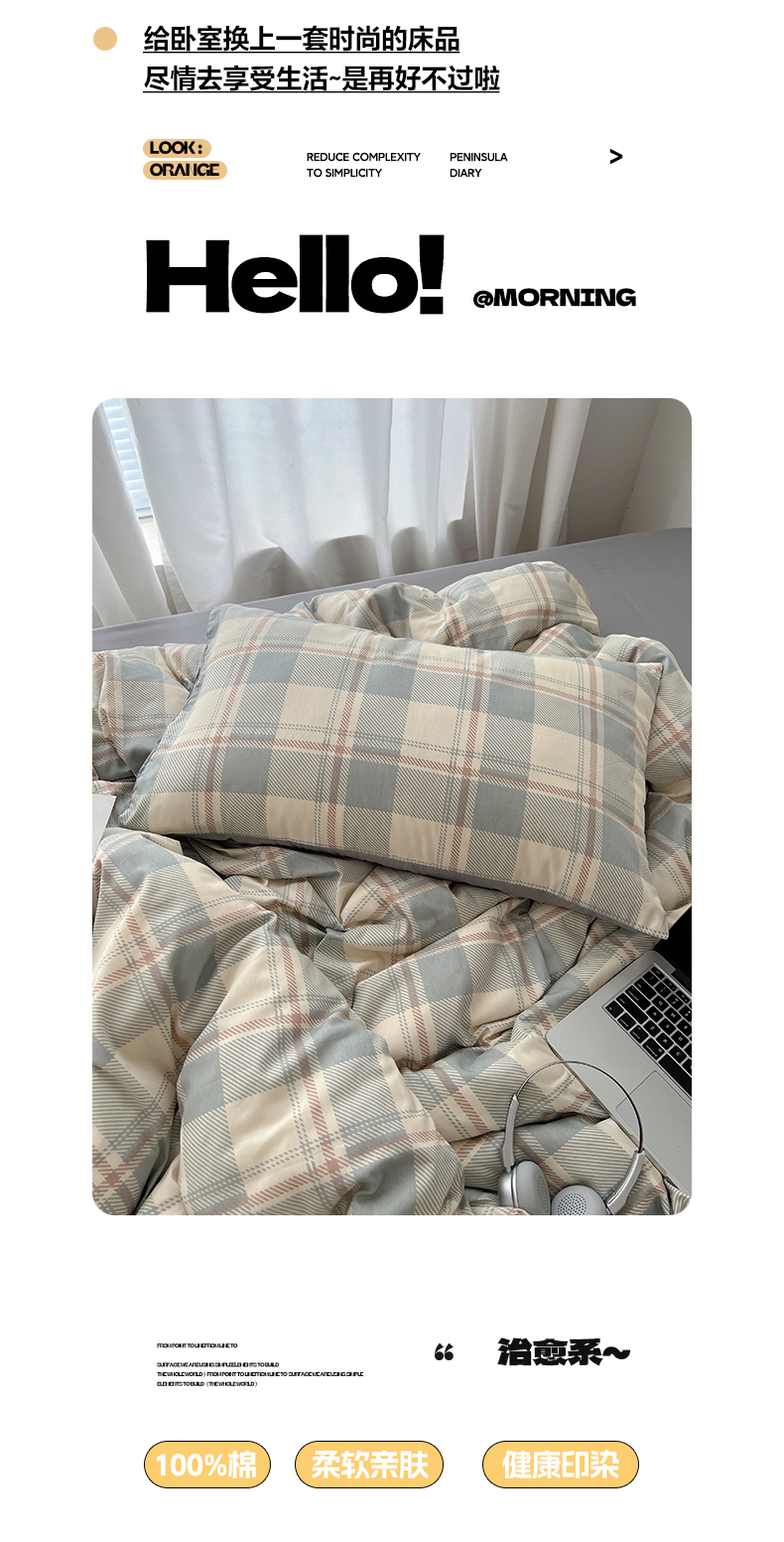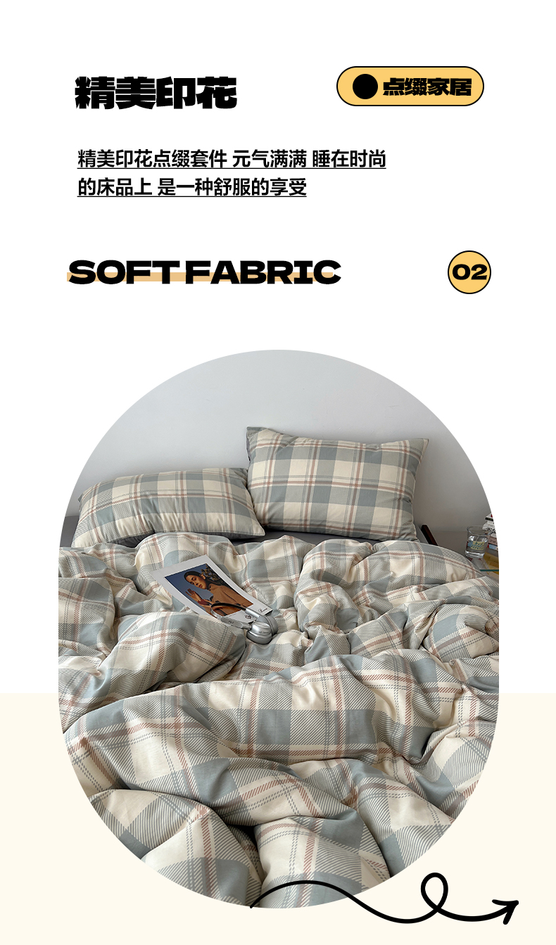 当前位置: 91家纺网 > 商品网购 > 床品套件 > 四件套 > 全棉普通四件套 > 雅居纺家纺 2025春夏新款全棉纯棉印花四件套 复古蓝灰格