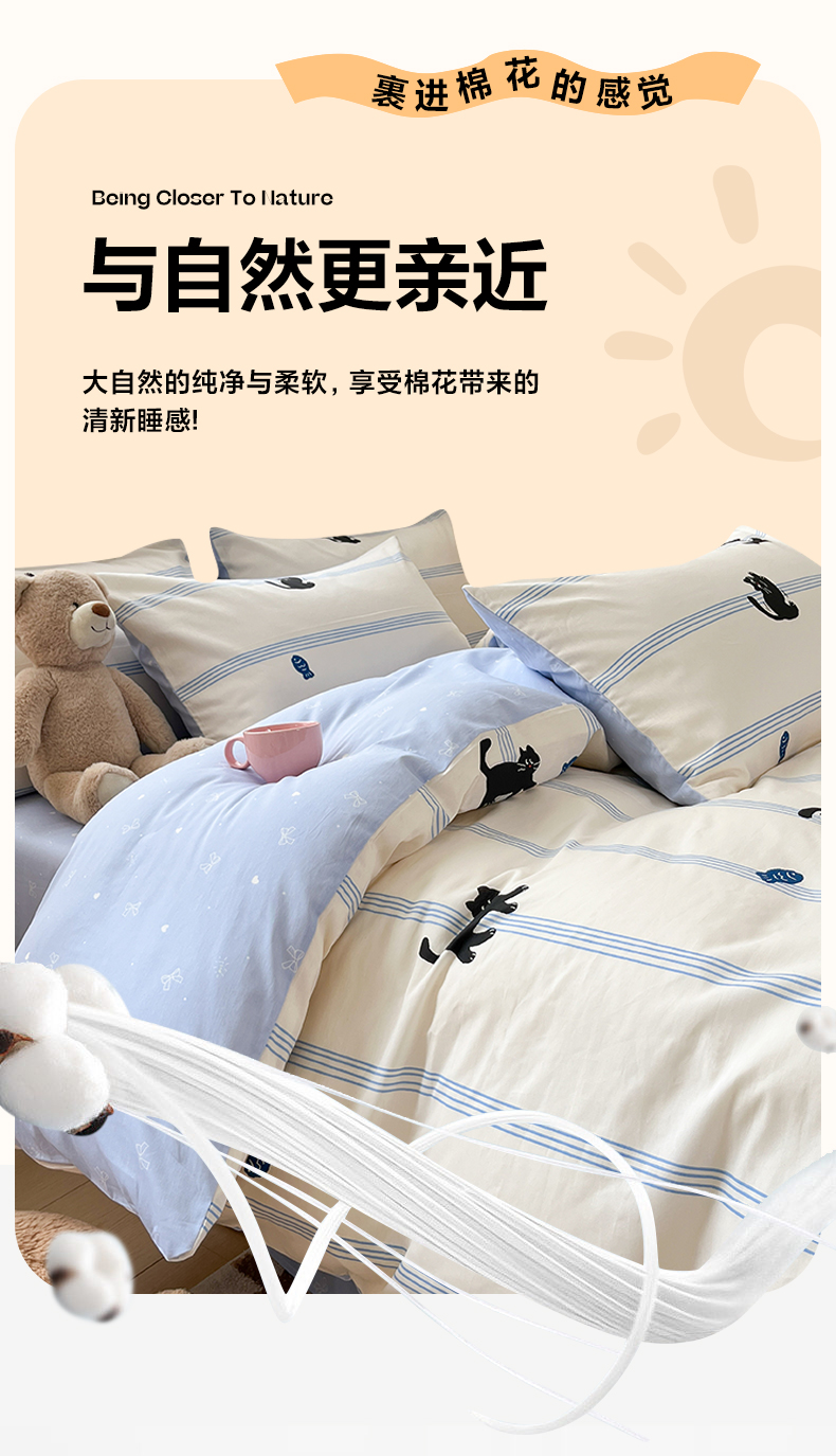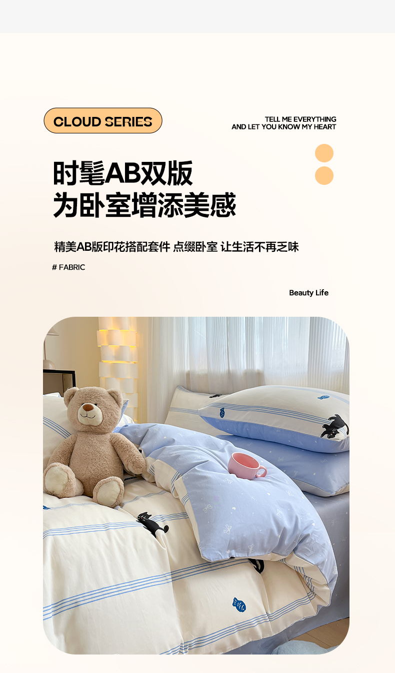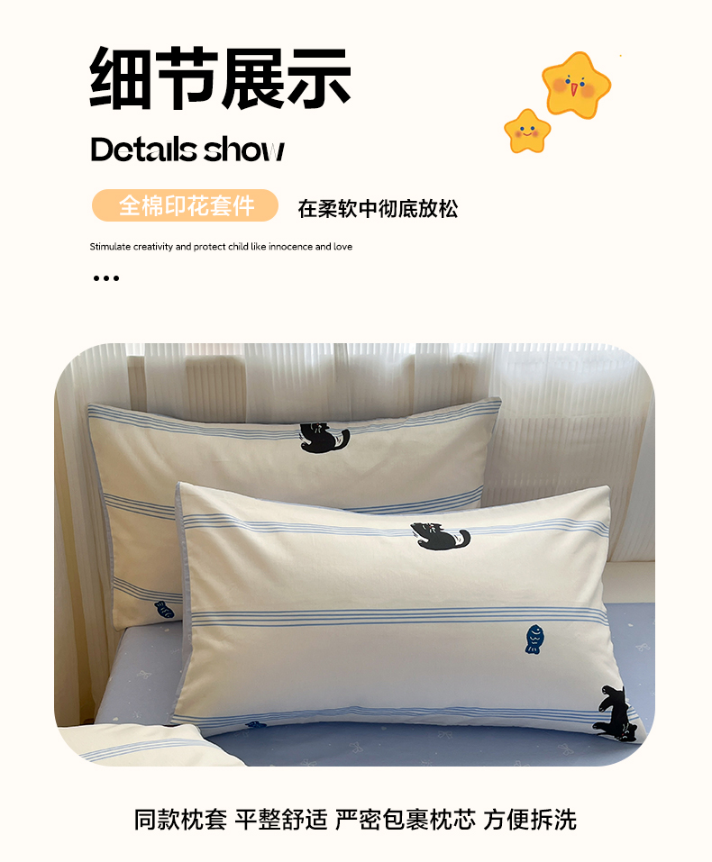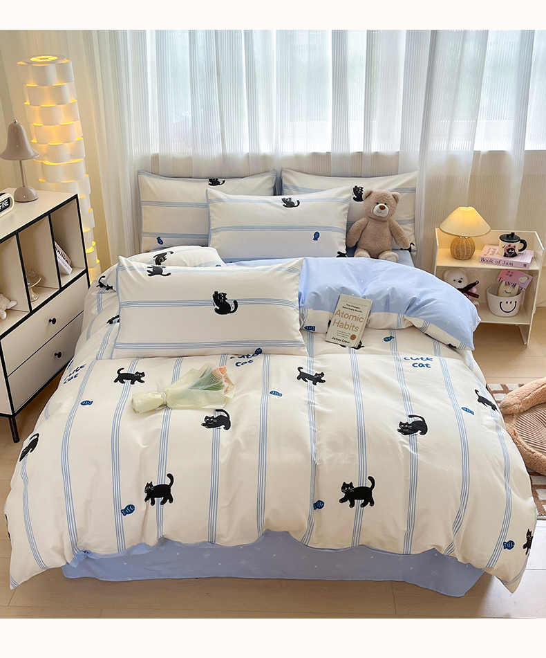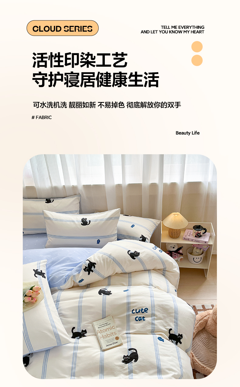 当前位置: 91家纺网 > 商品网购 > 床品套件 > 四件套 > 全棉普通四件套 > 雅居纺家纺 2025春夏新款全棉纯棉印花四件套 可爱小猫