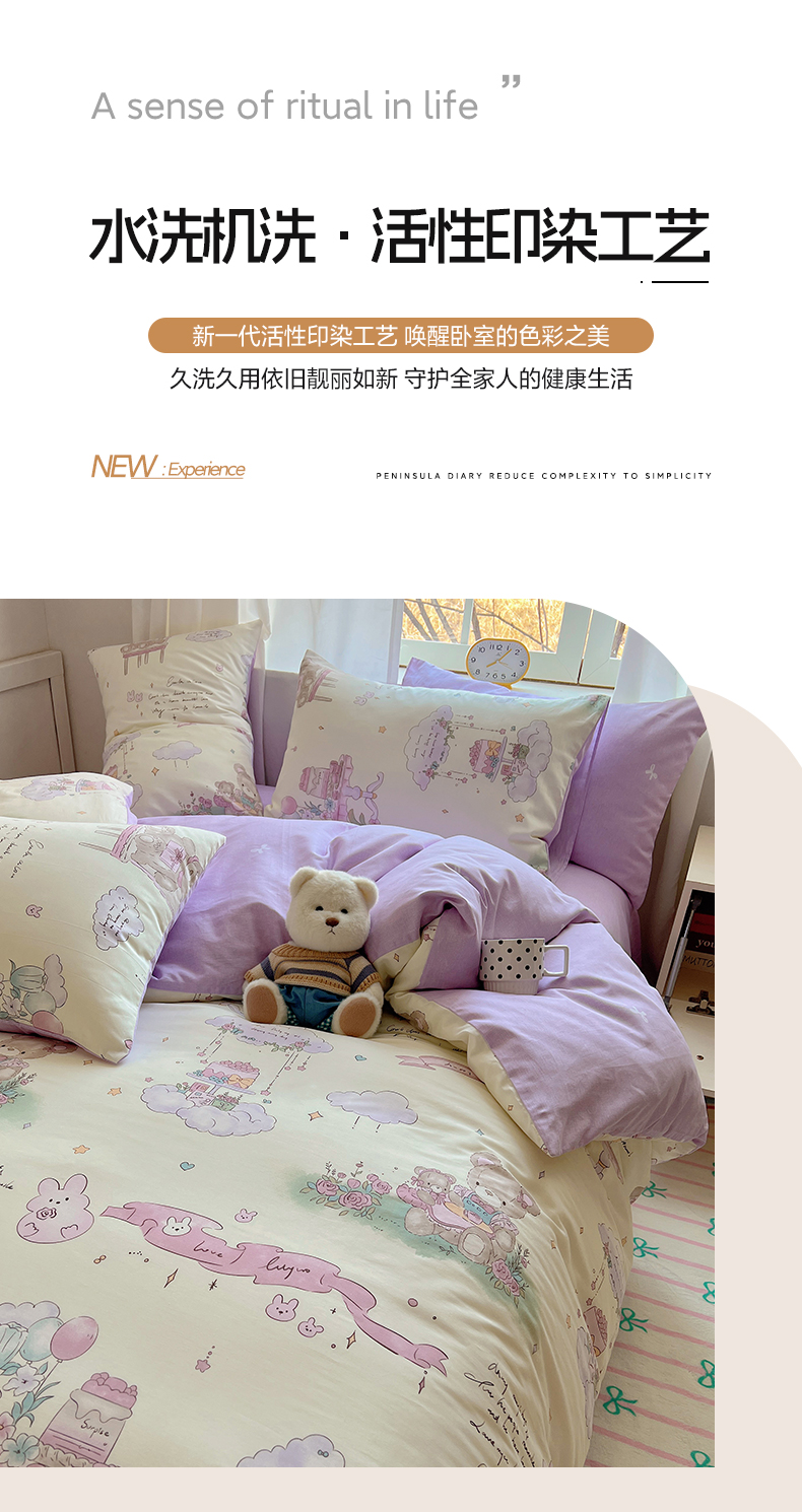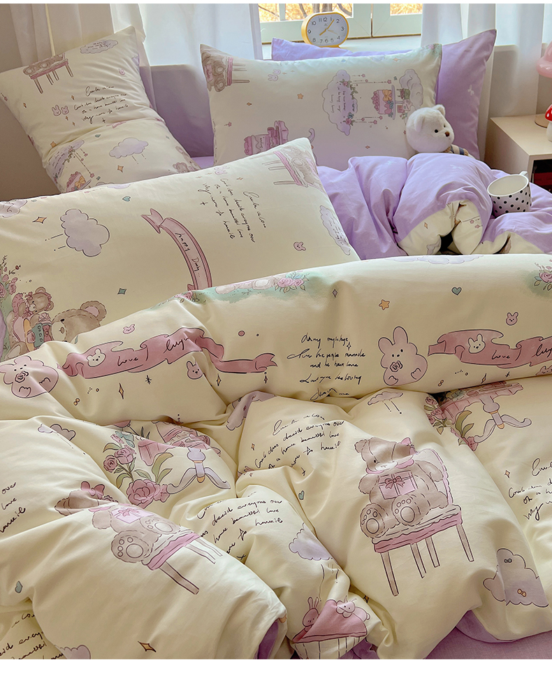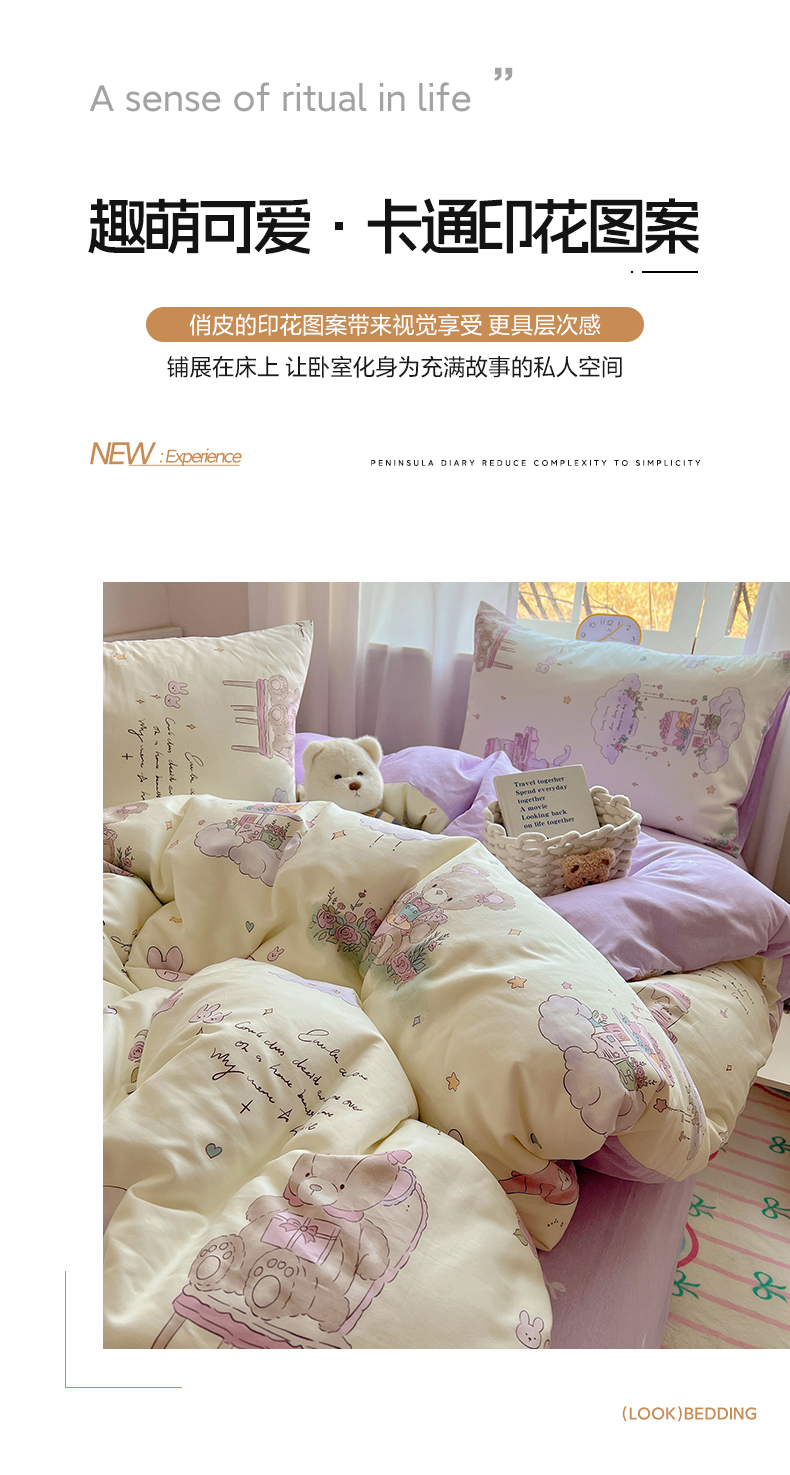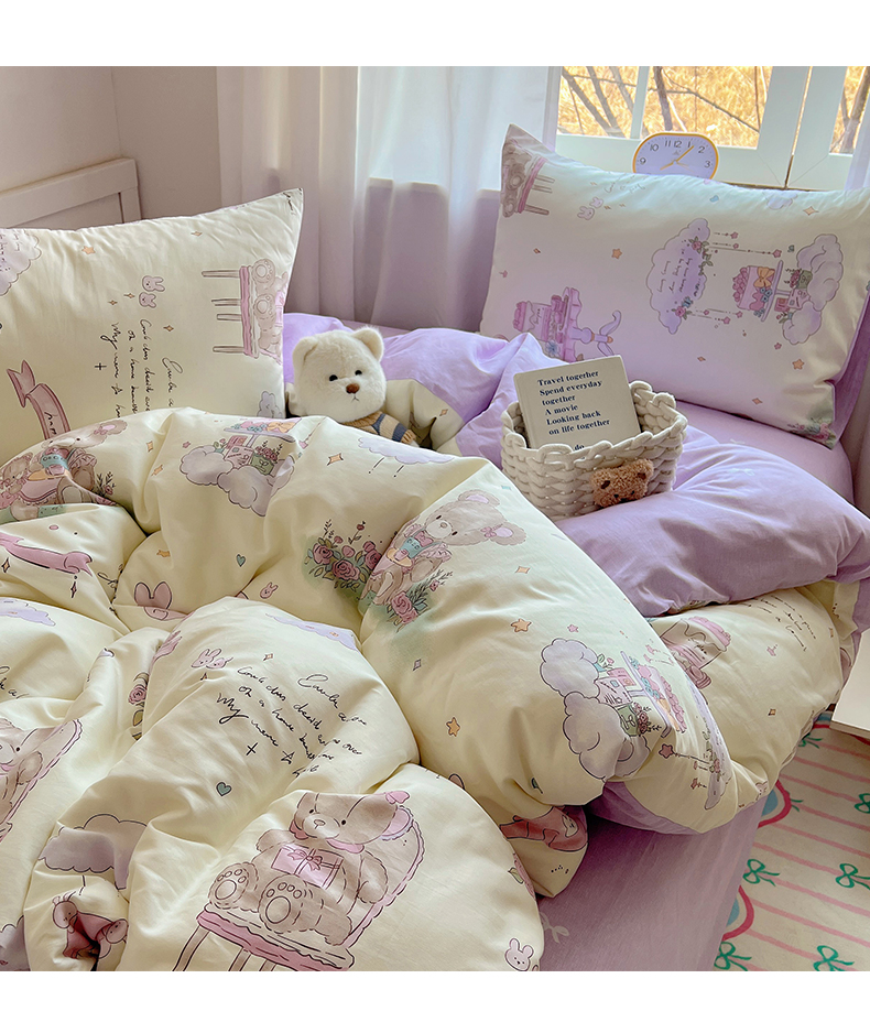 当前位置: 91家纺网 > 商品网购 > 床品套件 > 四件套 > 全棉普通四件套 > 雅居纺家纺 2025春夏新款全棉纯棉印花四件套 晚安小熊