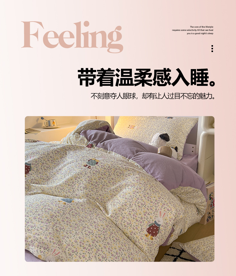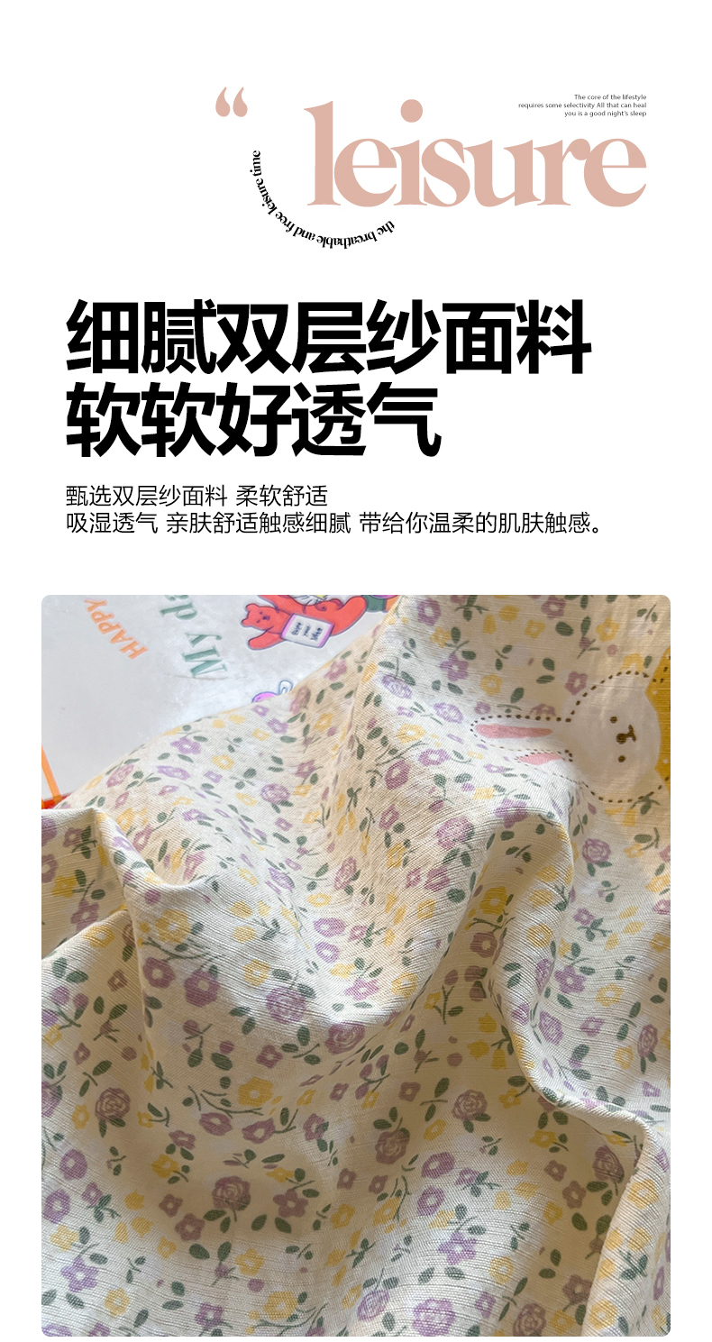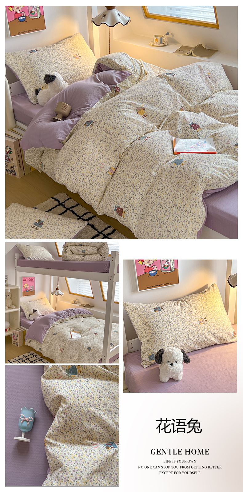 当前位置: 91家纺网 > 商品网购 > 床品套件 > 四件套 > 双层纱四件套 > 妖妖家纺2025云感双层纱学生三件套 花语兔