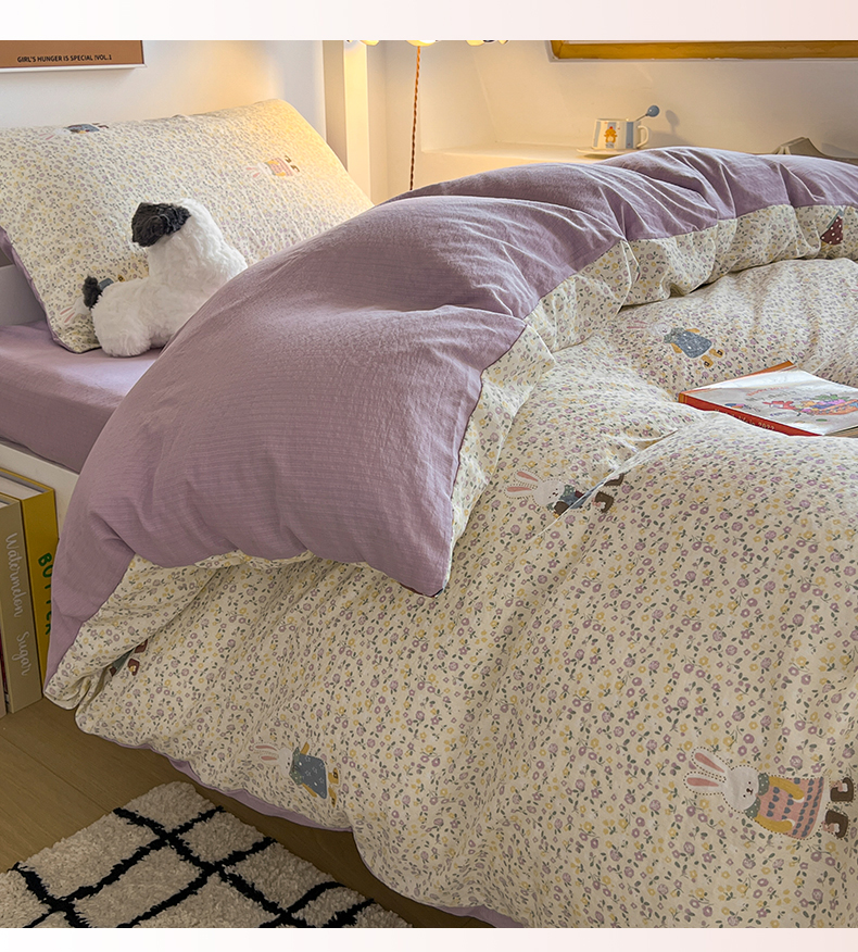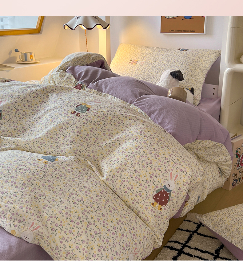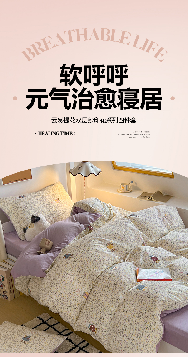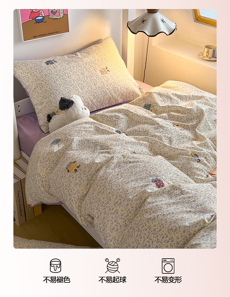 当前位置: 91家纺网 > 商品网购 > 床品套件 > 四件套 > 双层纱四件套 > 妖妖家纺2025云感双层纱学生三件套 花语兔