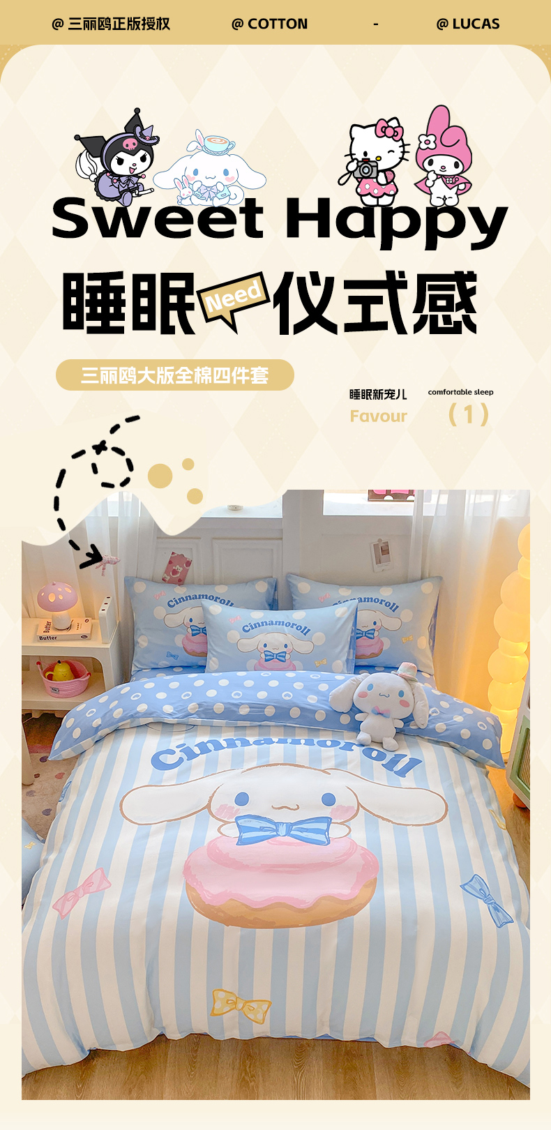 当前位置: 91家纺网 > 商品网购 > 床品套件 > 四件套 > 全棉普通四件套 > 博雅 2025春夏新款全棉纯棉三丽欧新款大板四件套 全棉大版(口袋枕)蝴蝶结条纹玉桂狗