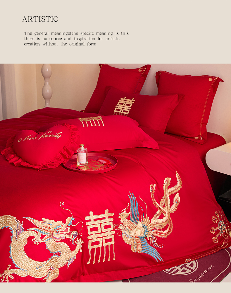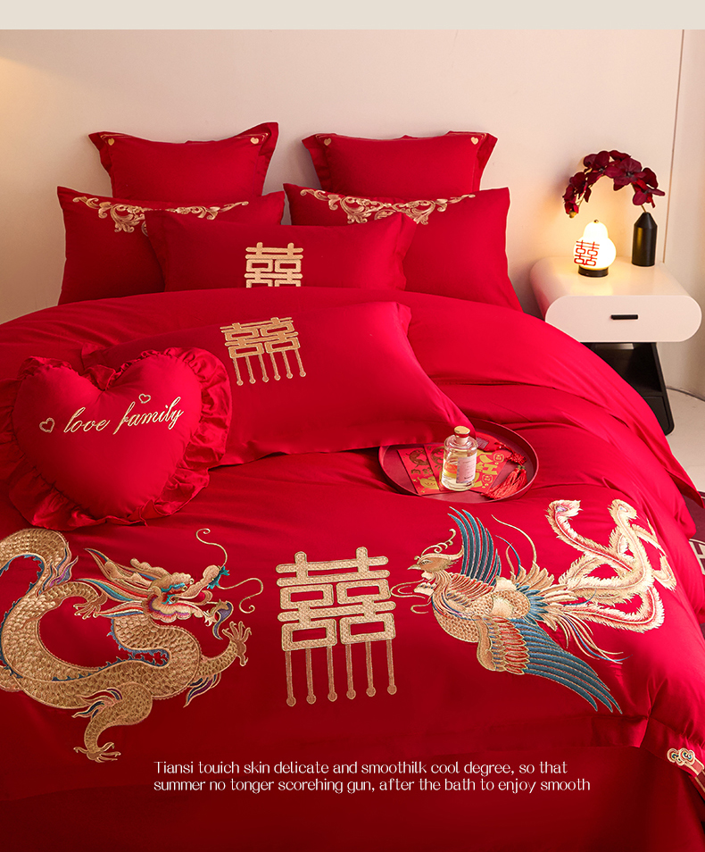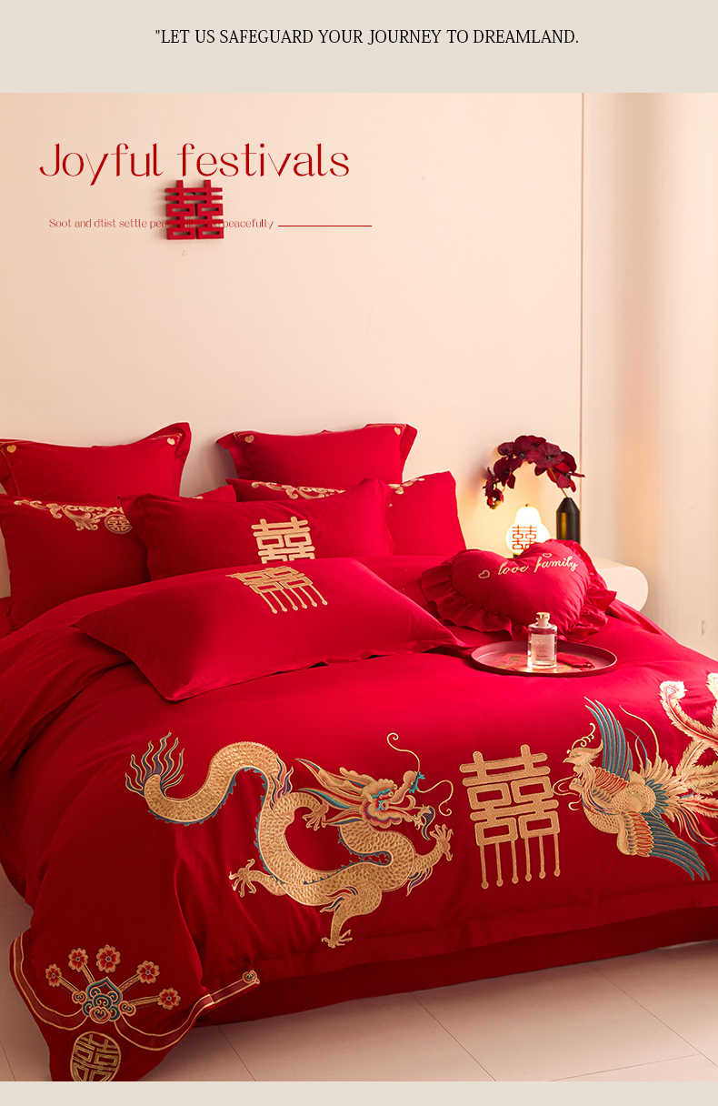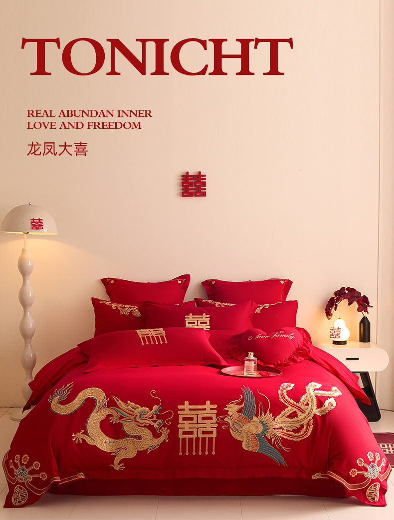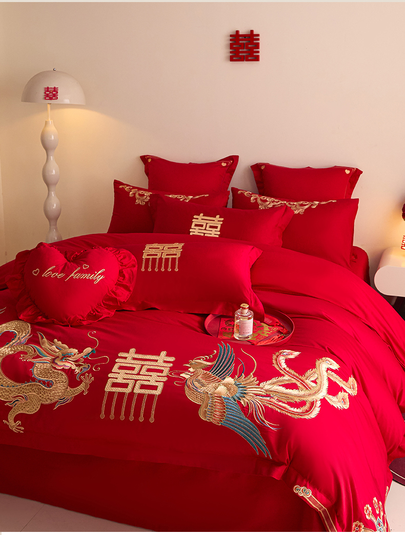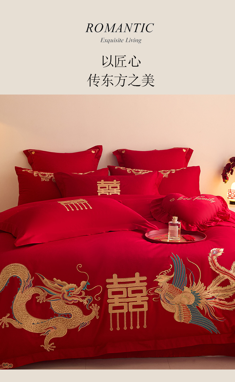 当前位置: 91家纺网 > 商品网购 > 床品套件 > 四件套 > 婚庆四件套 > 东方合美(原:皇家传奇) 2025新款长绒棉纯棉婚庆刺绣小红书系列四件套 龙凤大喜