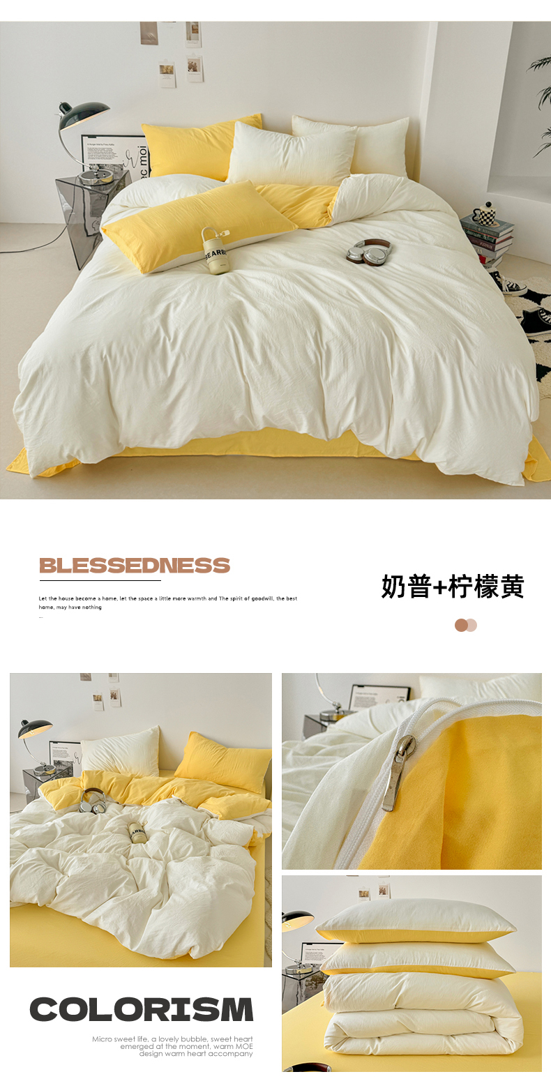 当前位置: 91家纺网 > 商品网购 > 床品套件 > 四件套 > 水洗棉四件套 > 芷凡家纺 2025新款A类加厚水洗棉云朵棉四件套 奶普+柠檬黄