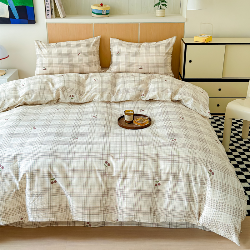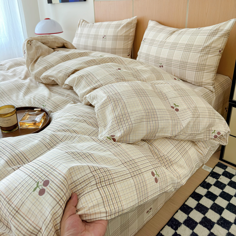 当前位置: 91家纺网 > 商品网购 > 床品套件 > 四件套 > 其它四件套 > 感遇家纺 2025新款小清新甜系四件套 格子樱桃
