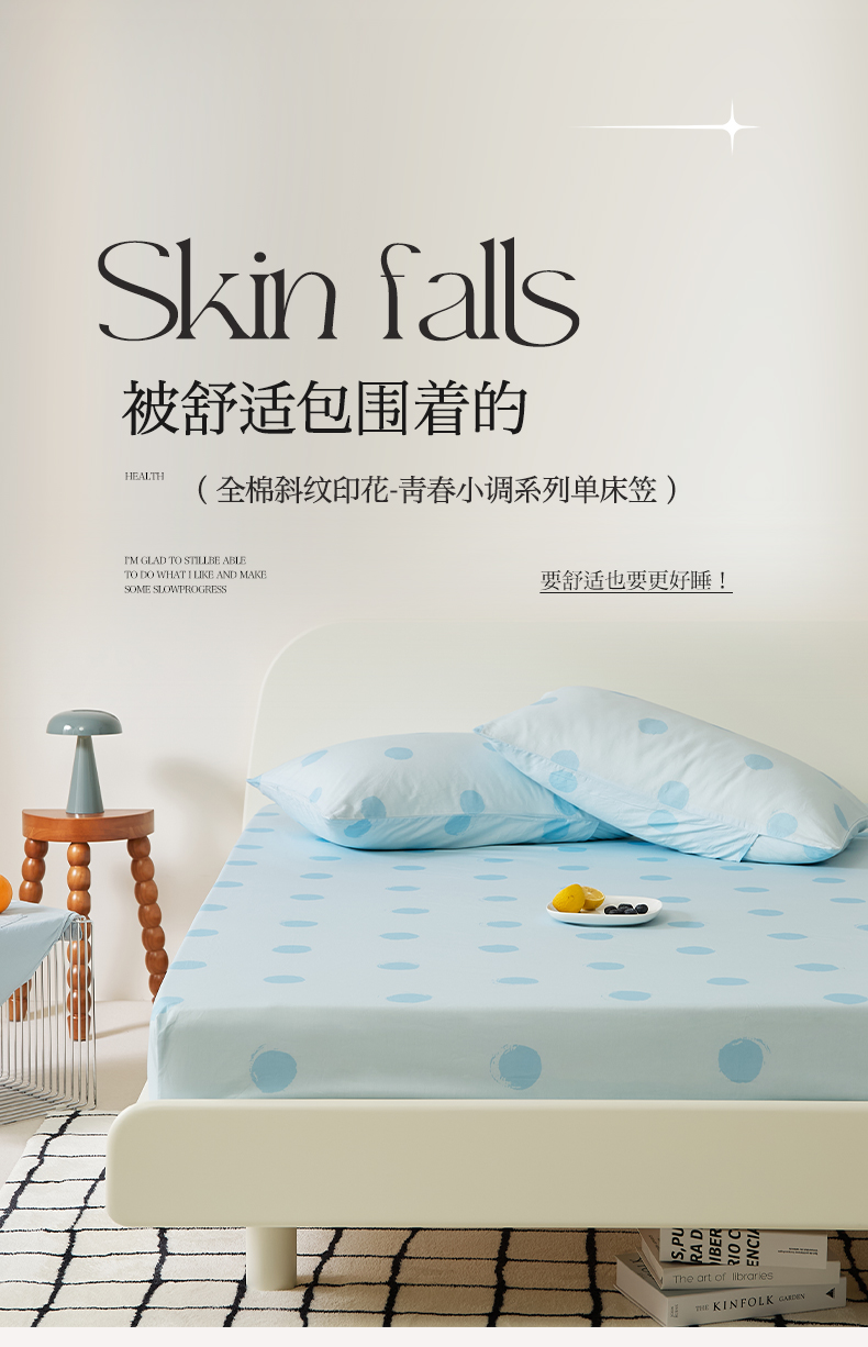 商品名称:EH家居 2025新款全棉斜纹印花-青春小调系列单床笠 晴空物语