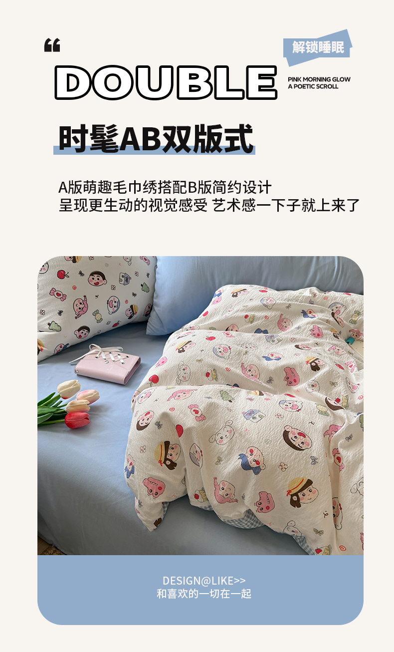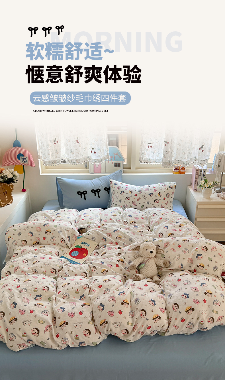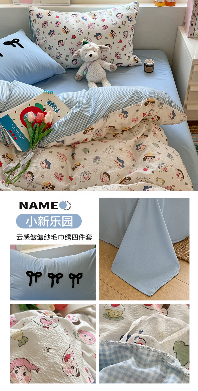 当前位置: 91家纺网 > 商品网购 > 床品套件 > 四件套 > 毛巾绣四件套 > 三元色 2025新款软糯云感毛巾绣四件套 小新乐园