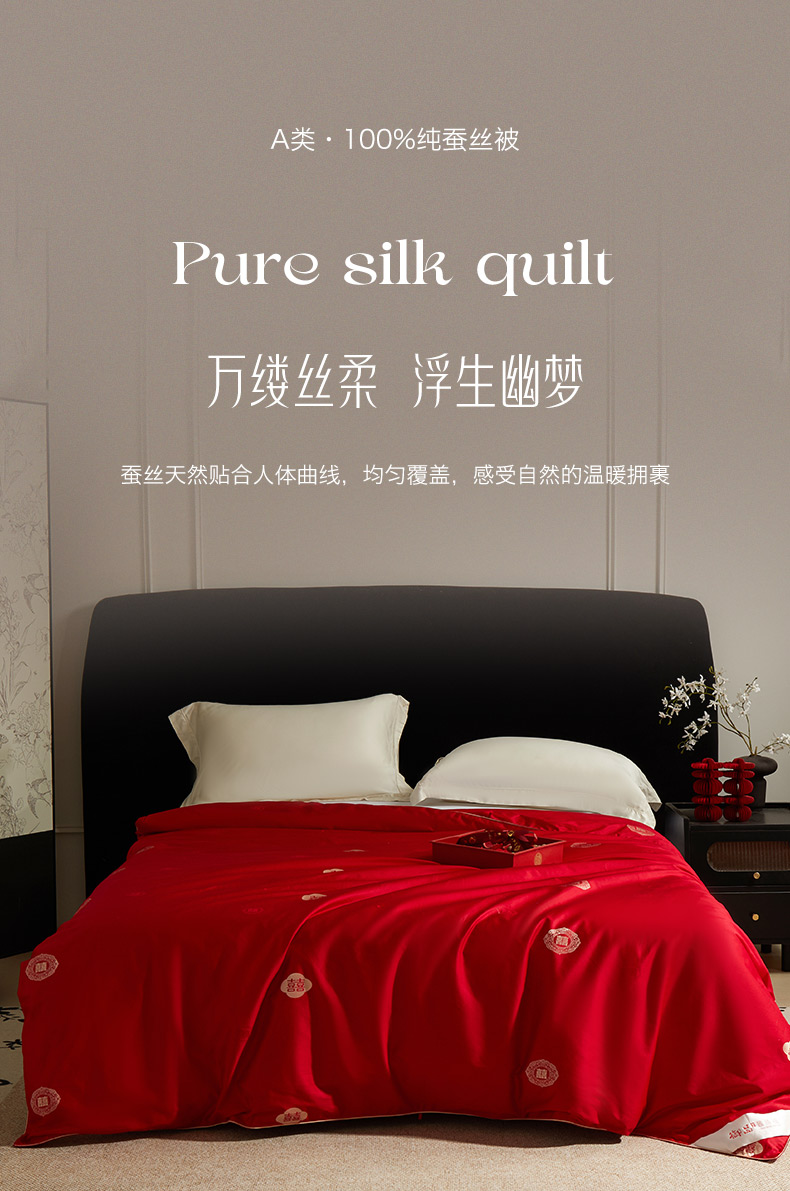 (总)群鹿蚕丝羽绒馆 2025新款高支全棉蚕丝被喜事连连系列【柞蚕丝填充可质检】