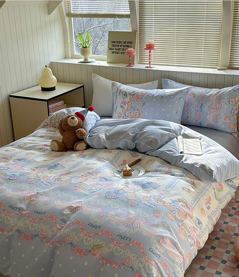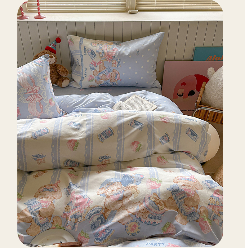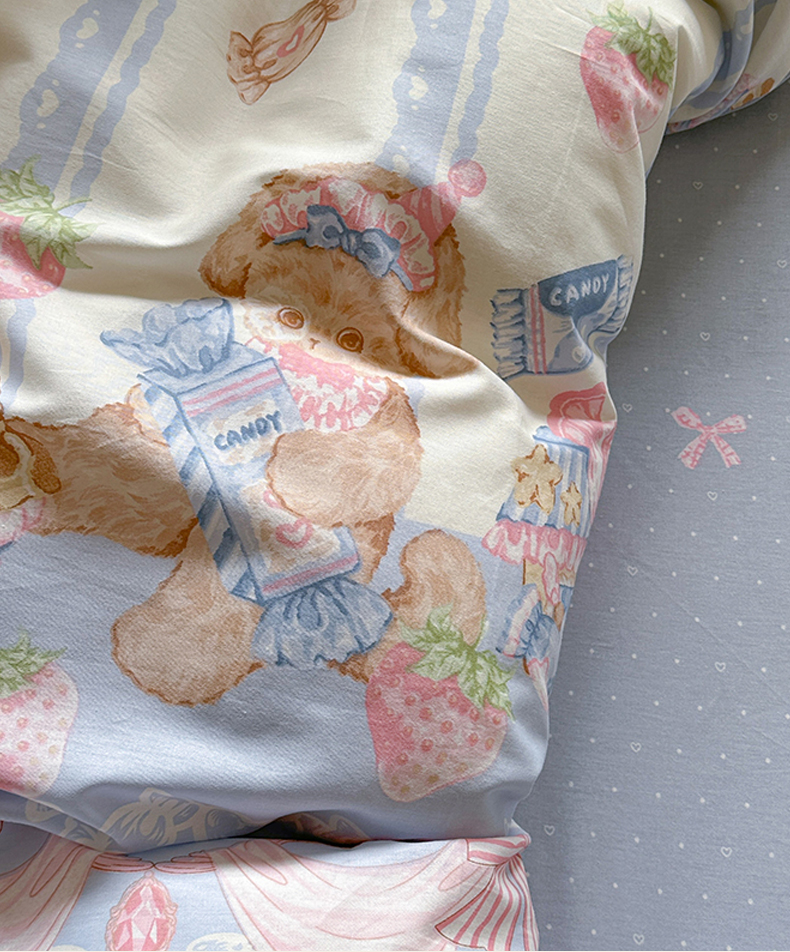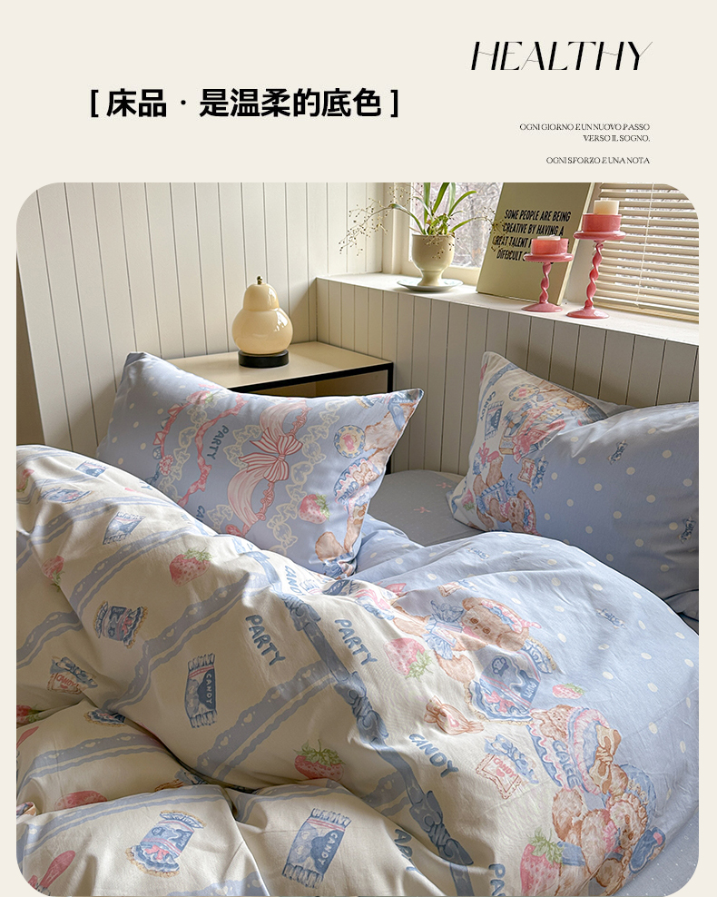 当前位置: 91家纺网 > 商品网购 > 床品套件 > 四件套 > 麦伦家居 2025新款40s斜纹全棉纯棉跑量款卡通小清新四件套 蓝色甜心