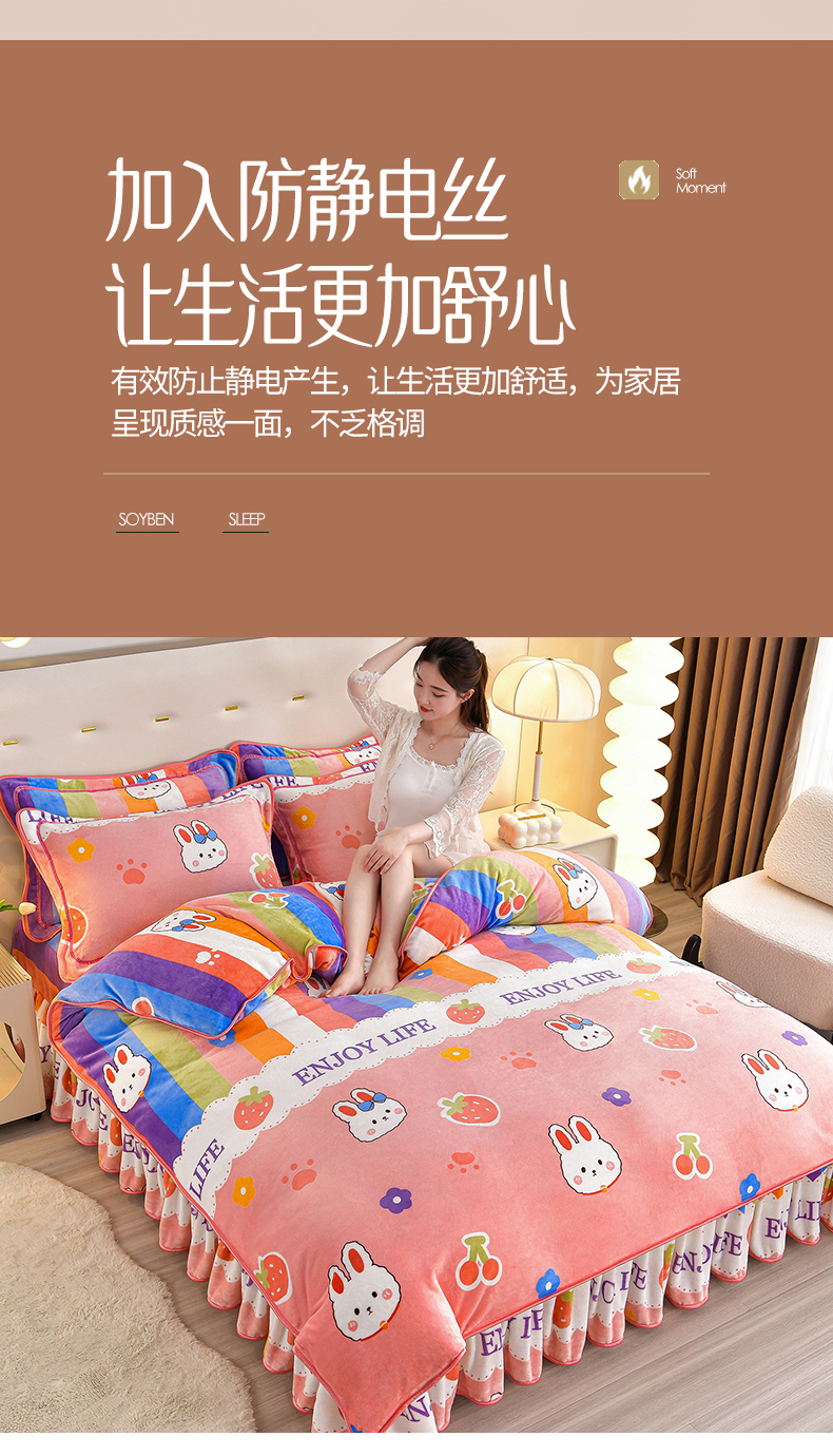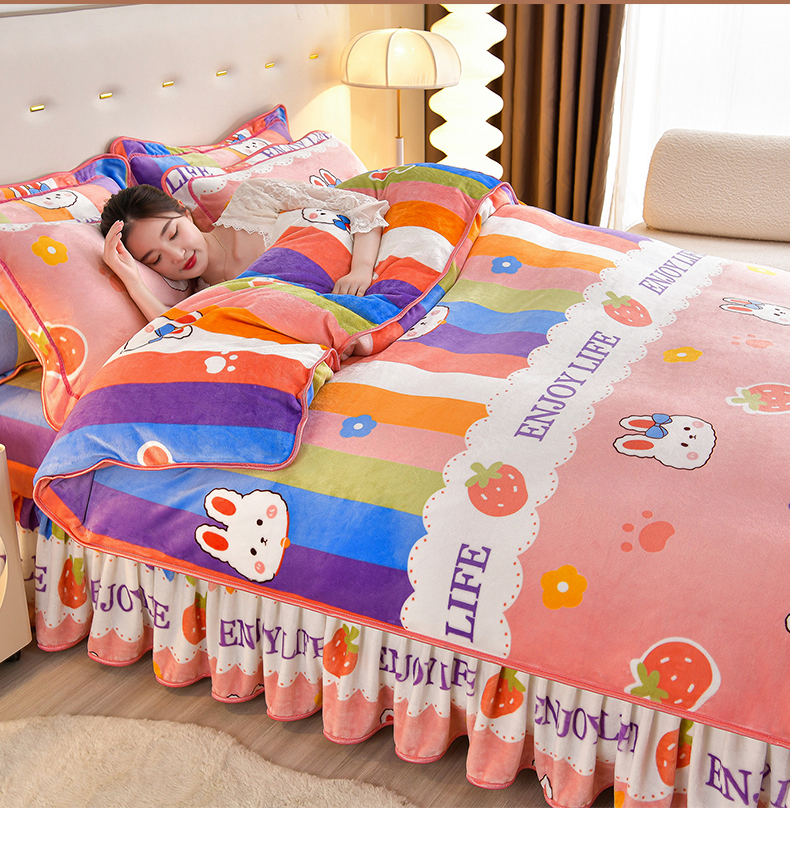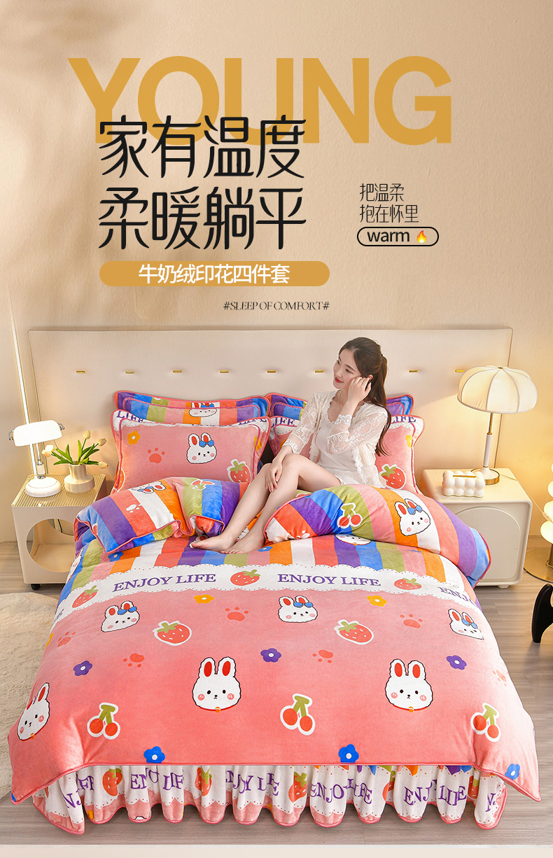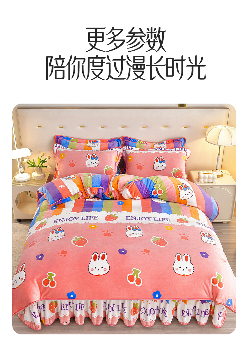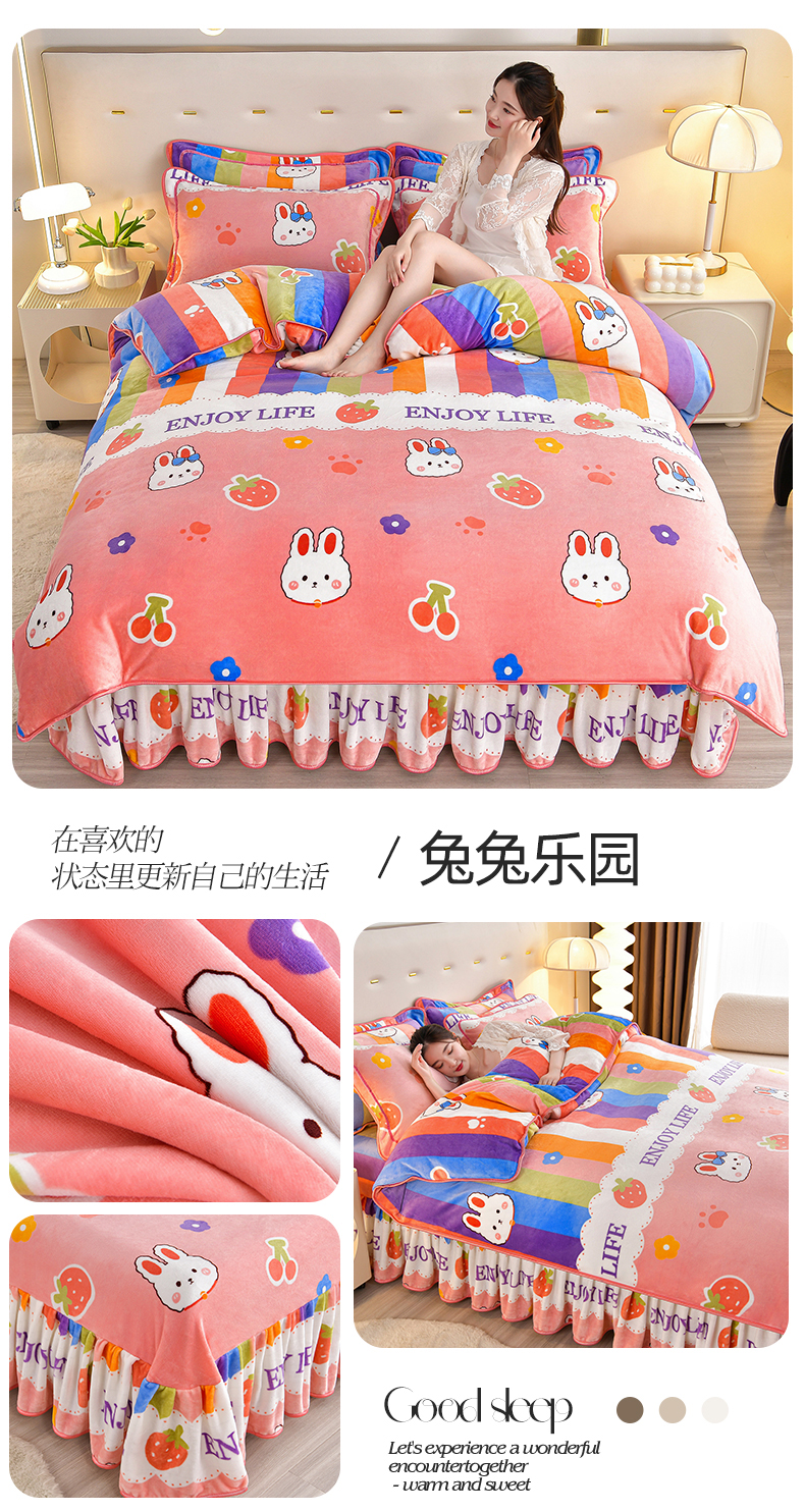 缘莉娜家纺 2025高克重8斤牛奶绒四件套金貂绒法莱绒加厚保暖直播电商爆款 兔兔乐园,兔兔乐园