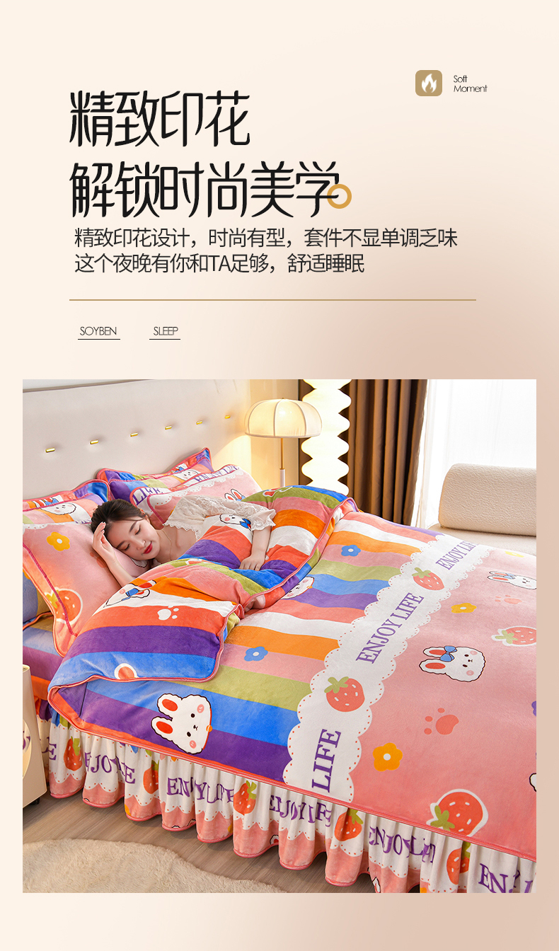 缘莉娜家纺 2025高克重8斤牛奶绒四件套金貂绒法莱绒加厚保暖直播电商爆款 甜蜜蜜,甜蜜蜜