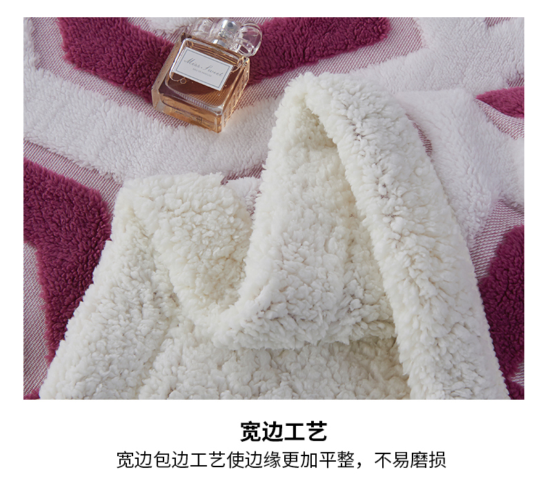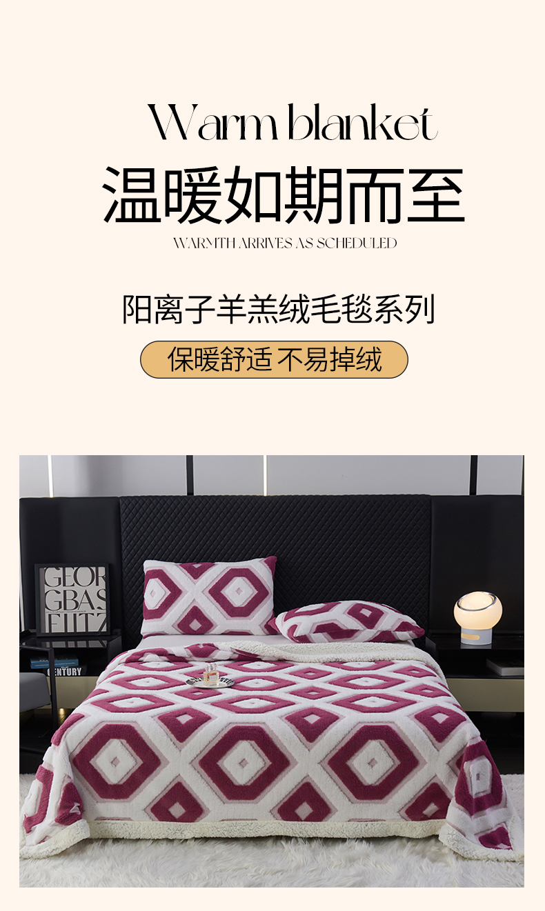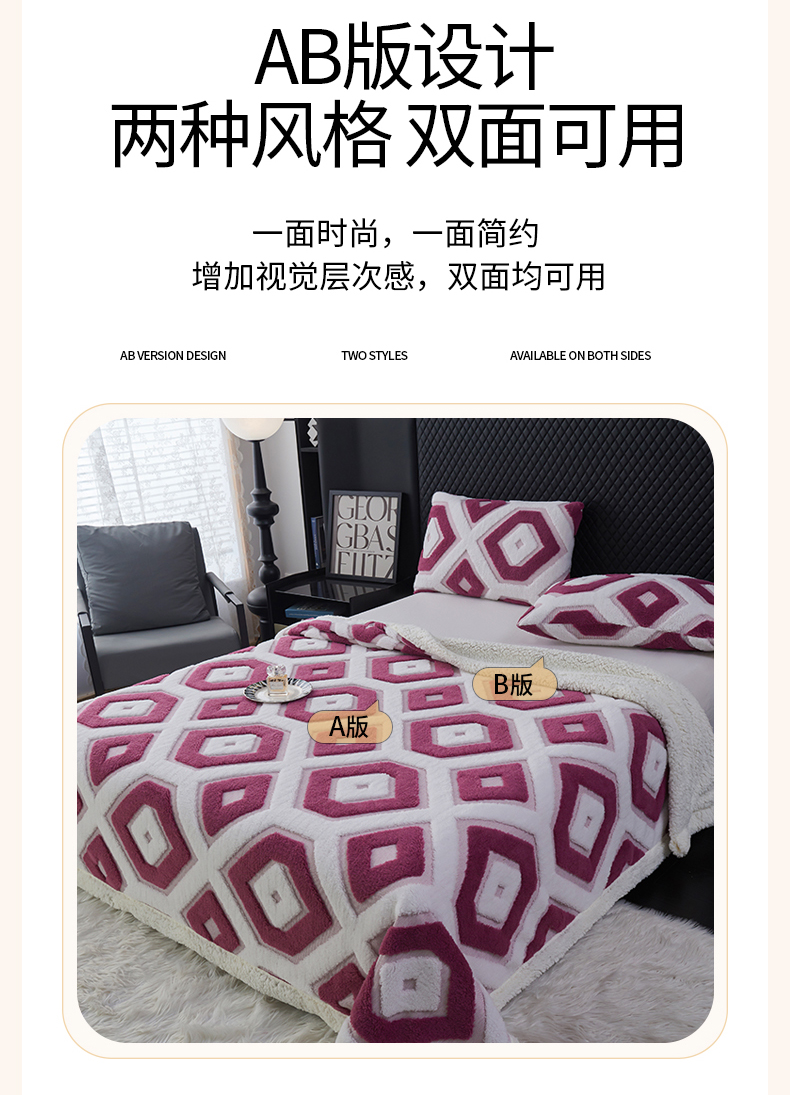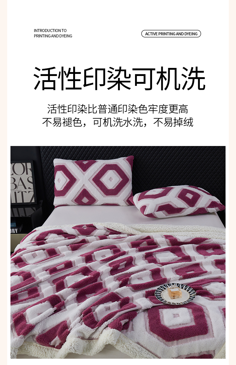 商品名称:枋梢家纺 2025新款几何空间阳离子提花镂空塔芙绒羊羔绒保暖午睡双层毛毯办公室盖毯 几何-玫红
