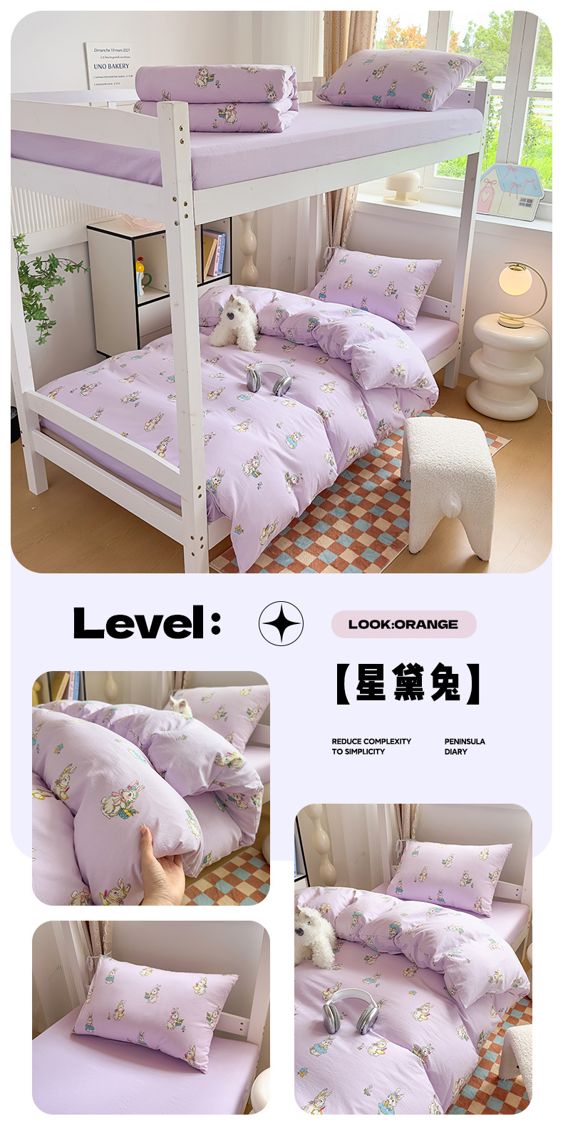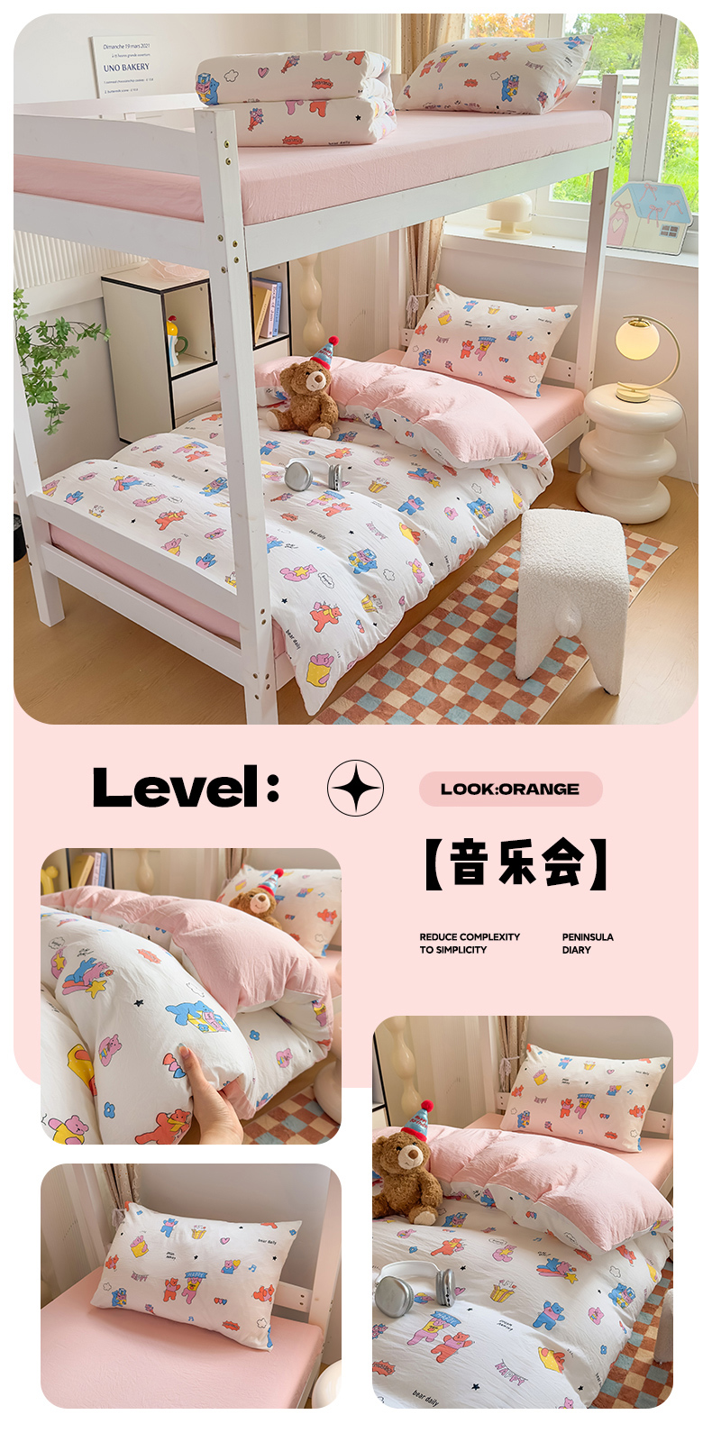商品名称:港岛妹妹 2025新款云朵水洗工艺学生床宿舍上下铺三件套 欣然花开