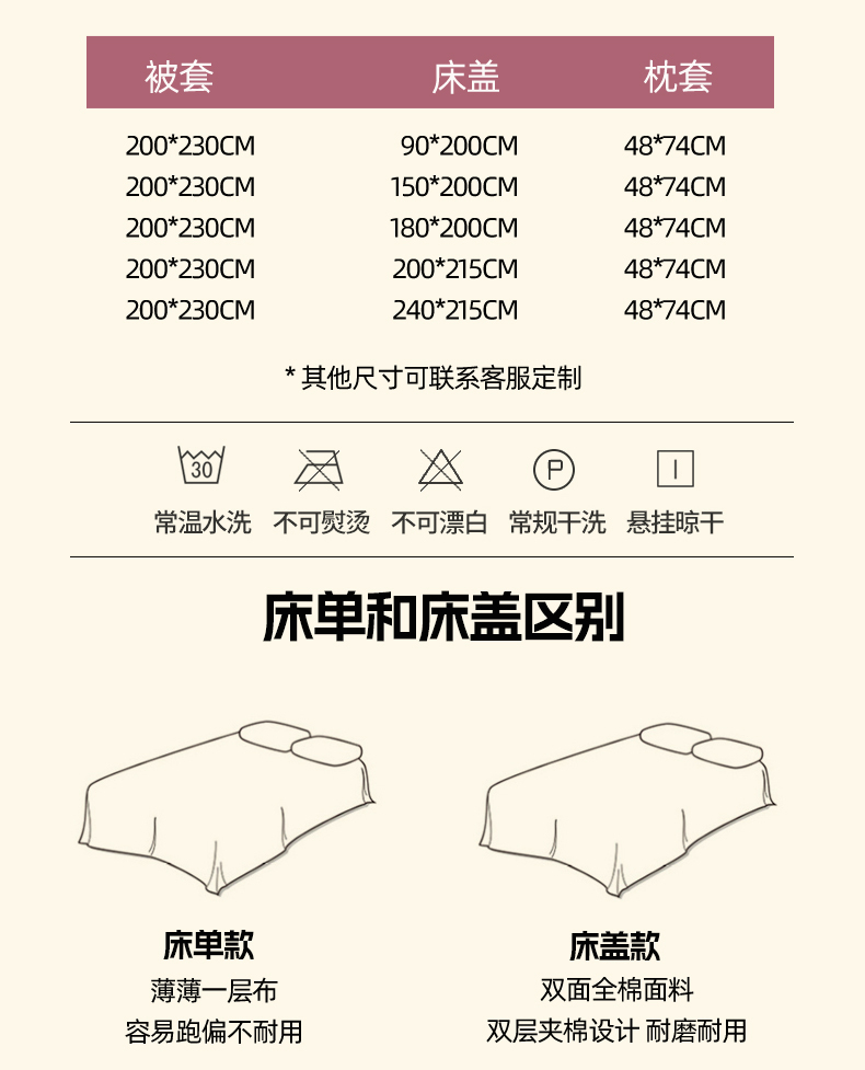单被套200x230cm | ¥65.00 |