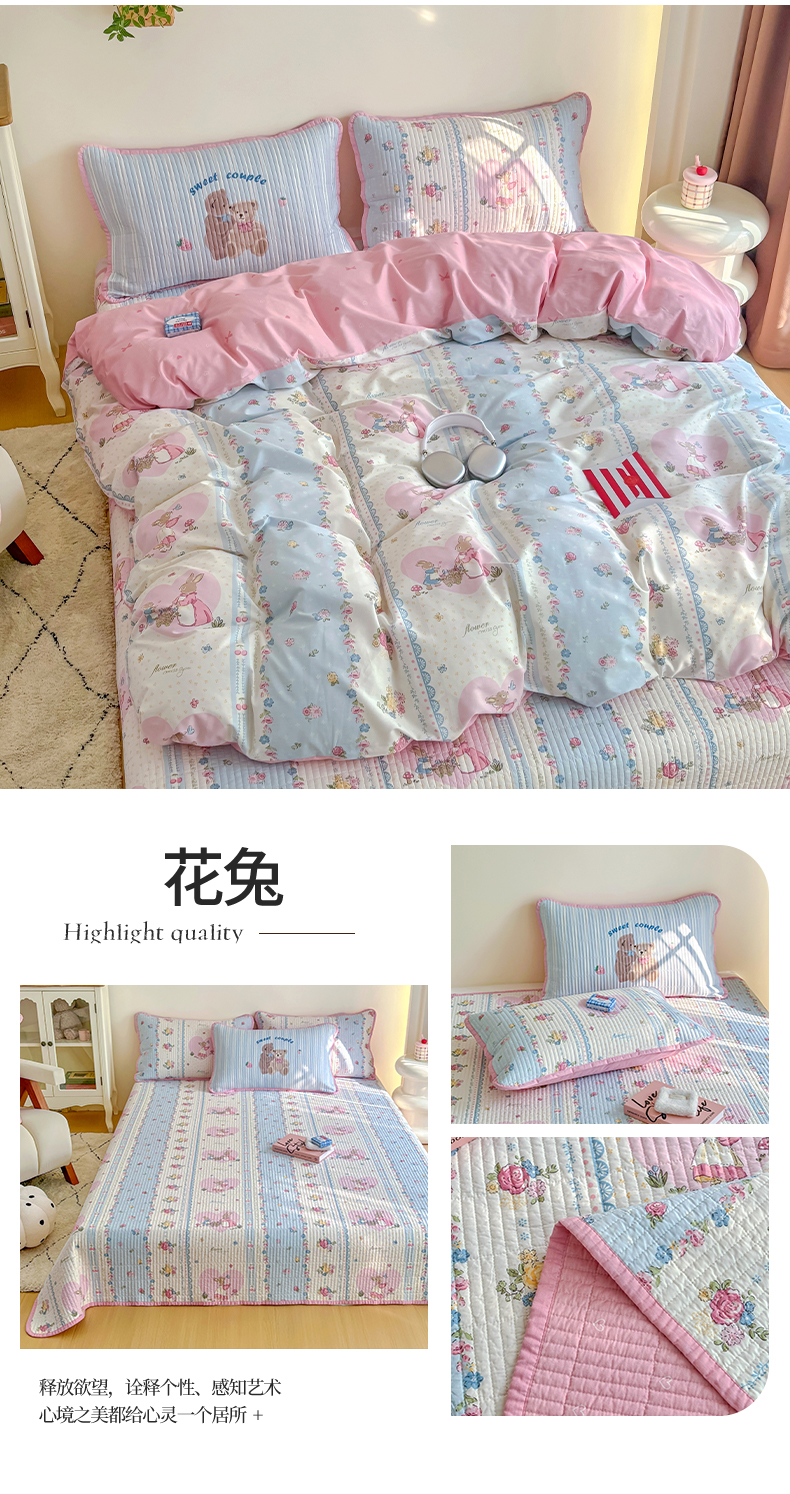 (总)橙子家居 2025新款棉加绒床盖床盖单件床盖单品床盖三件套夹层水洗棉花跑量款现货,组合图仅供展示不可下单,花边兔,花间色,见春山,萝莉兔,洛丽丝,千代兰,若兮花,新新一家,幸运熊,熊猫卡皮,云棠