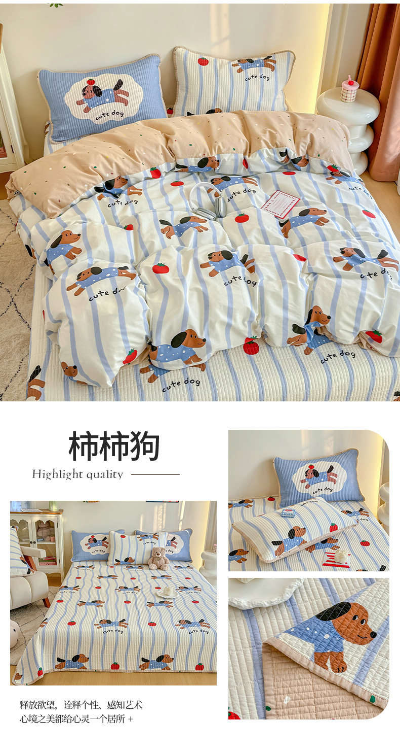 (总)橙子家居 2025新款双面全棉纯棉砂洗夹棉床盖三件套,粉木马,腊肠狗,梦露花园,苹果趣事,甜心南瓜,小熊贝蒂,樱桃派,组合图仅供展示,格子小熊,赫本,莫娇-黄,沁花-绿,薇恋时光,雾里花-粉,雅清