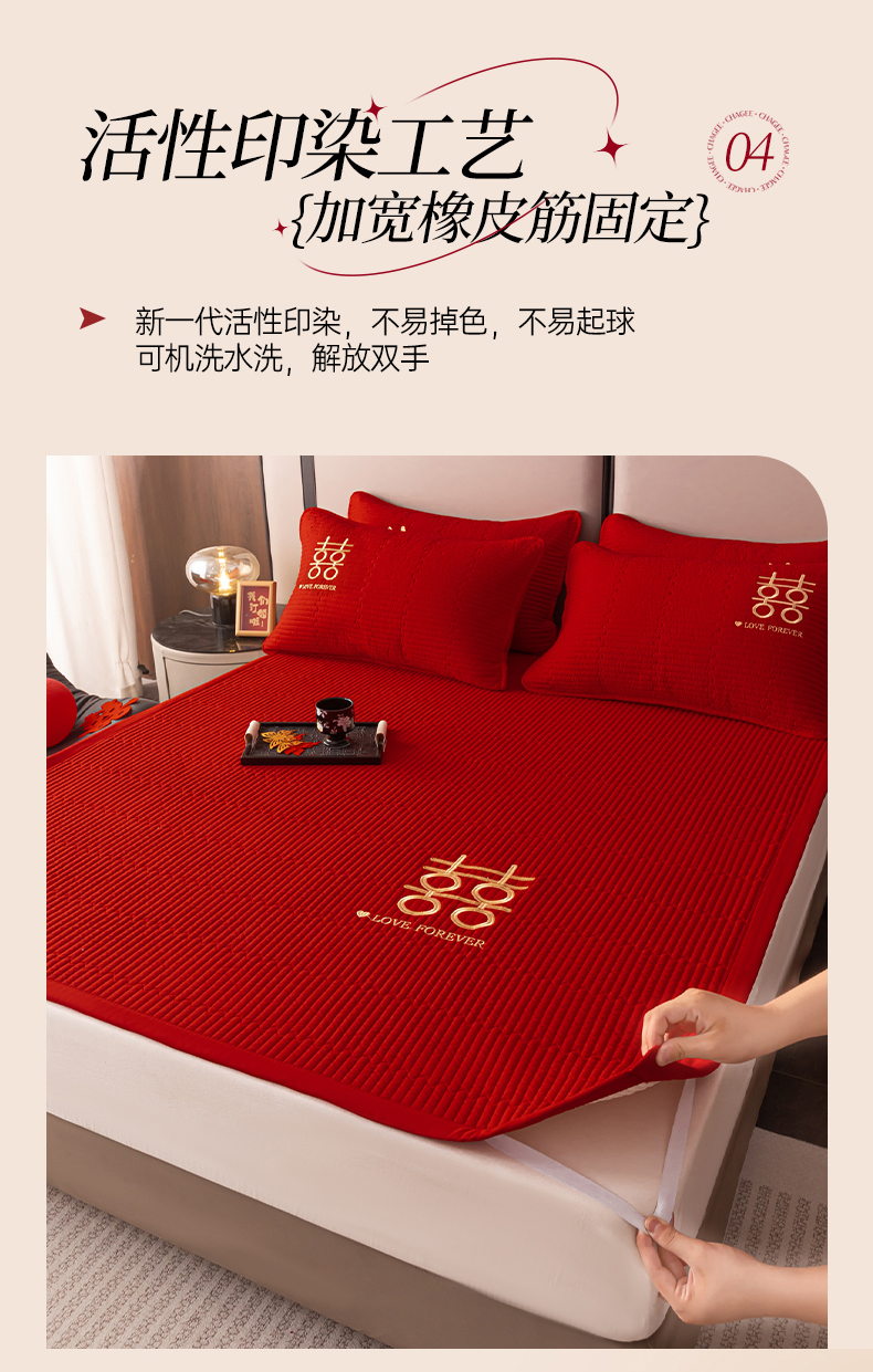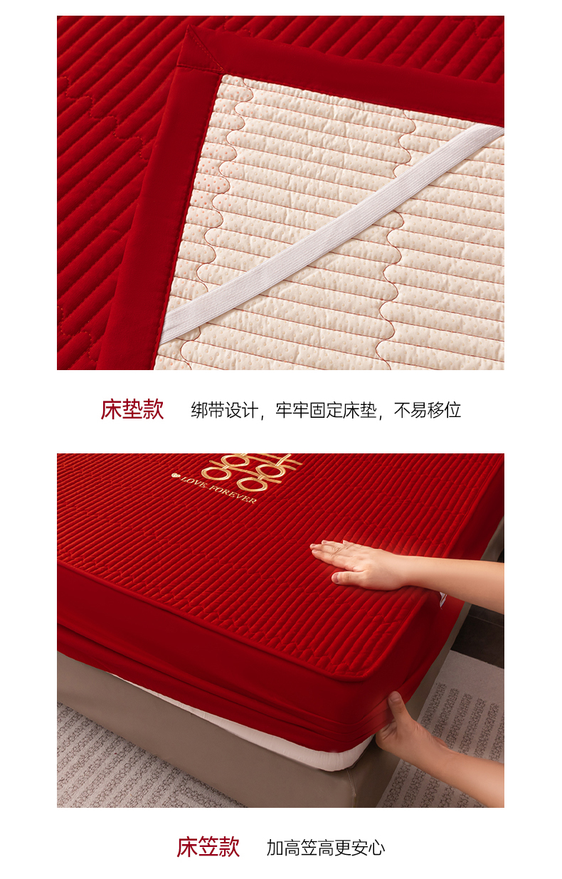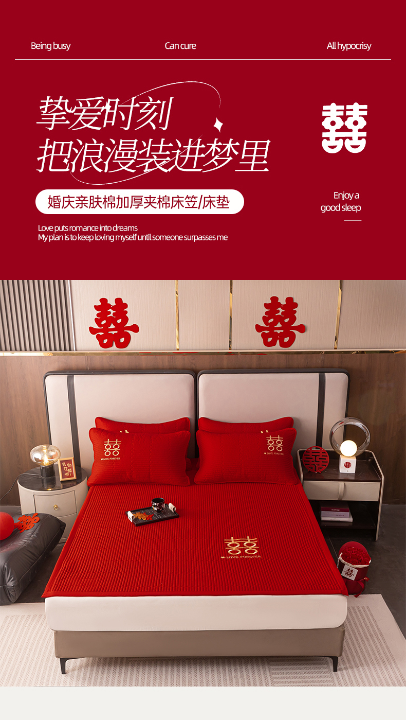 商品名称:卓缦家纺 2025新款婚庆加厚软床垫软床笠三件套婚庆床单床盖 欢喜-床笠