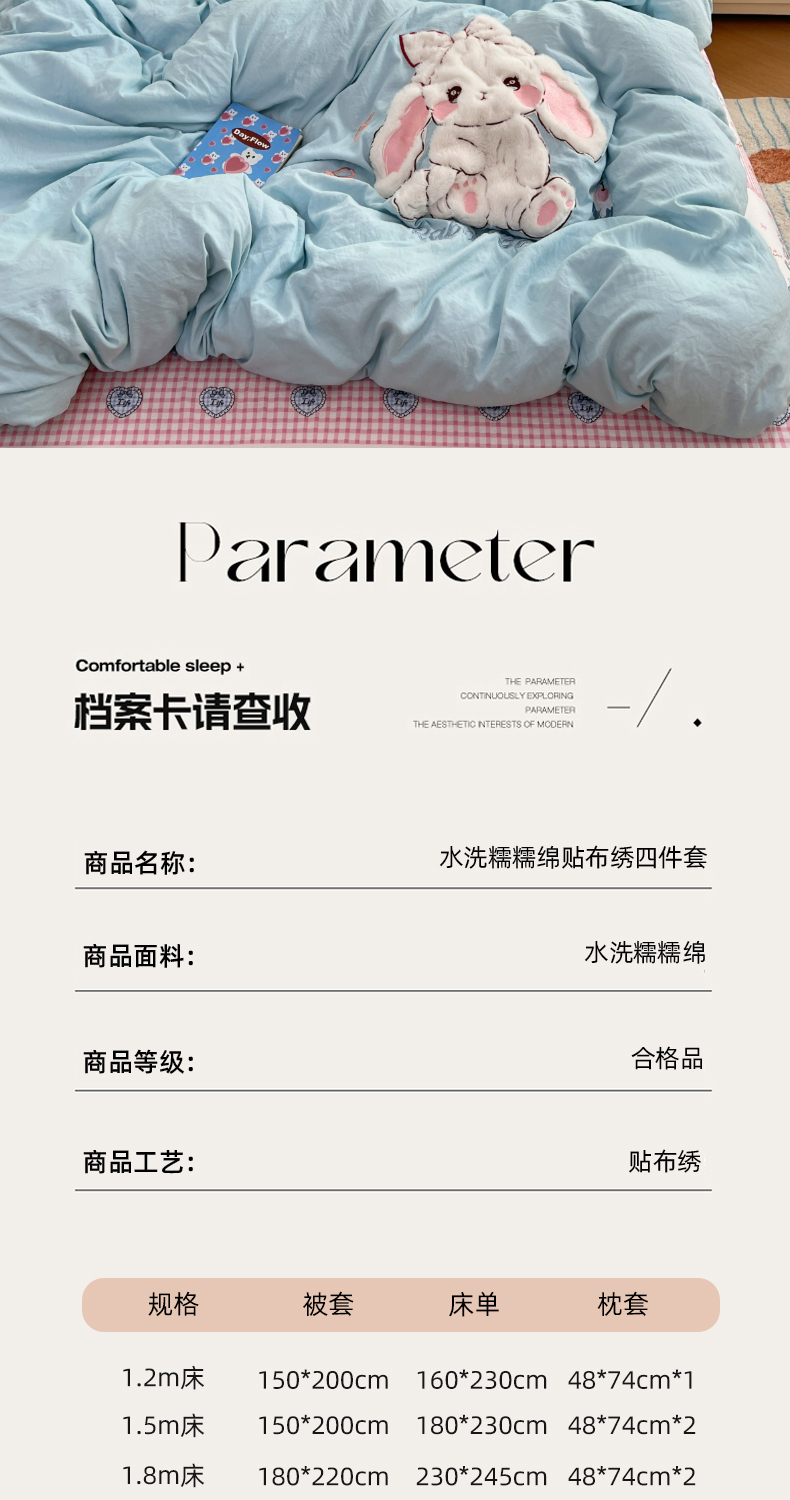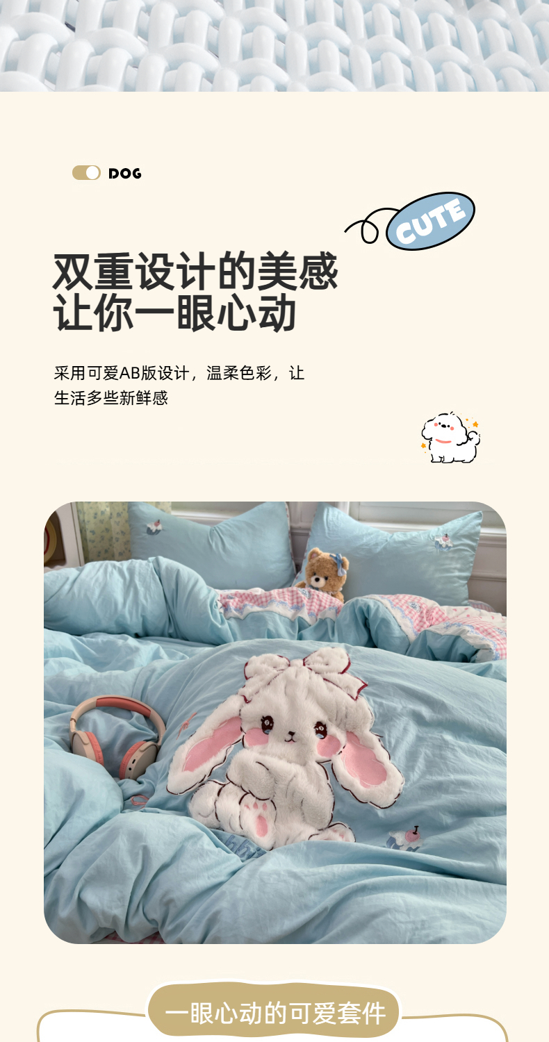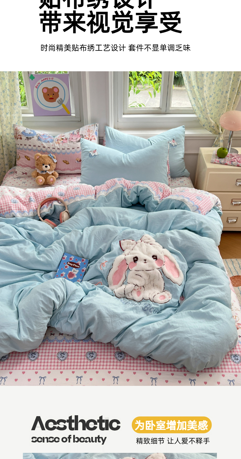 当前位置: 91家纺网 > 商品网购 > 床品套件 > 四件套 > 水洗棉四件套 > 优尚佳生活馆 2025新款水洗棉印花贴布绣四件套【提供买家秀】 朱迪兔