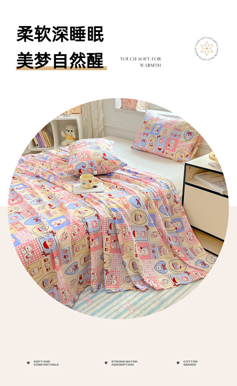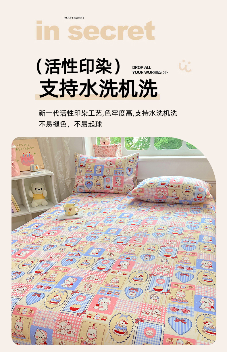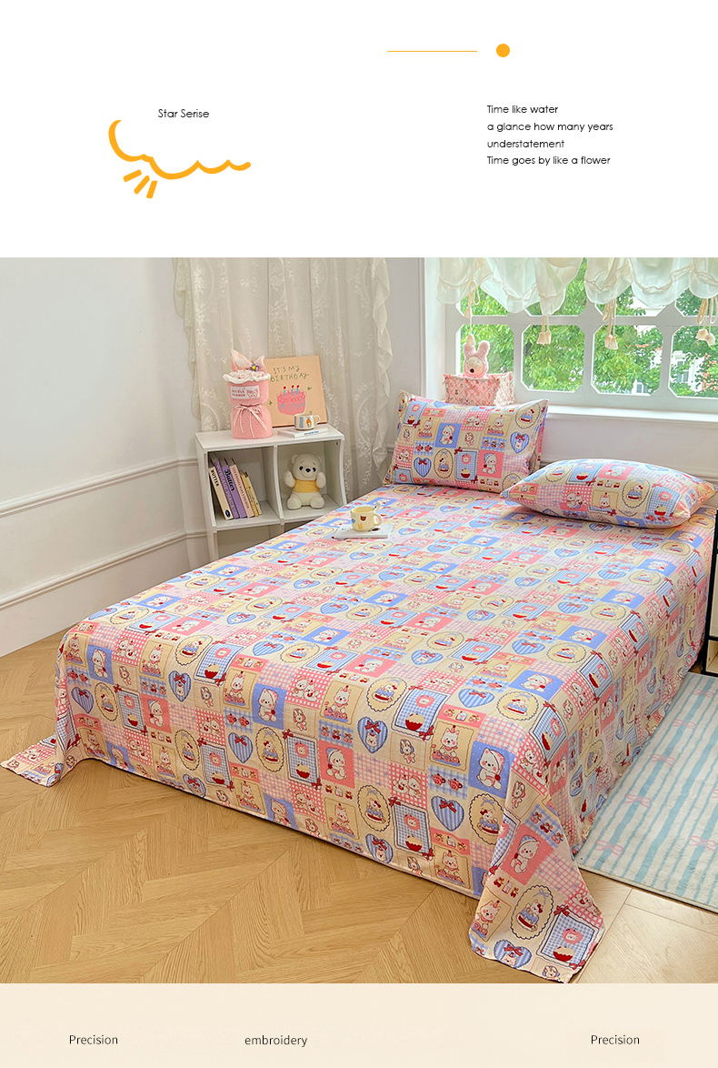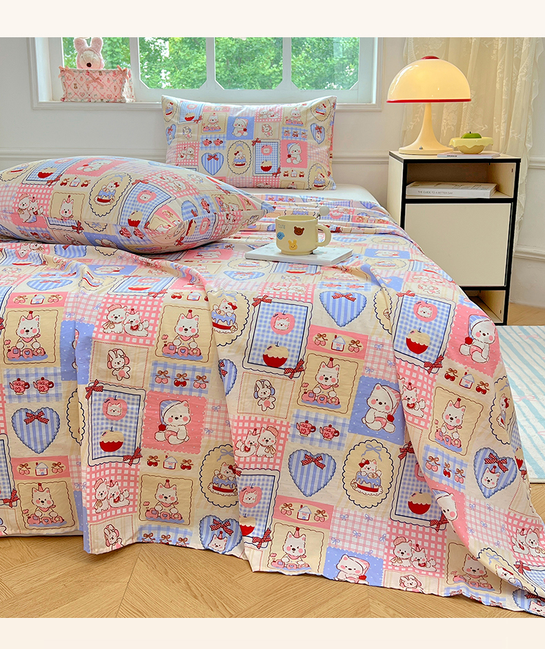 优尚佳生活馆 2025新款亲肤水洗棉印花床单单品床单单件单床单 床单款-甜宠派对