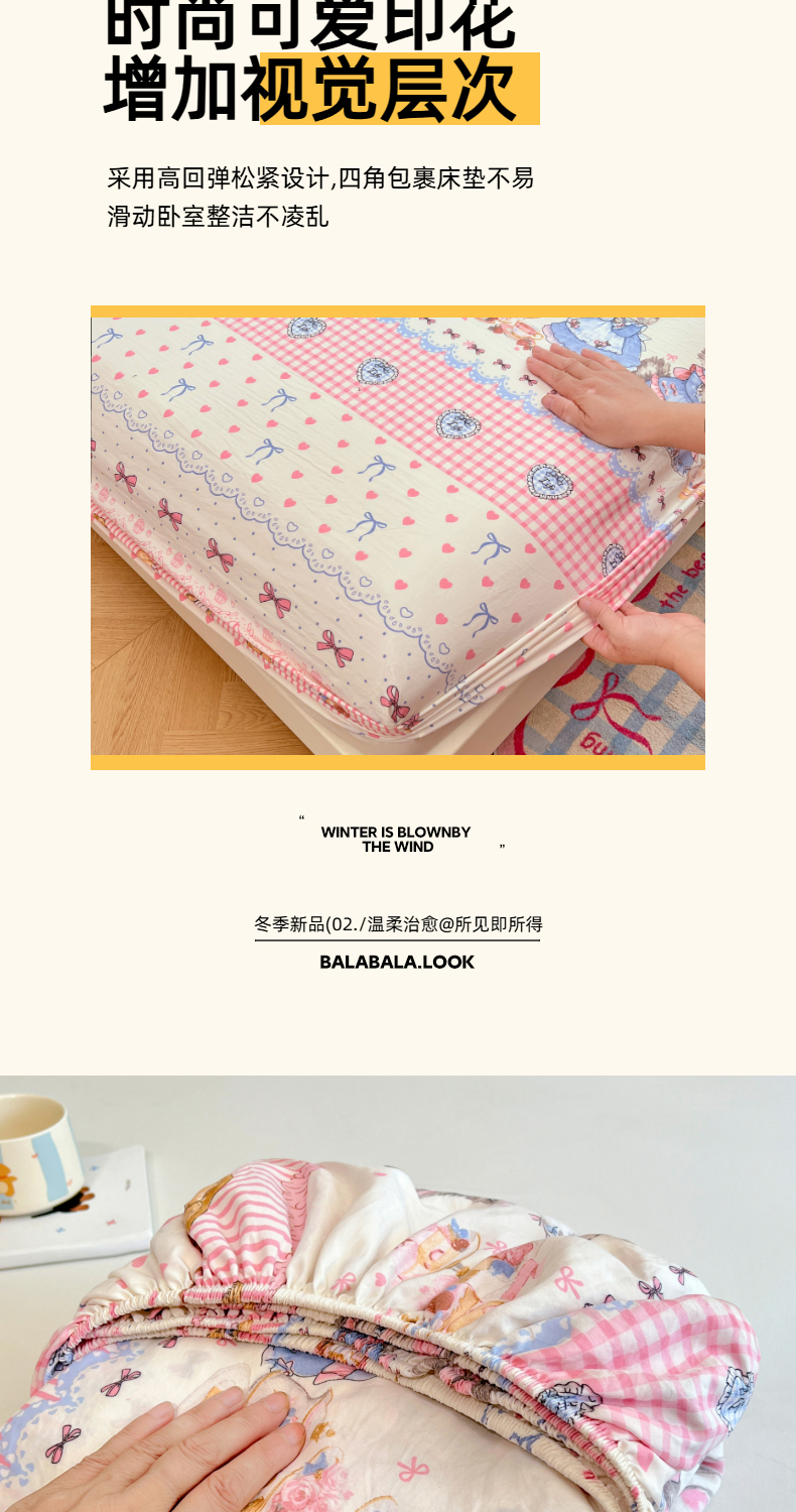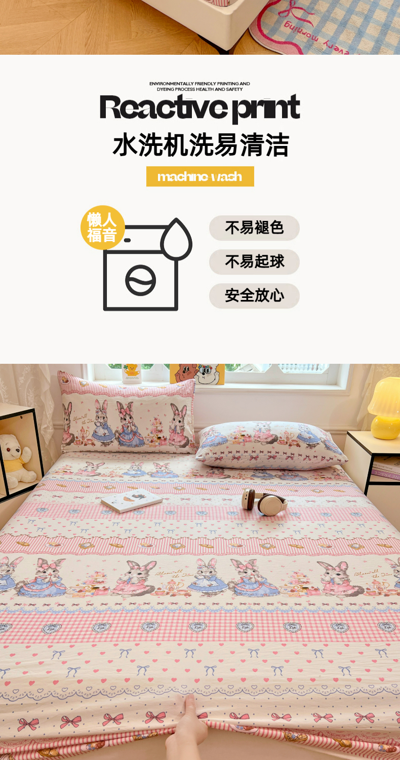 • 91家纺网 家纺一手货源 找家纺 优尚佳生活馆 2025新款亲肤水洗棉印花床笠单品床笠单件单床笠 组合图仅供展示