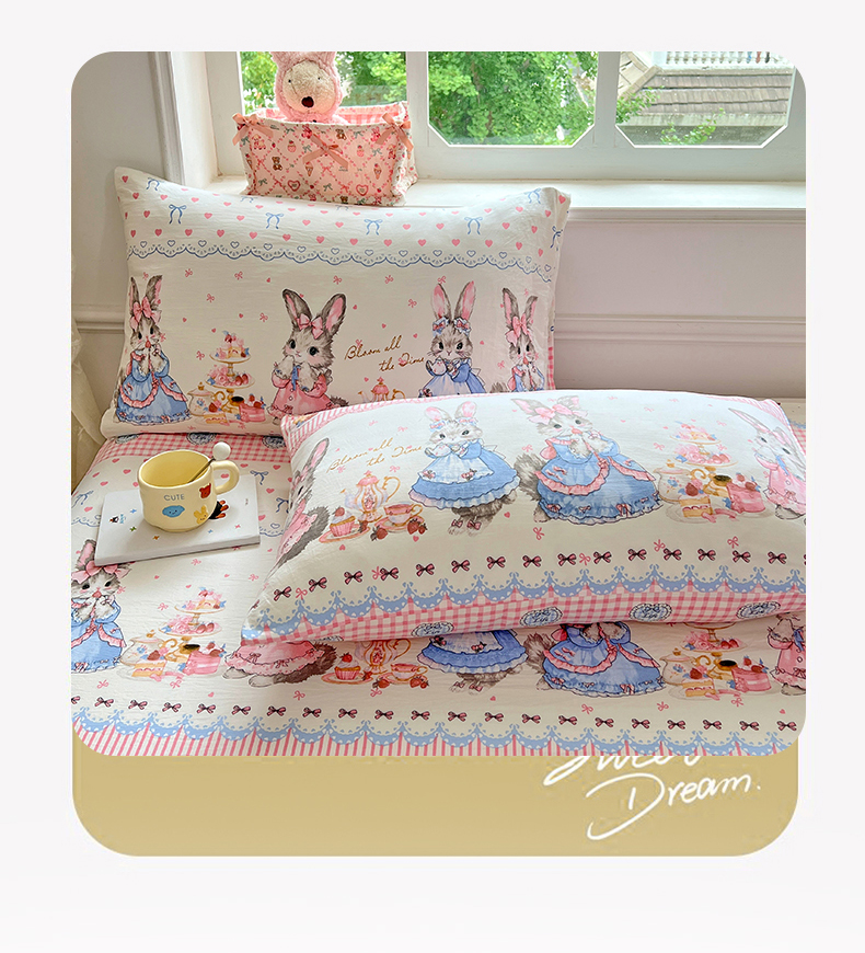 (总)优佳优品 2025新款水洗棉印花贴布绣四件套【提供买家秀】,安吉拉,粉糯小狗窝,帕丁顿熊,朱迪兔